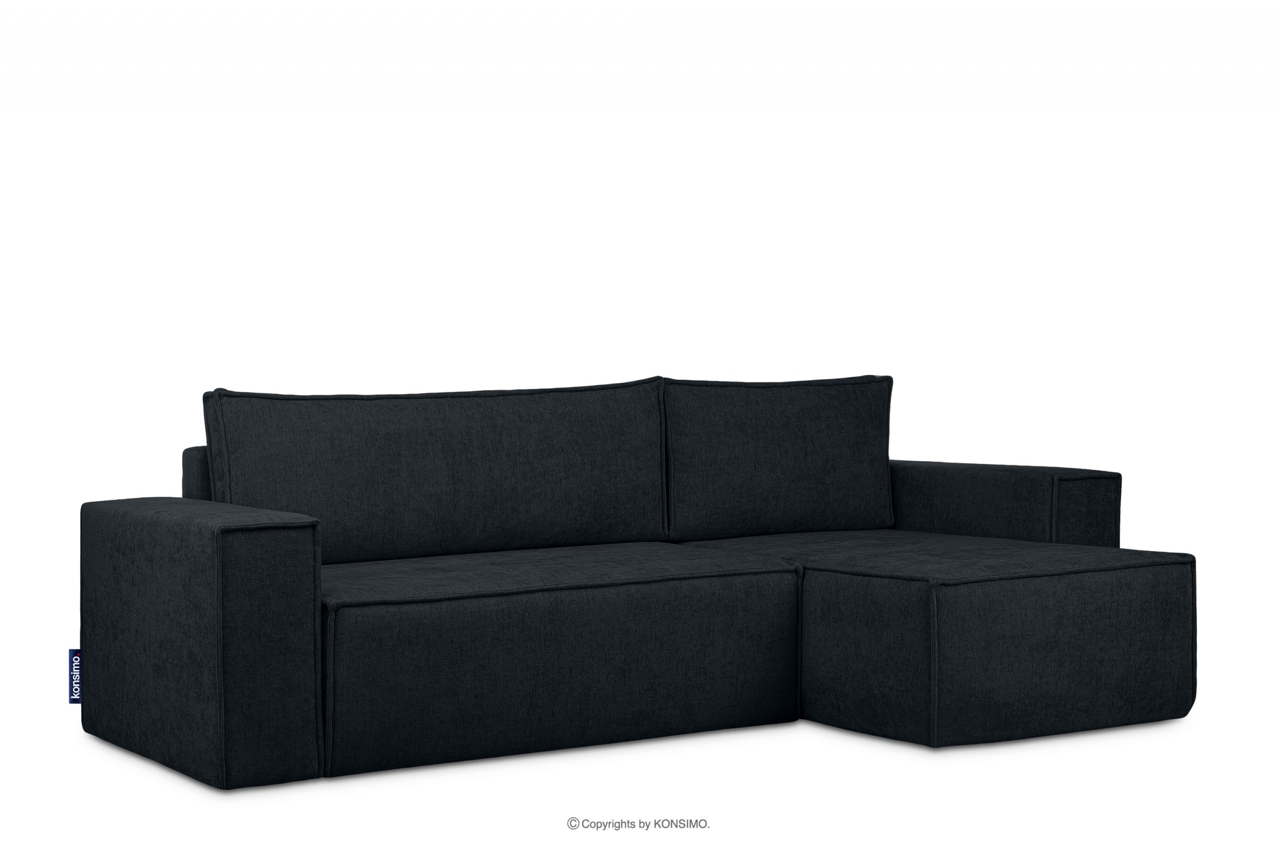 Rohová pohovka v tkanej látke s funkciou spania tmavomodrá ľavá/pravá je kus nábytku v modernistickom štýle. Má široké bočnice typu HAWAI, vďaka čomu je vhodnejšia do väčších miestností. Je to univerzálna rohová pohovka, čo znamená, že má navyše tú vlastnosť, že si môžete vybrať stranu, na ktorej chcete pohovku mať. Stranu si môžete časom zmeniť aj sami.