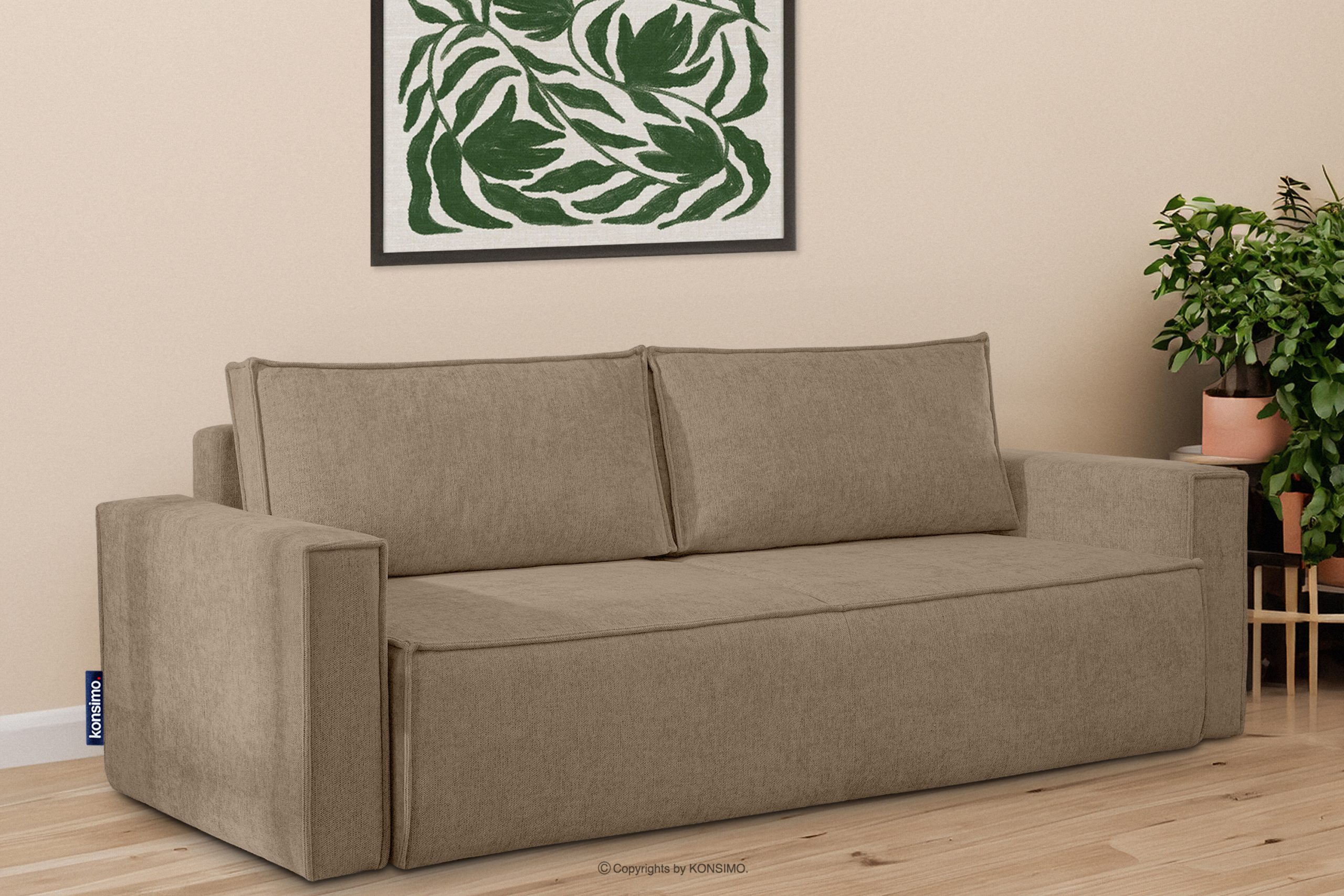 Pohovka 3 s funkciou spania z kockovanej tkaniny svetlohnedej farby NAPI II - farba svetlohnedá