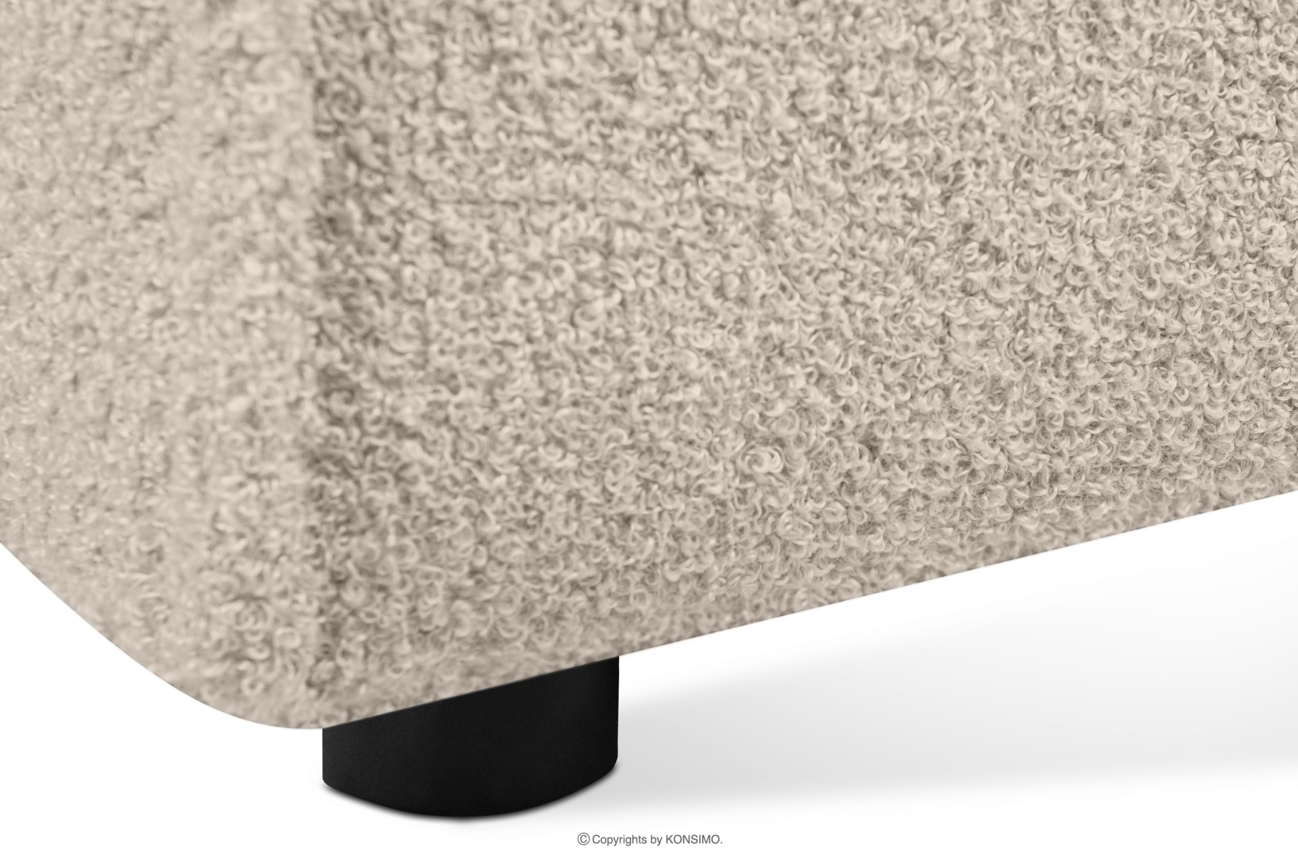 Rohová pohovka boucle s funkciou spania slonová kosť ľavá/pravá je kus nábytku v modernistickom štýle. Má široké bočné strany typu HAWAI, vďaka čomu je vhodnejšia do väčších miestností. Je to univerzálna rohová pohovka, ktorá ponúka ďalšiu možnosť výberu strany, ktorá bude slúžiť ako plocha na spanie. Po čase si môžete stranu aj sami vymeniť.