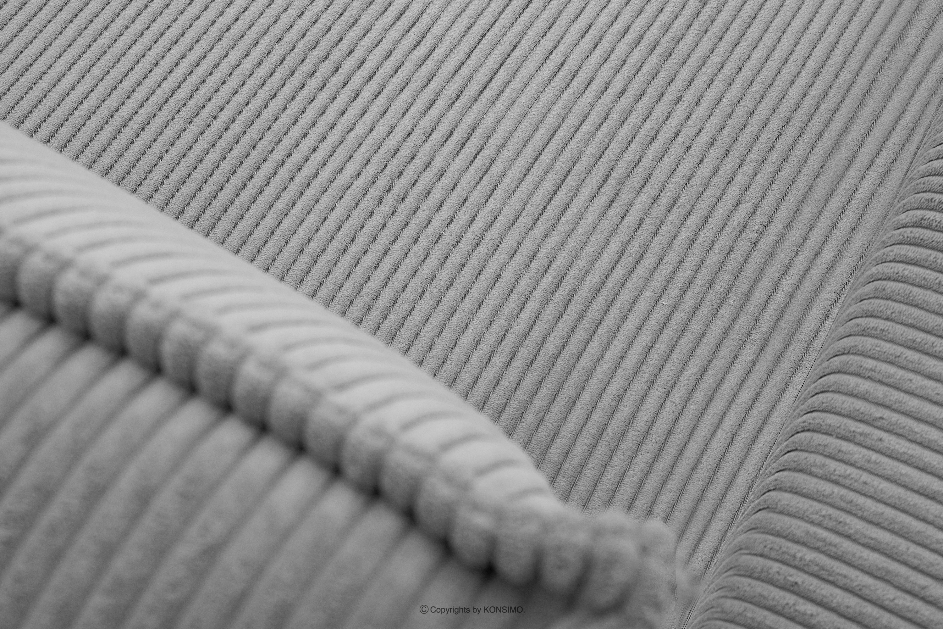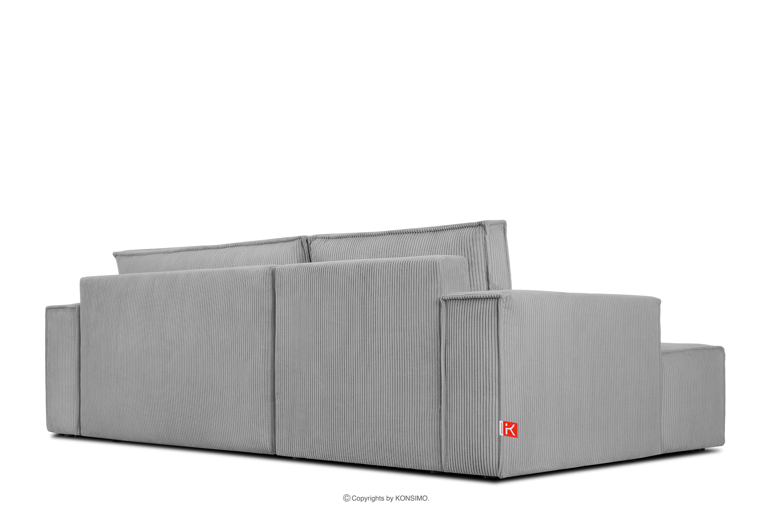 Svetlosivá manšestrová ľavá rozkladacia pohovka do obývacej izby priťahuje pozornosť, čím sa odlišuje od ostatného nábytku. Celé čalúnenie tohto výnimočného kusu nábytku je vyrobené z jemnej manšestrovej látky, ktorá zaručuje nielen príjemný komfort na dotyk, ale aj dlhotrvajúcu dokonalú estetiku. Vďaka tejto látke bude váš roh NAPI vždy vyzerať dokonale bez ohľadu na čas alebo podmienky používania.