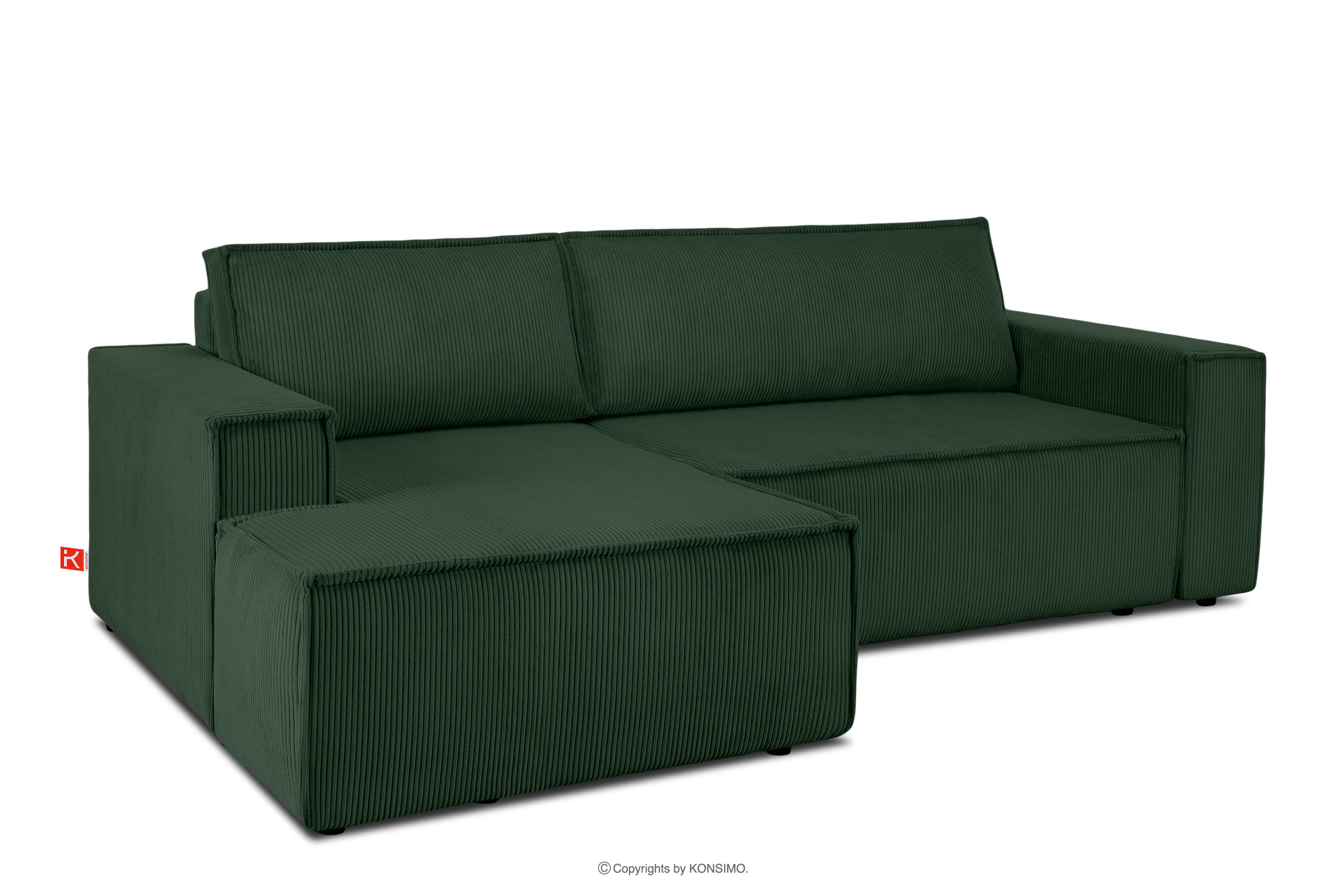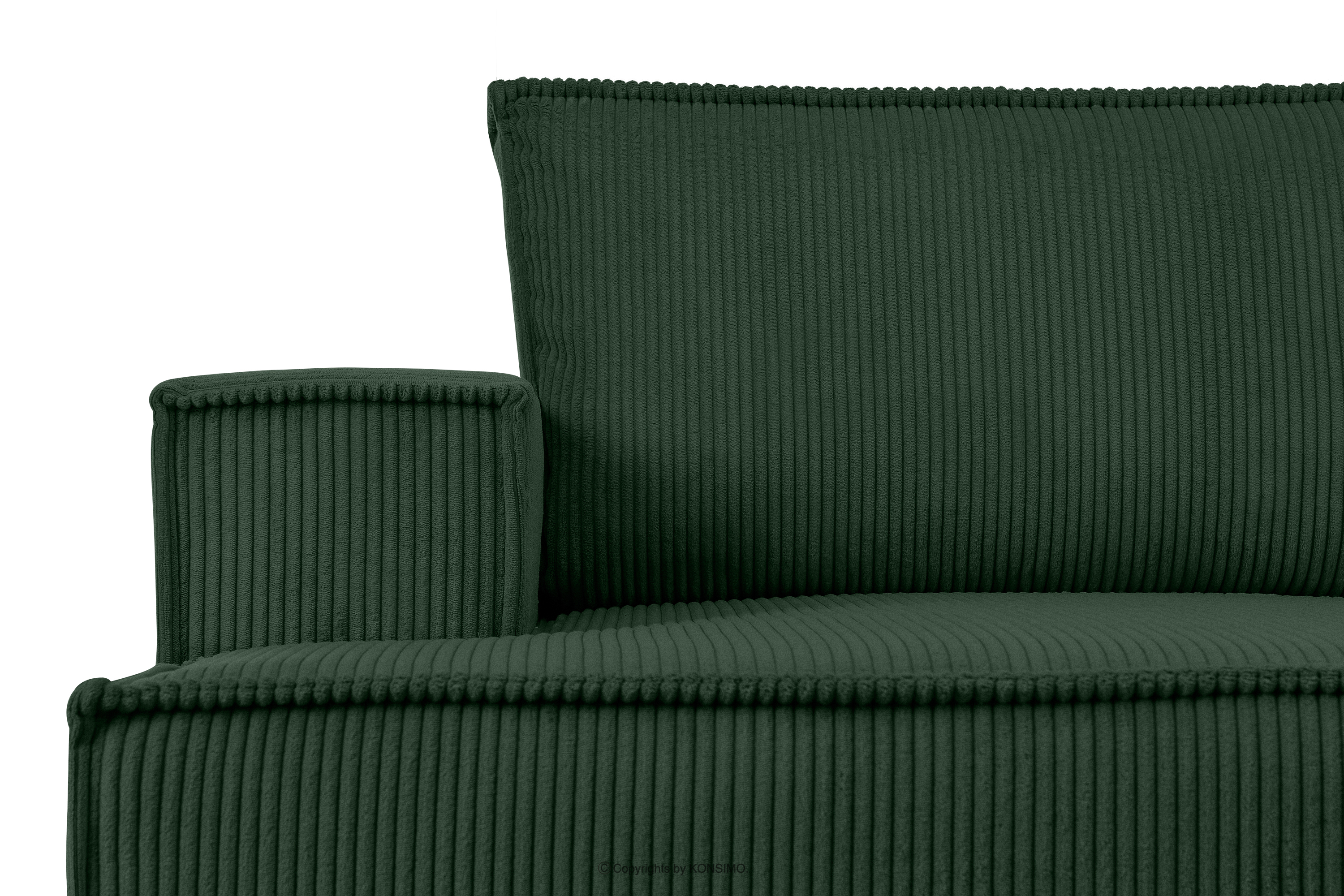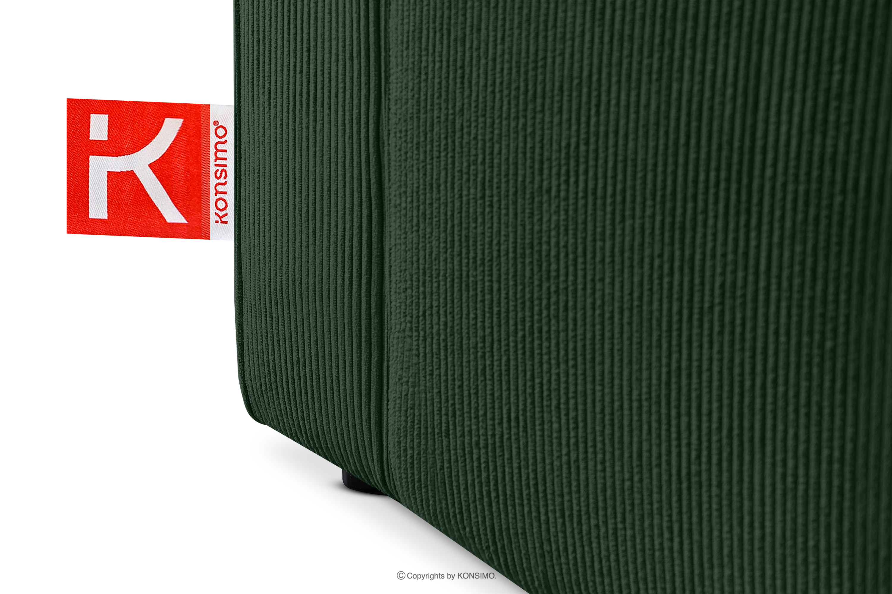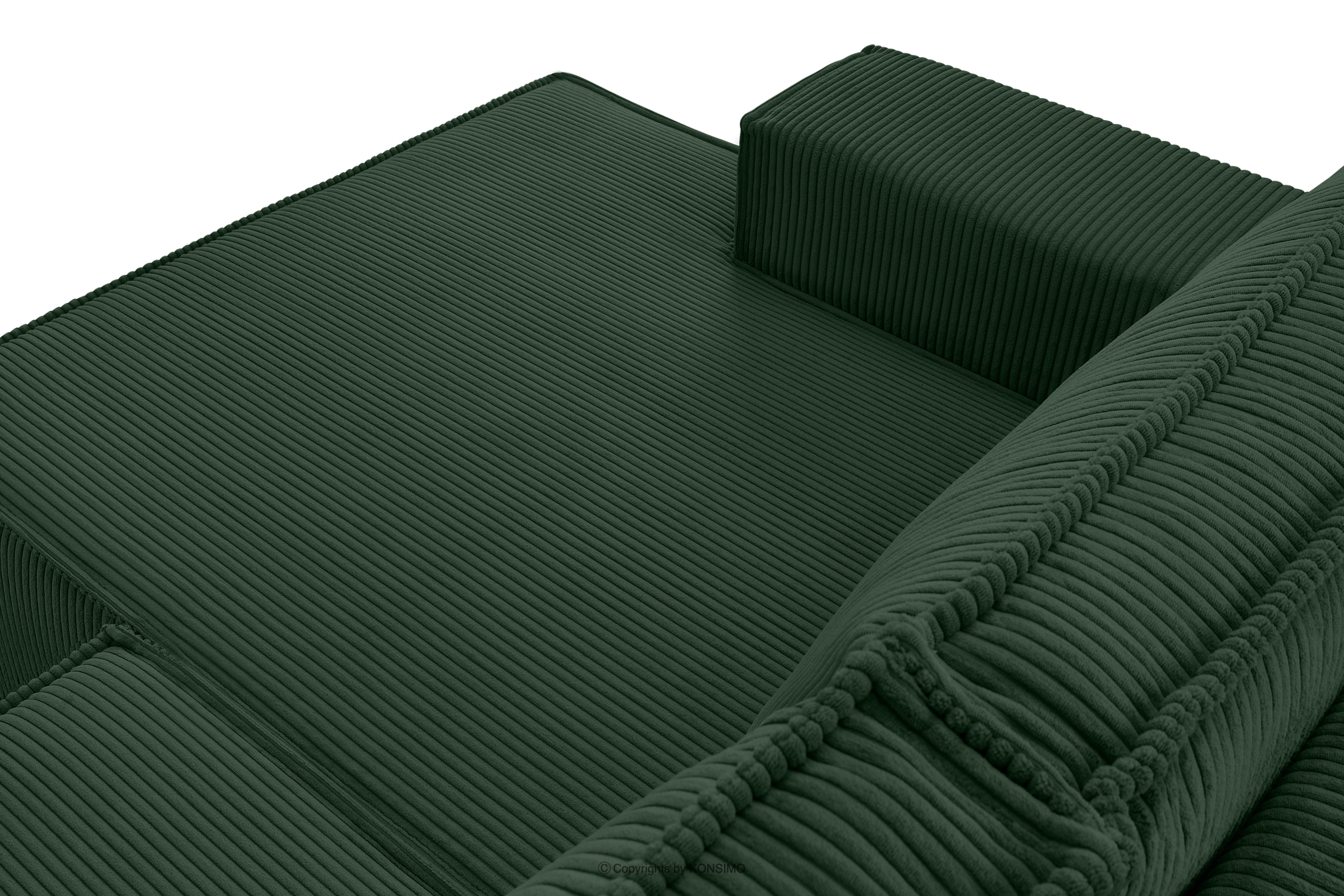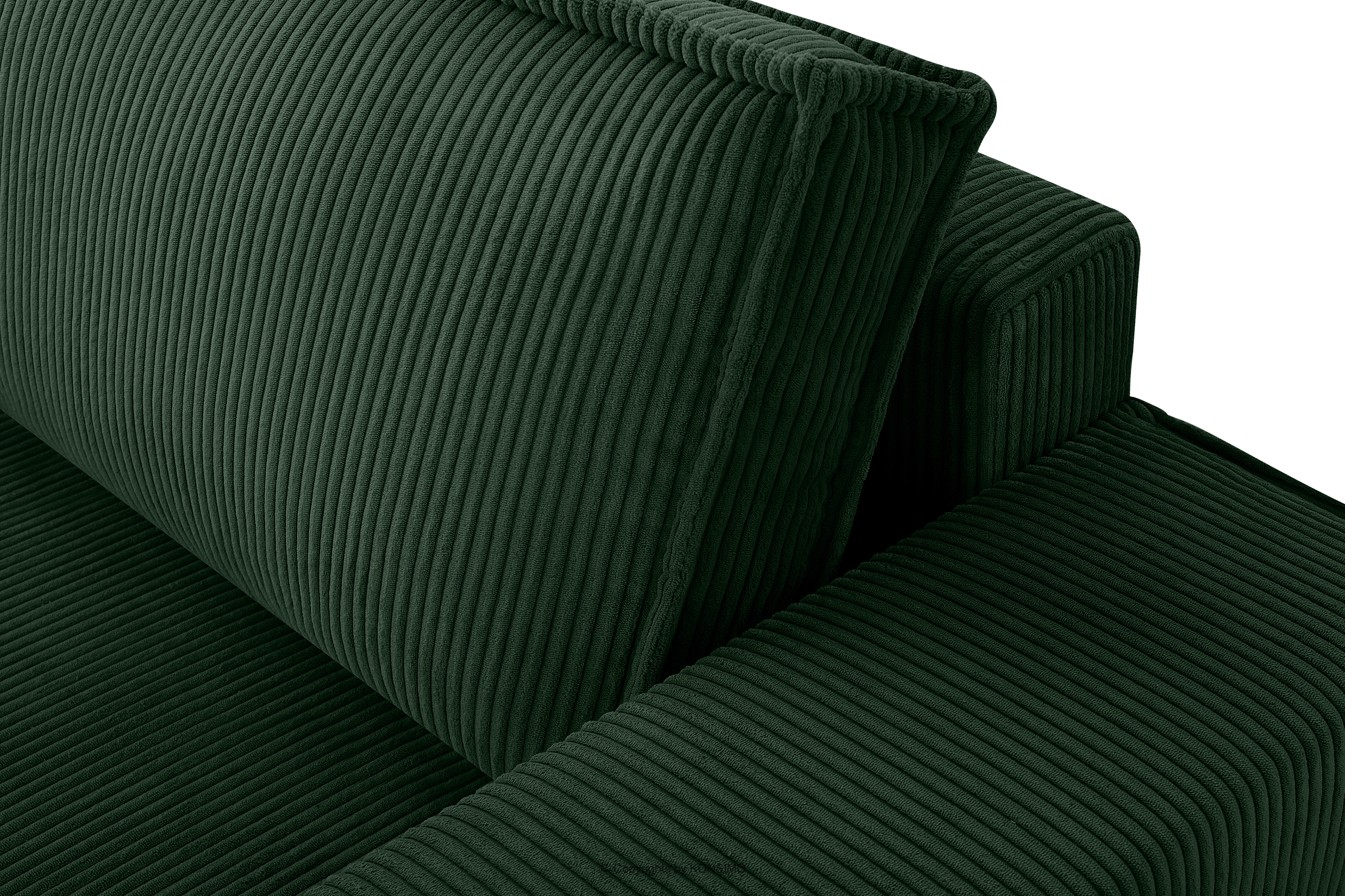 Tmavozelená manšestrová ľavá rozkladacia pohovka do obývačky priťahuje pozornosť, čím sa odlišuje od ostatného nábytku. Celé čalúnenie tohto výnimočného kusu nábytku je vyrobené z jemnej manšestrovej látky, ktorá zaručuje nielen príjemný komfort na dotyk, ale aj dlhotrvajúcu dokonalú estetiku. Vďaka tejto látke bude váš roh NAPI vždy vyzerať dokonale bez ohľadu na čas alebo podmienky používania.