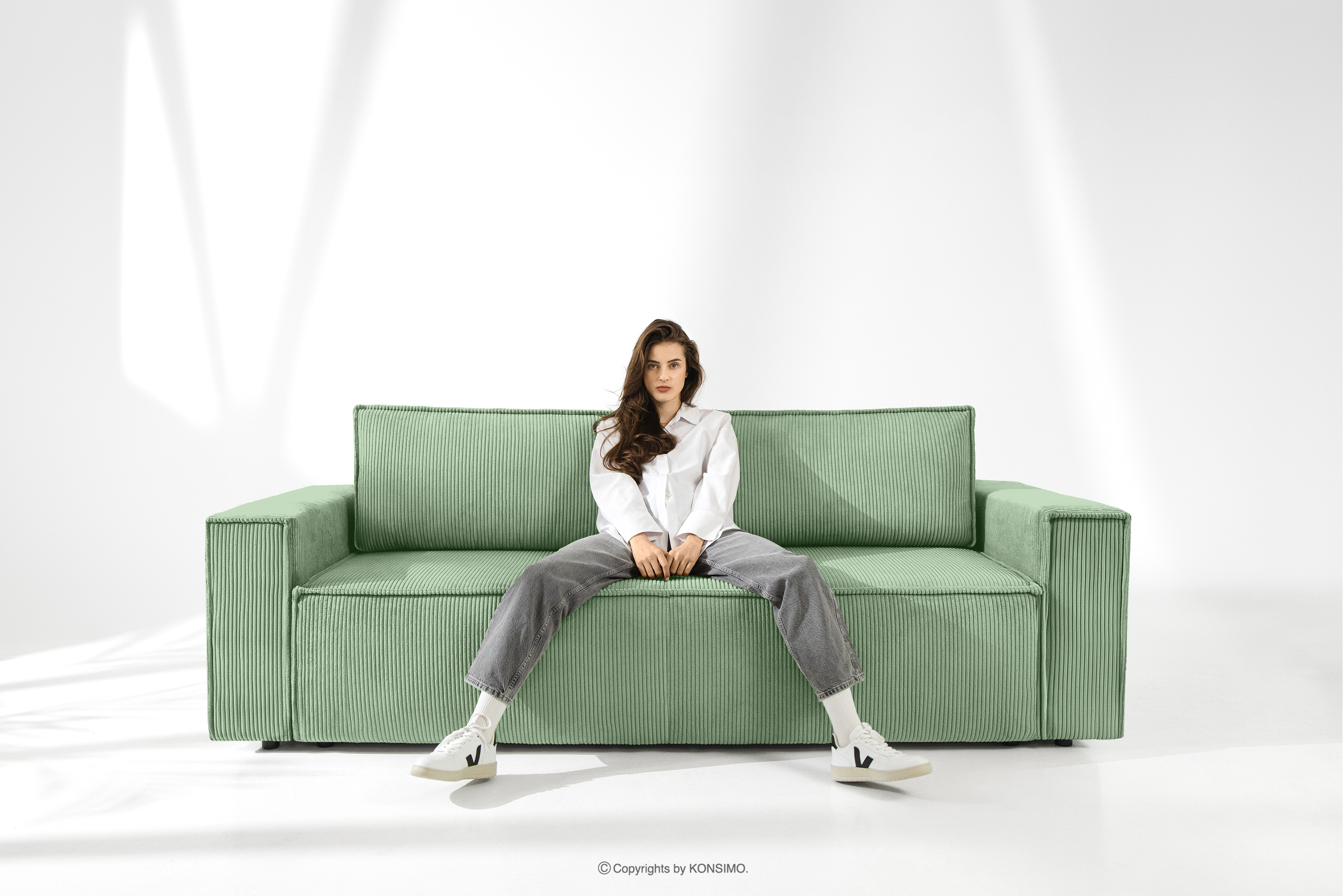 Obývacia rozkladacia pohovka mätová manšestrová ľavá je kus nábytku v modernistickom štýle. Jej charakteristické široké boky ju vyčleňujú z radu štandardného nábytku. To je však len začiatok jej mimoriadnych možností. Je to univerzálna rohová pohovka, čo znamená, že má navyše tú vlastnosť, že si sama dokáže vybrať, na ktorej strane chcete mať ležadlo.