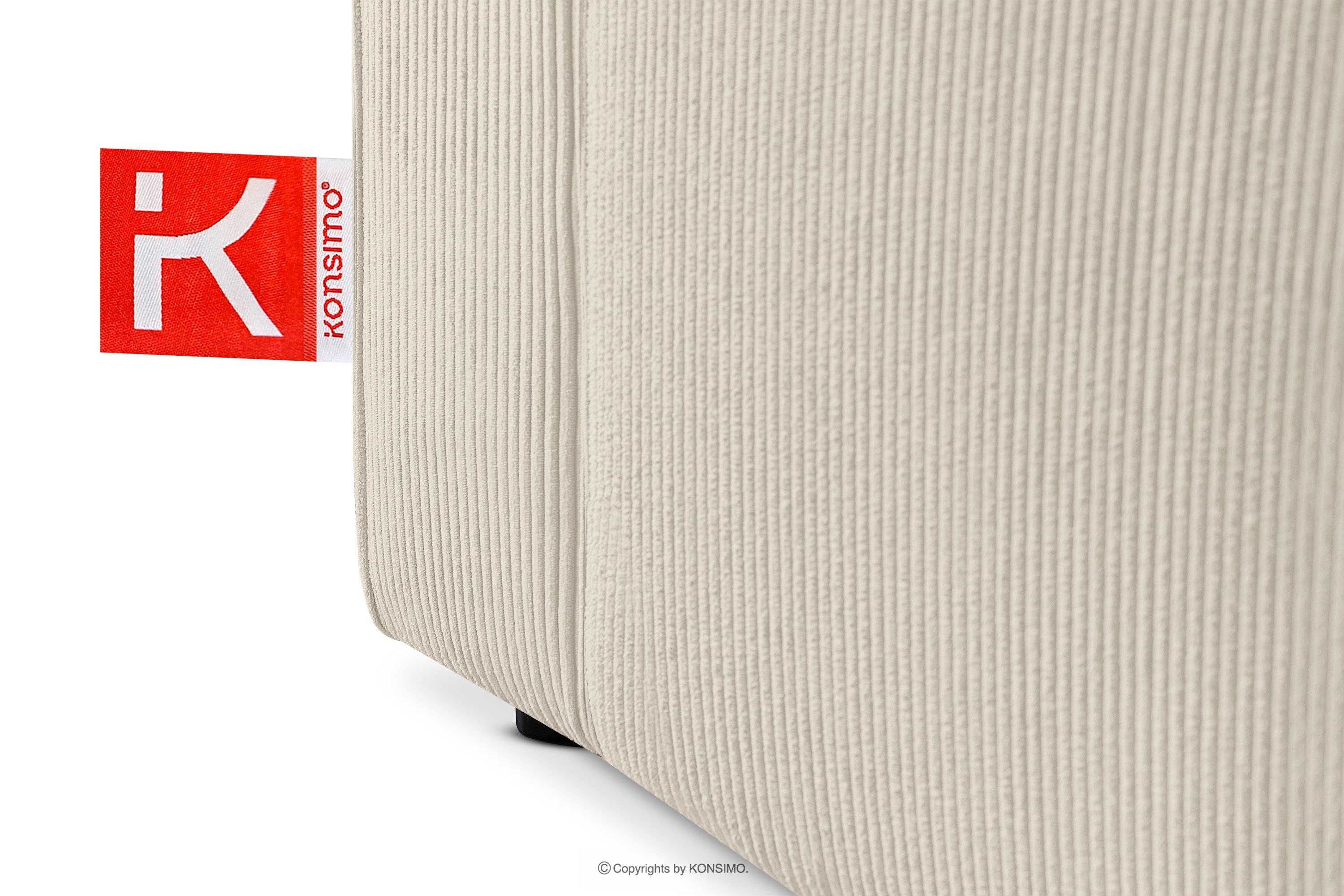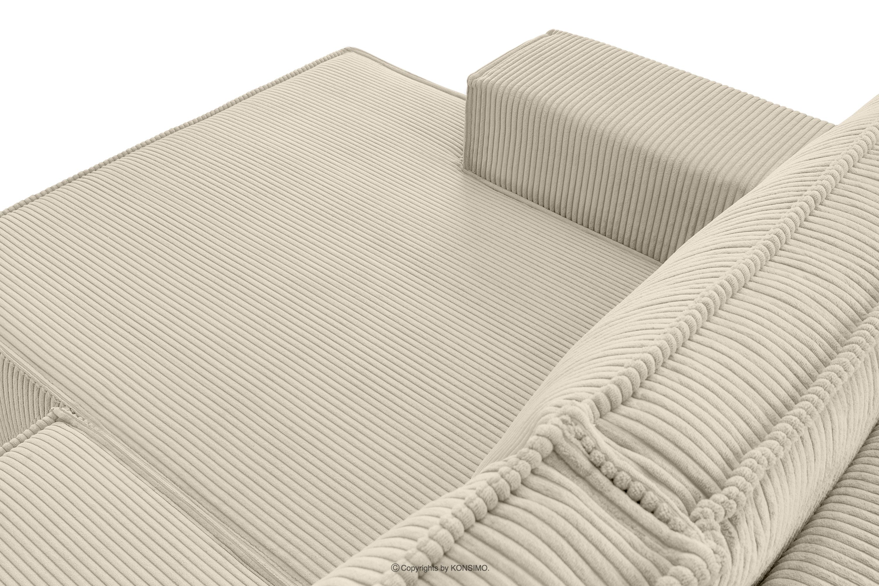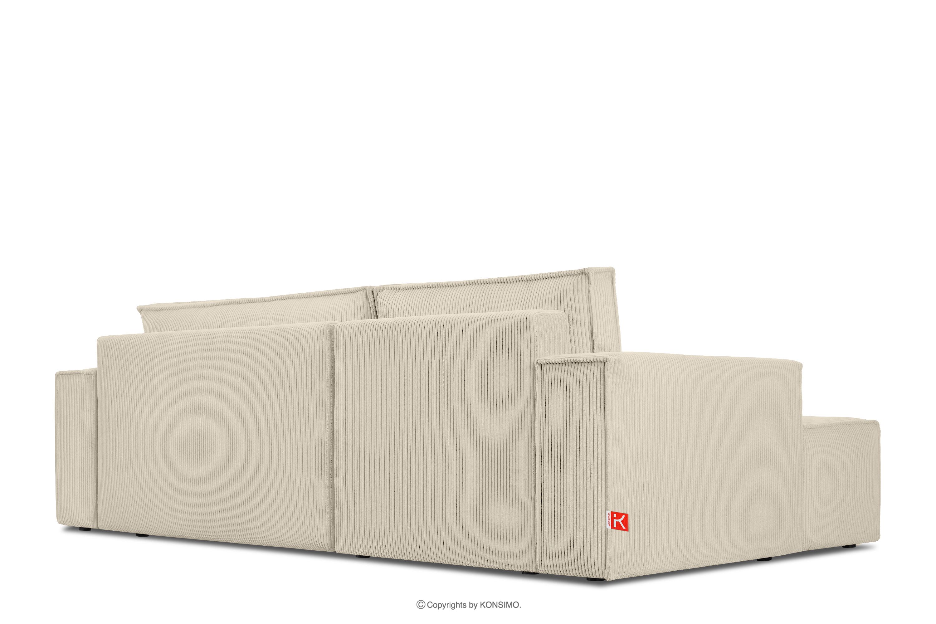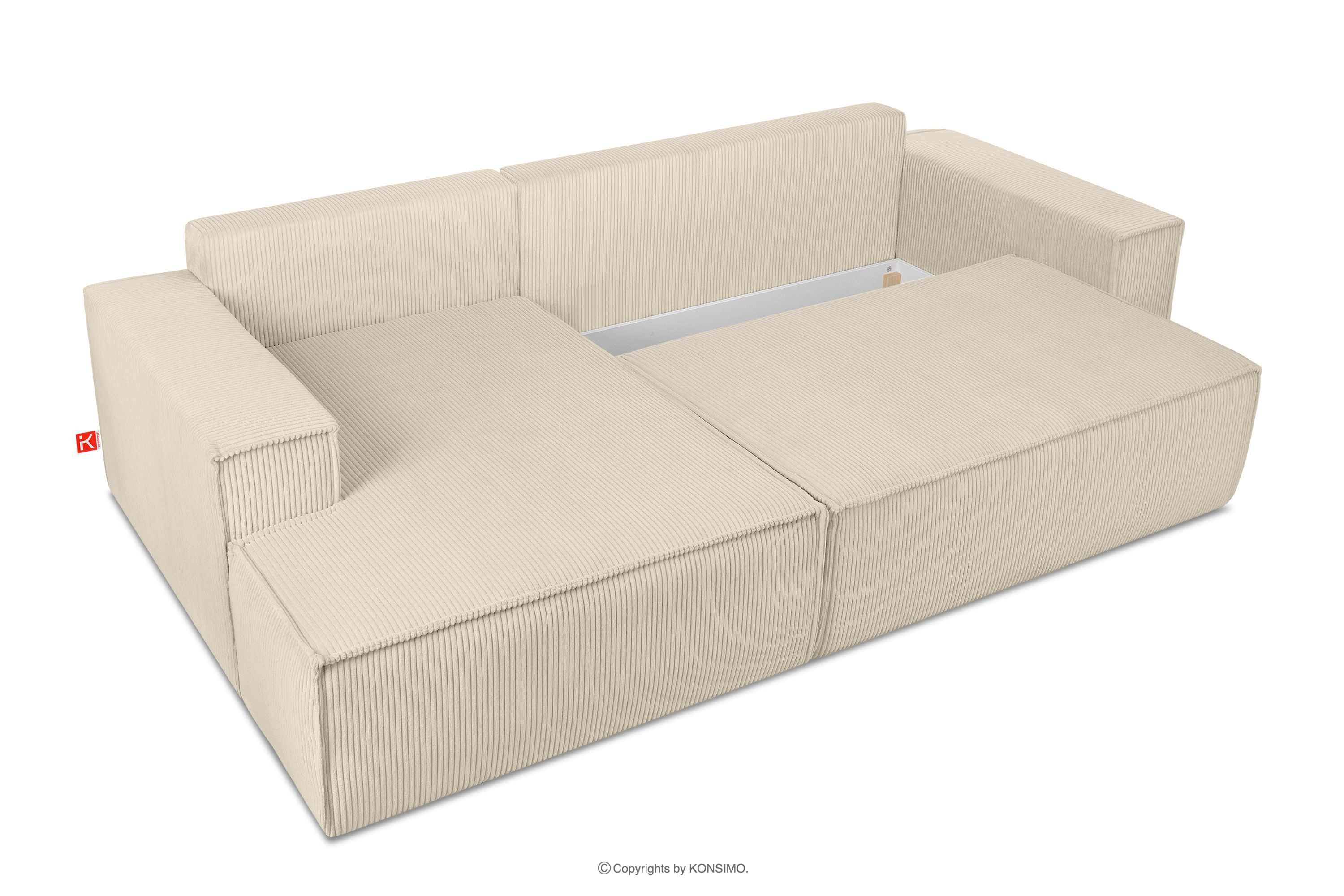 Manšestrová ľavá rozkladacia pohovka do obývacej izby priťahuje pozornosť, čím sa odlišuje od ostatného nábytku. Celé čalúnenie tohto výnimočného kusu nábytku je vyrobené z jemnej manšestrovej látky, ktorá zaručuje nielen príjemný komfort na dotyk, ale aj dlhotrvajúcu dokonalú estetiku. Vďaka tejto látke bude váš roh NAPI vždy vyzerať dokonale bez ohľadu na čas alebo podmienky používania.