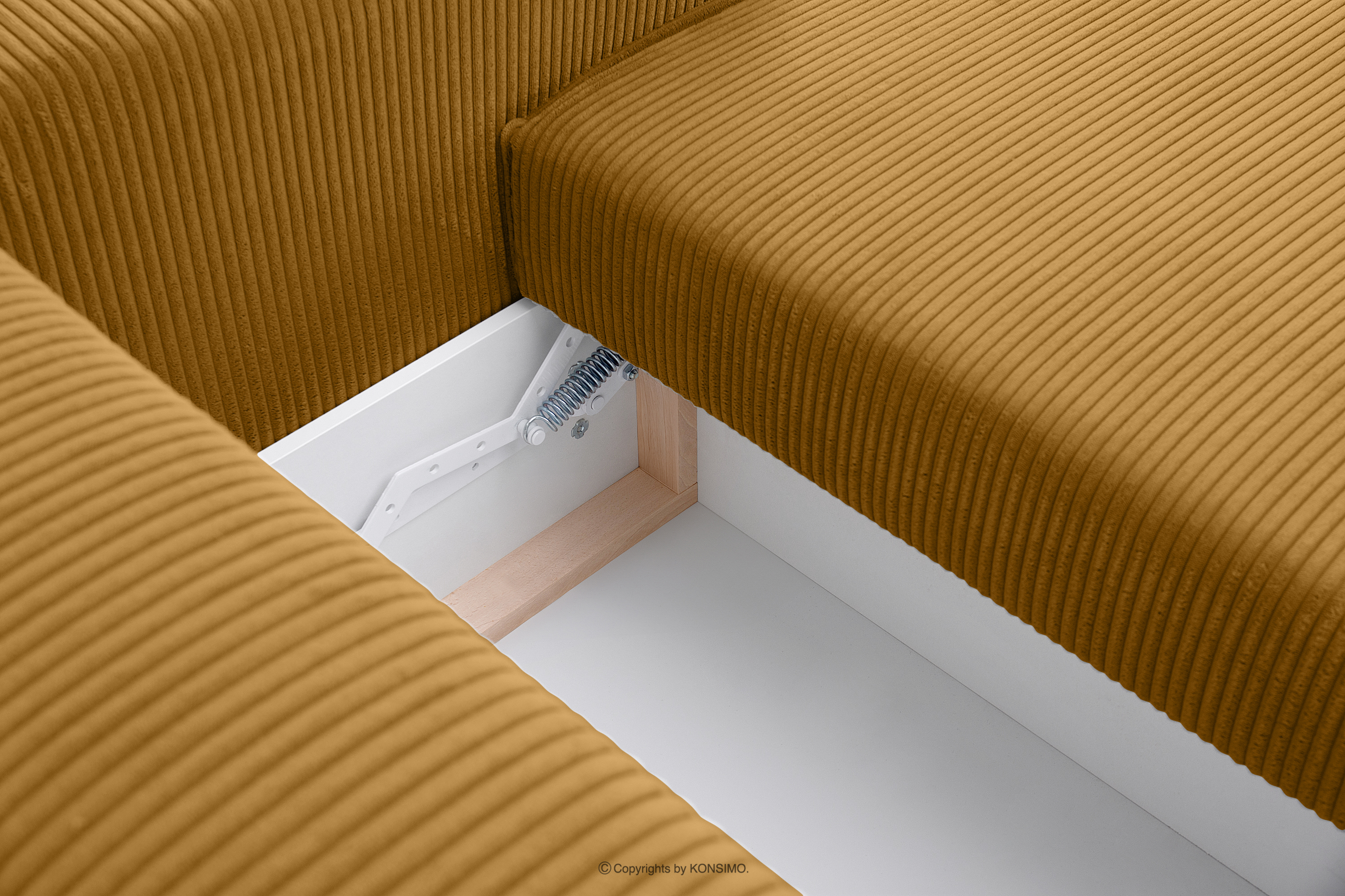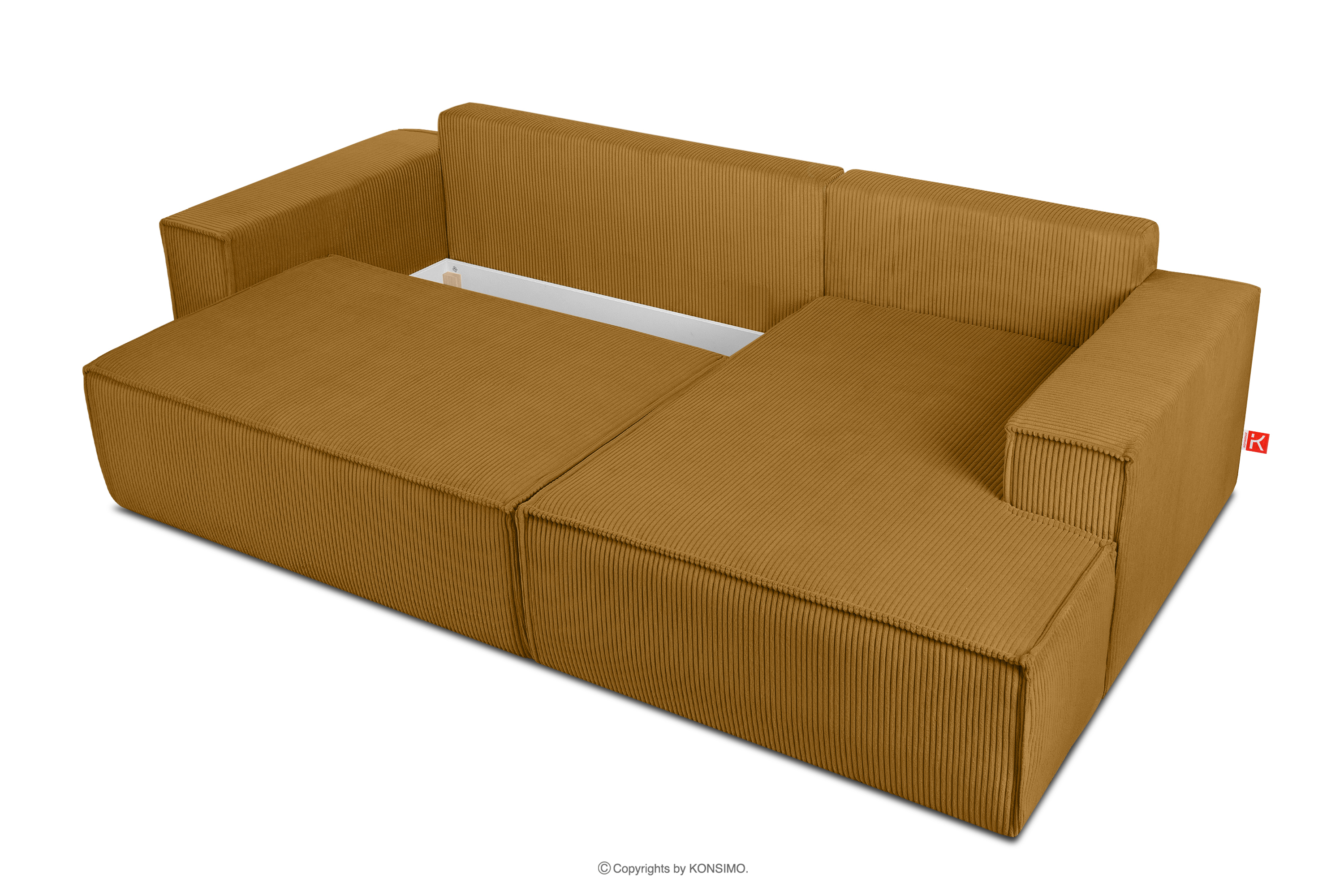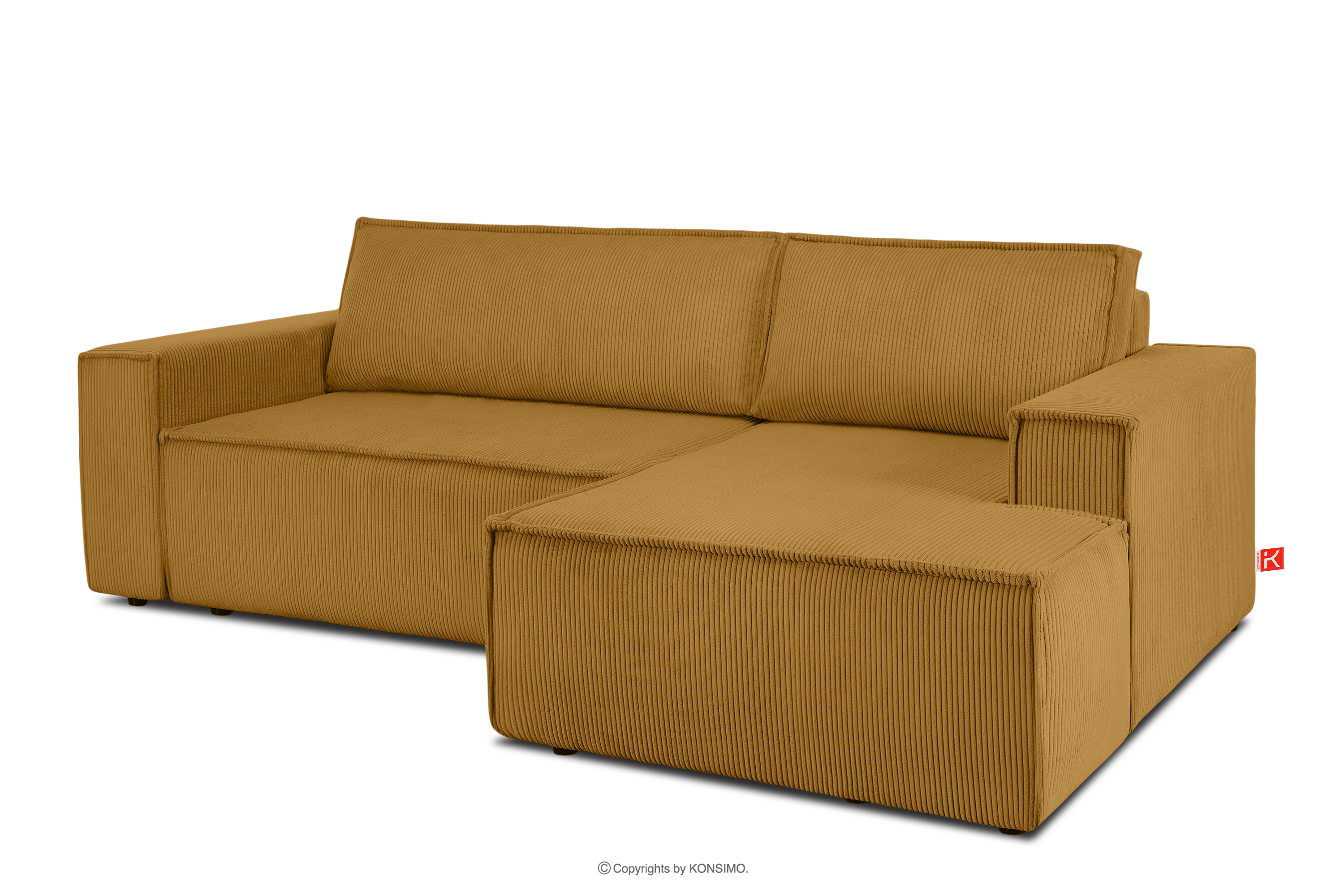 NAPI Objav celú kolekciu Rozkladacia rohová pohovka s komodou na posteľnú bielizeň žltá manšestrová vpravo- farba žltá