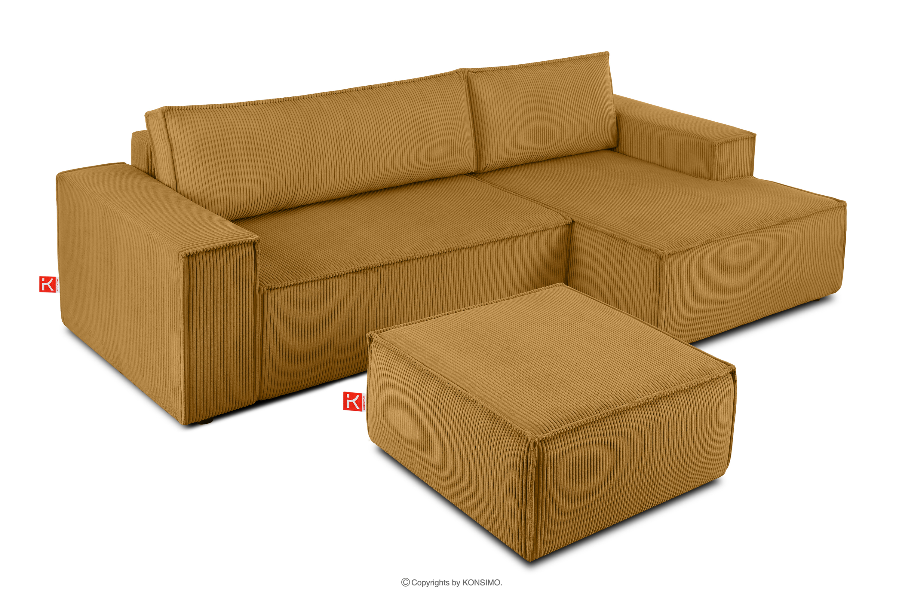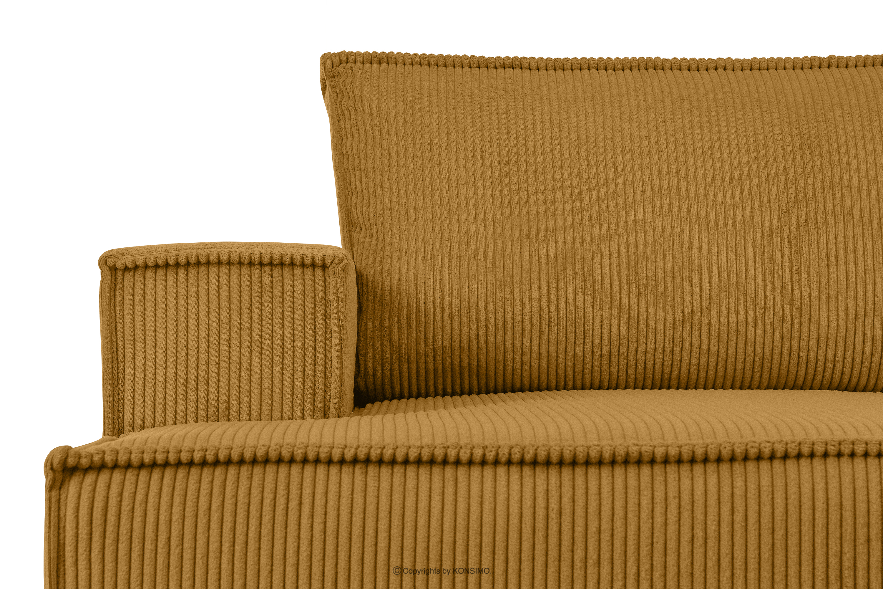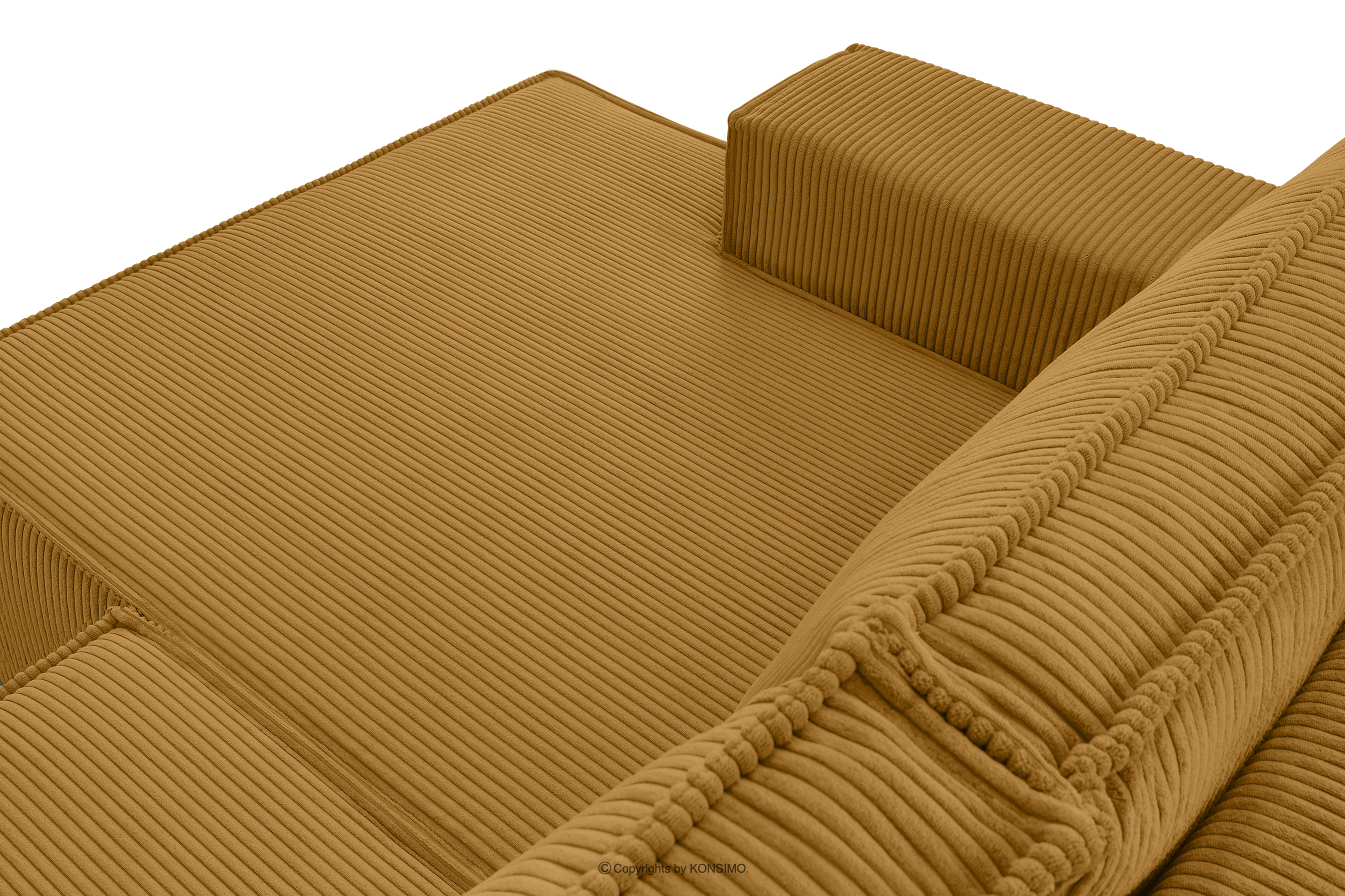 Rozkladacia rohová sedacia súprava s posteľným boxom žltý manšestrík vpravo upúta pozornosť, čím sa odlišuje od ostatného nábytku. Celé čalúnenie tohto jedinečného kusu nábytku je vyrobené z jemnej manšestrovej látky, ktorá zaručuje nielen príjemný komfort na dotyk, ale aj dlhotrvajúcu dokonalú estetiku. Vďaka tejto látke bude váš roh NAPI vždy vyzerať dokonale bez ohľadu na čas alebo podmienky používania.