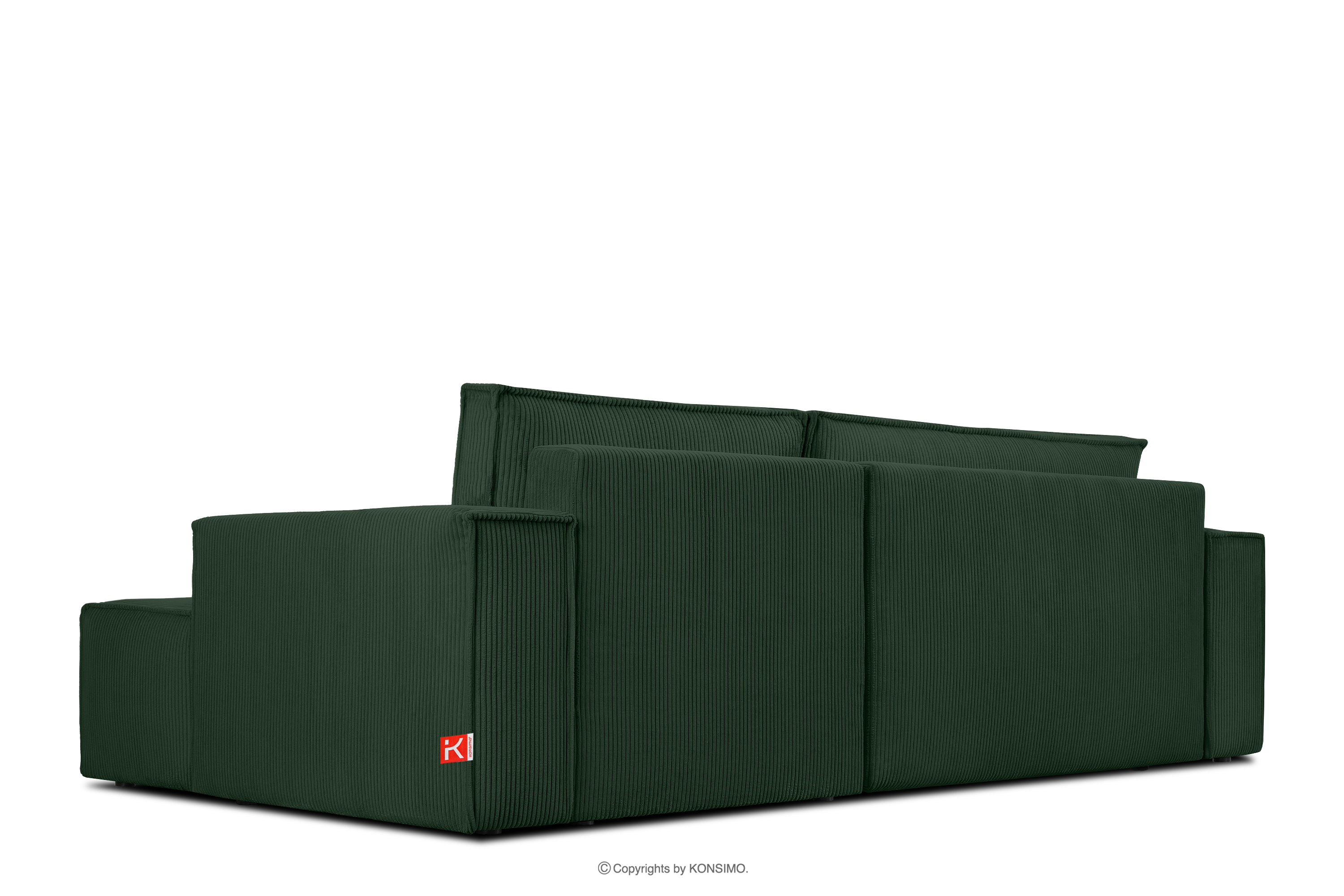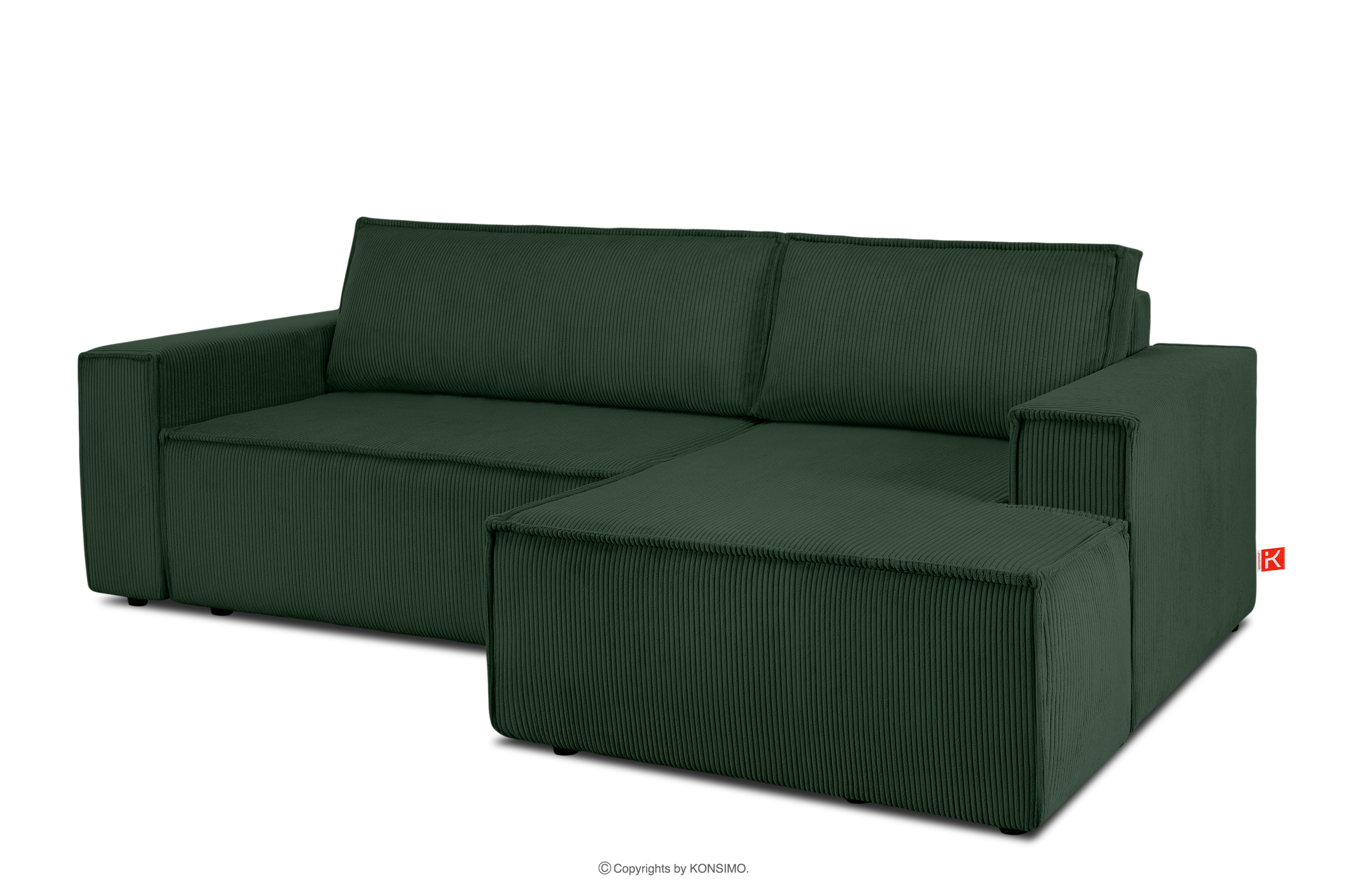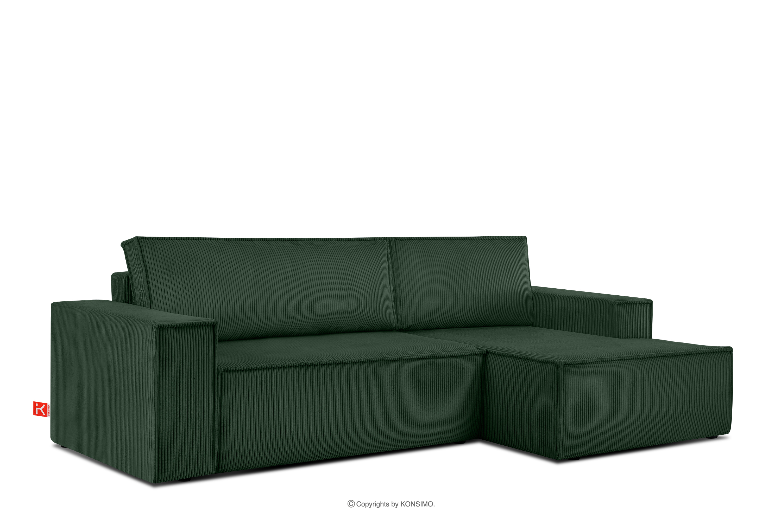 NAPI Rozkladacia rohová pohovka s truhlicou na posteľnú bielizeň tmavozelená manšestrová vpravo