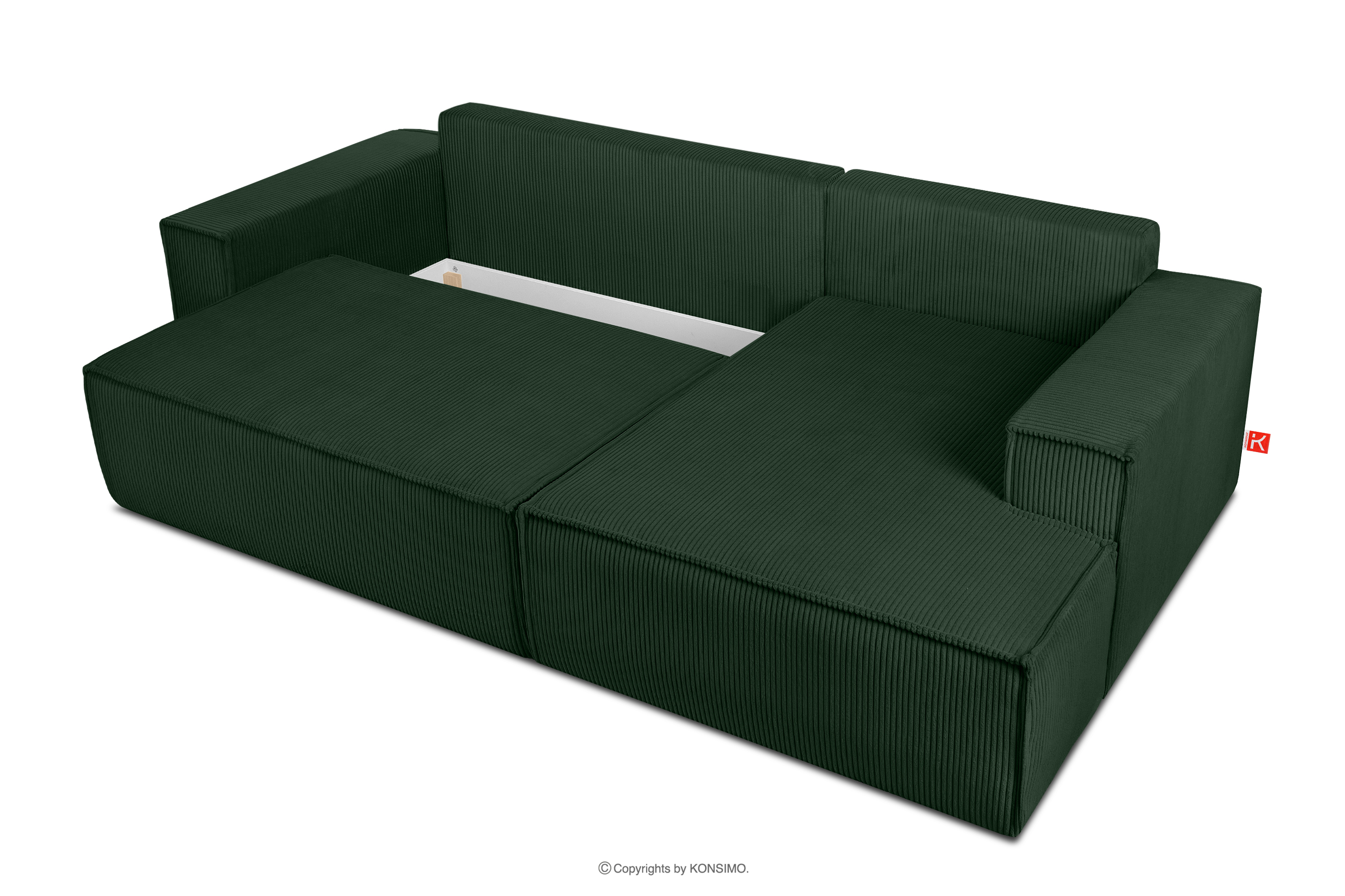 produktu Rozkladacia rohová pohovka s truhlicou na posteľnú bielizeň tmavozelená manšestrová vpravo