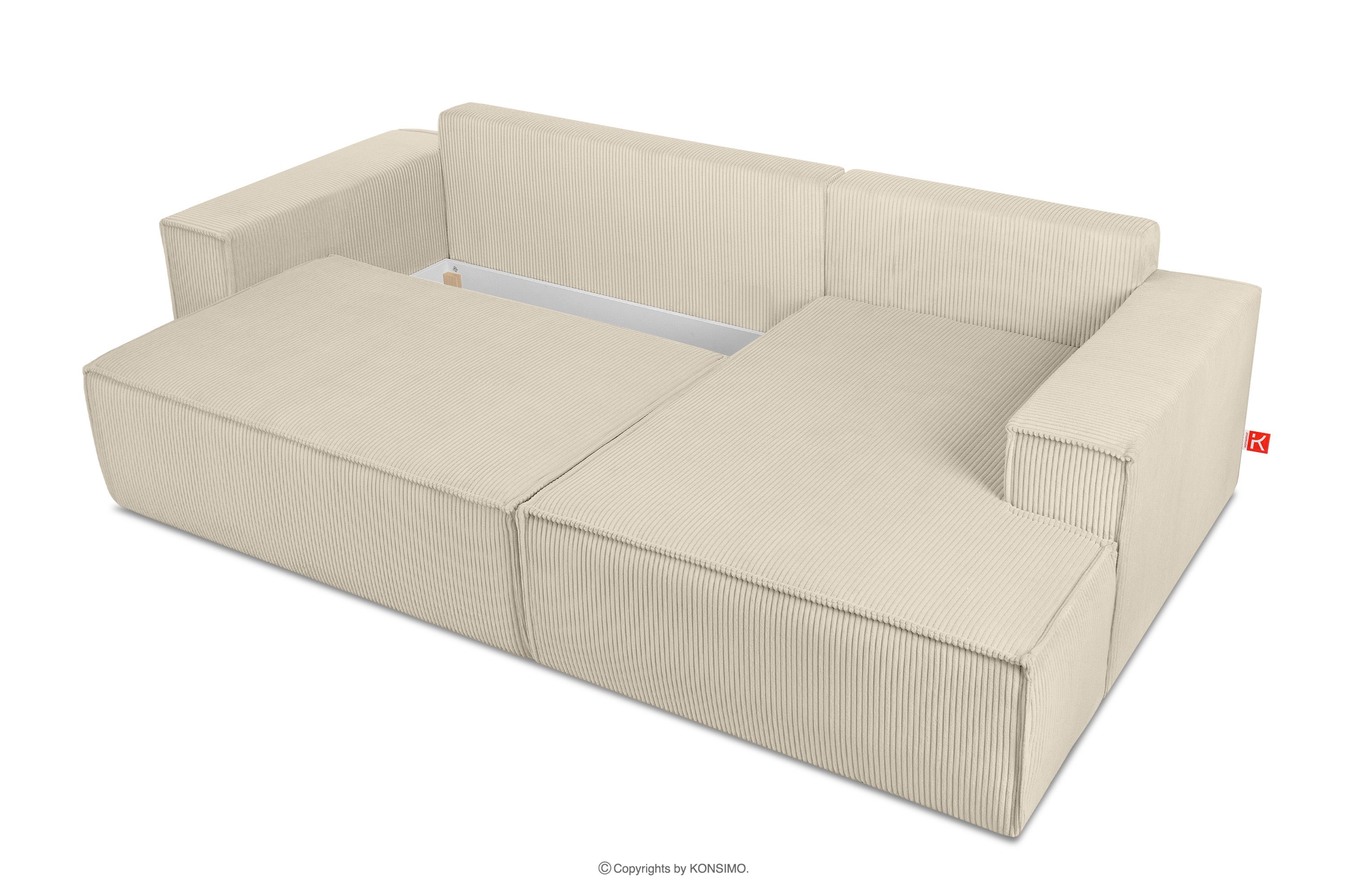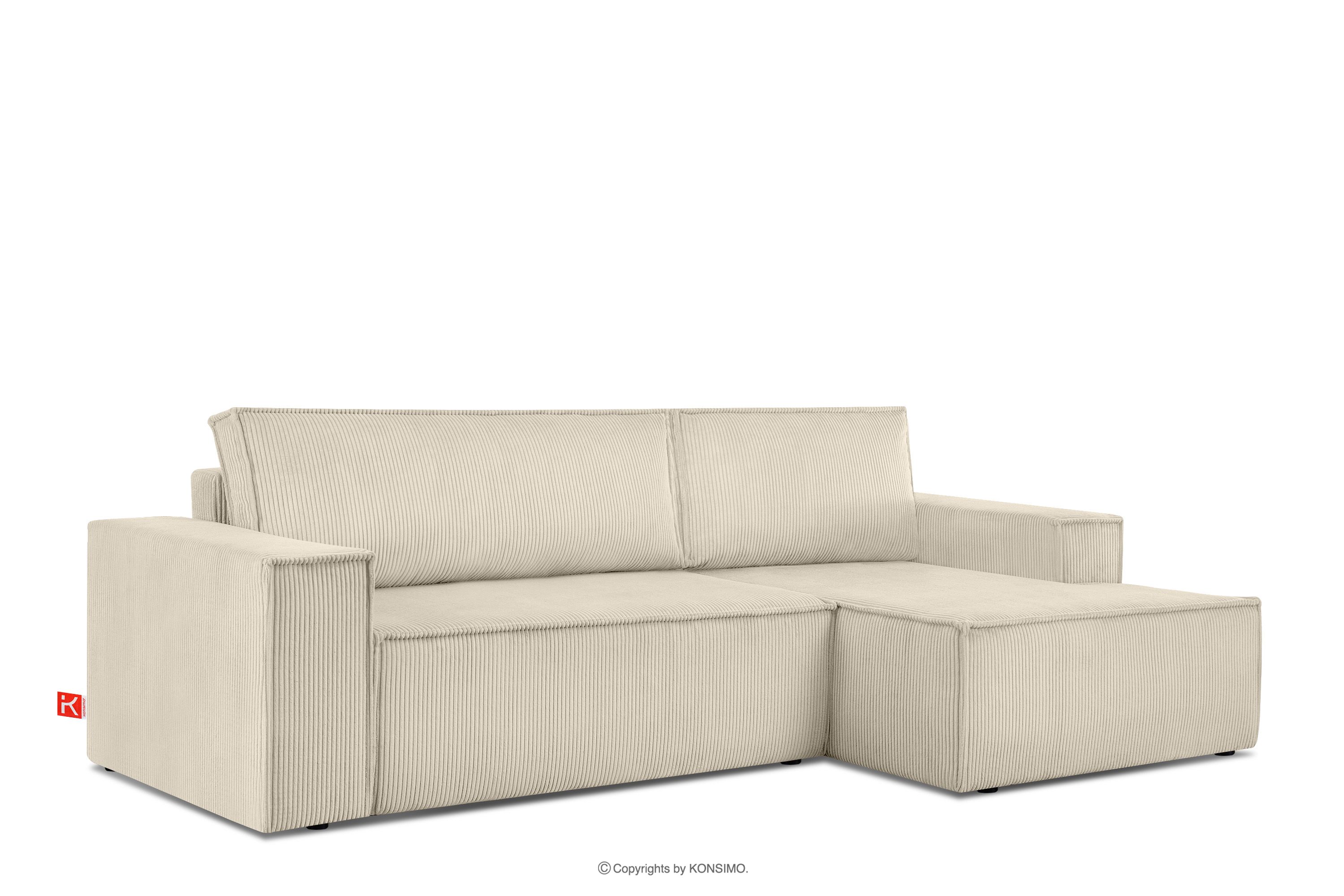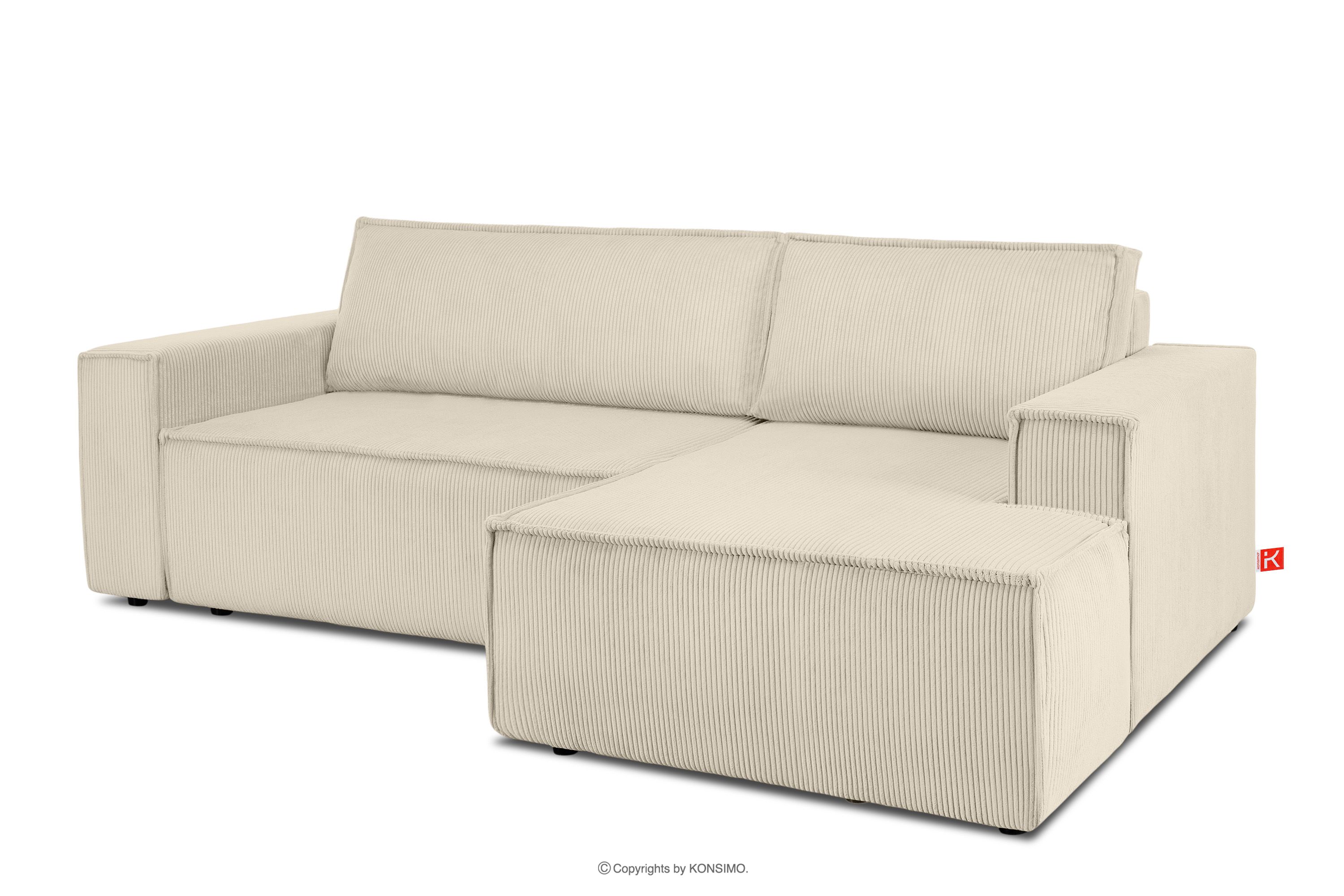 NAPI Rozkladacia rohová pohovka s truhlicou na lôžkoviny krémový manšestr vpravo