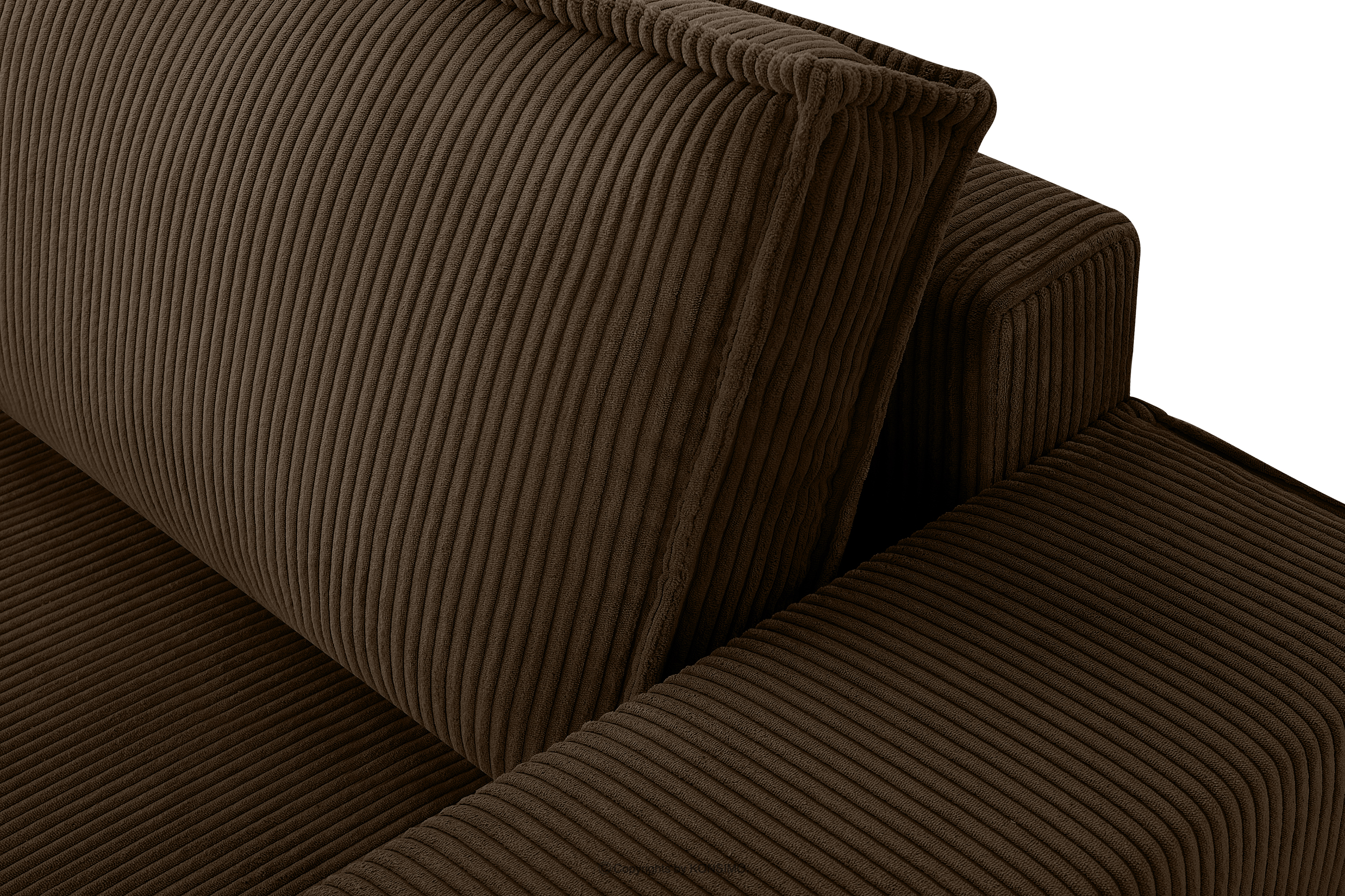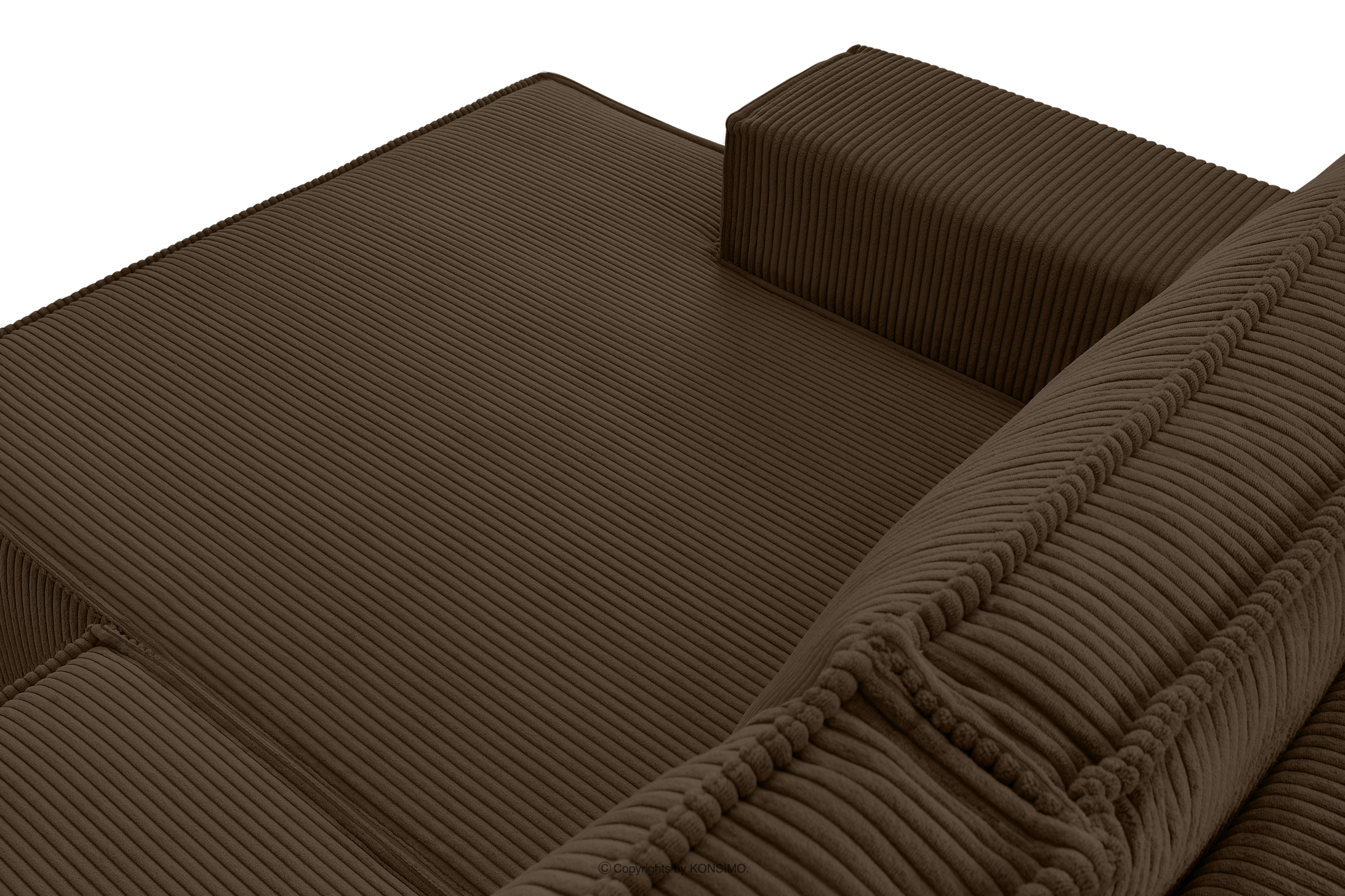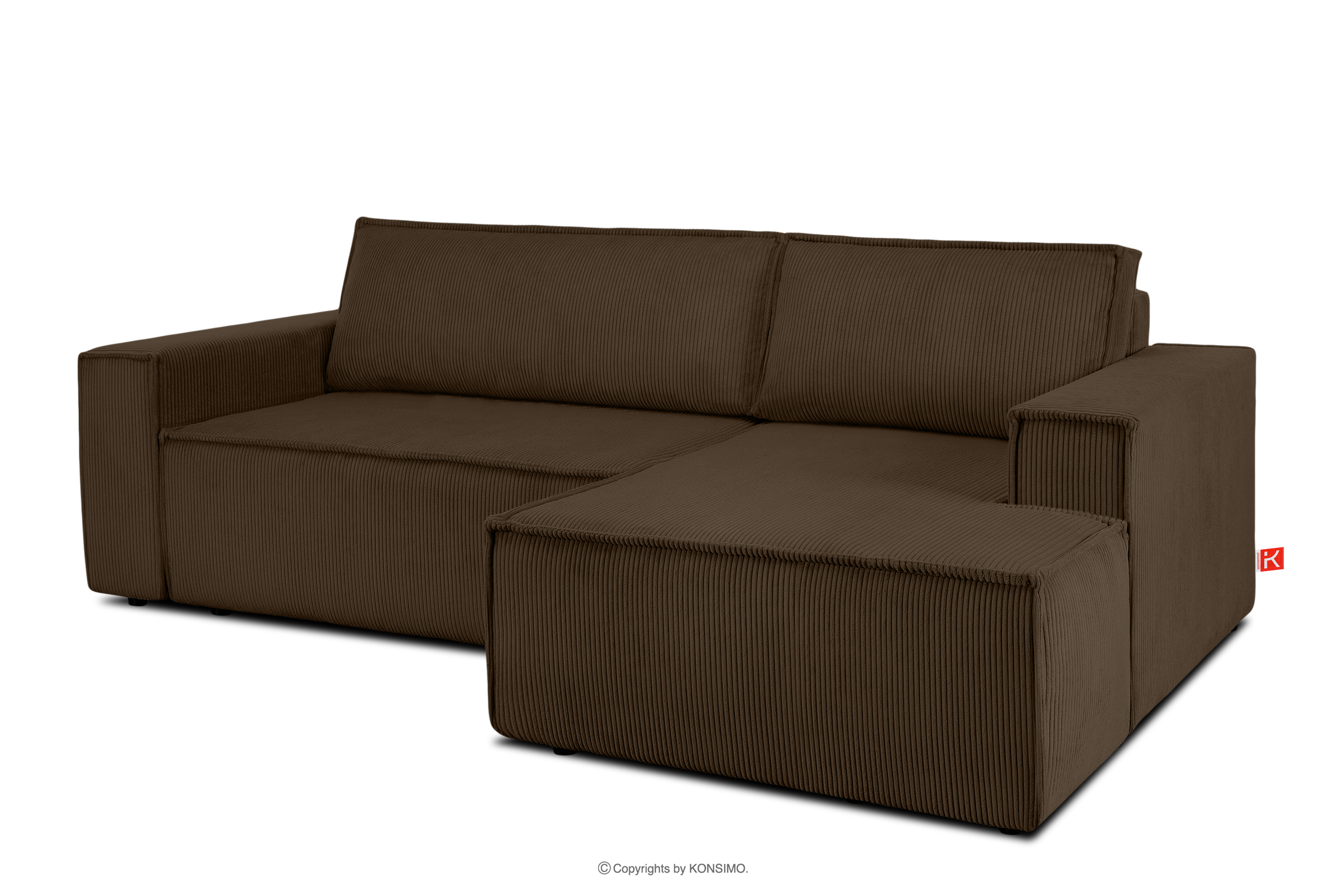 Rozkladacia rohová sedacia súprava s posteľným boxom tmavohnedý manšestrík vpravo upúta pozornosť, vďaka čomu vynikne medzi ostatným nábytkom. Celé čalúnenie tohto jedinečného kusu nábytku je vyrobené z jemnej manšestrovej látky, ktorá zaručuje nielen príjemný komfort na dotyk, ale aj dlhotrvajúcu dokonalú estetiku. Vďaka tejto látke bude váš roh NAPI vždy vyzerať dokonale bez ohľadu na čas alebo podmienky používania.