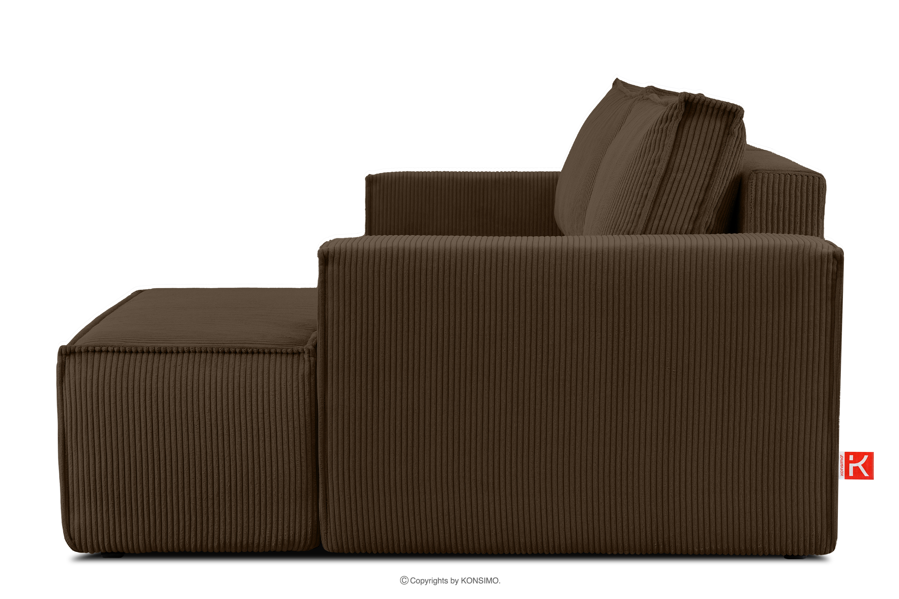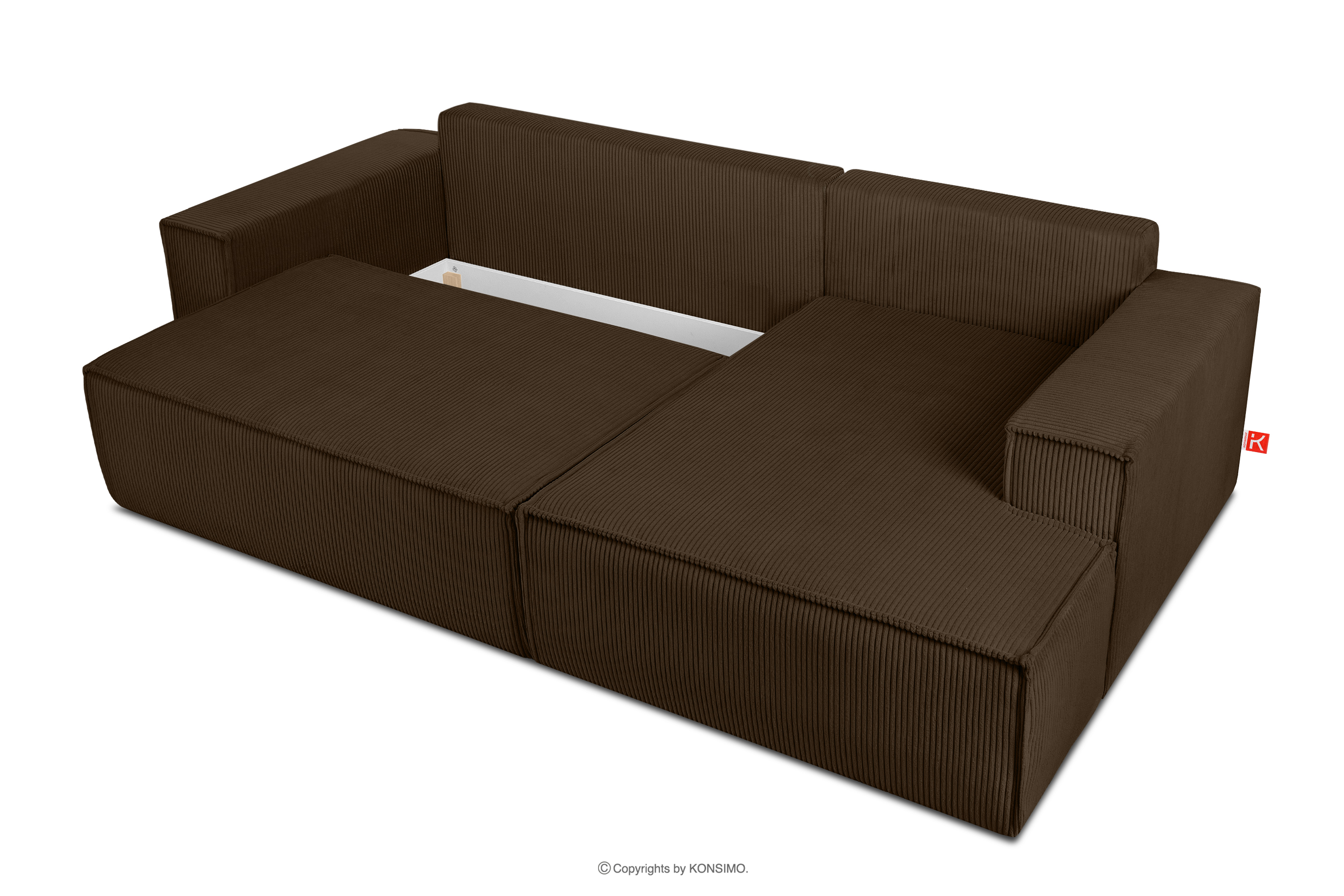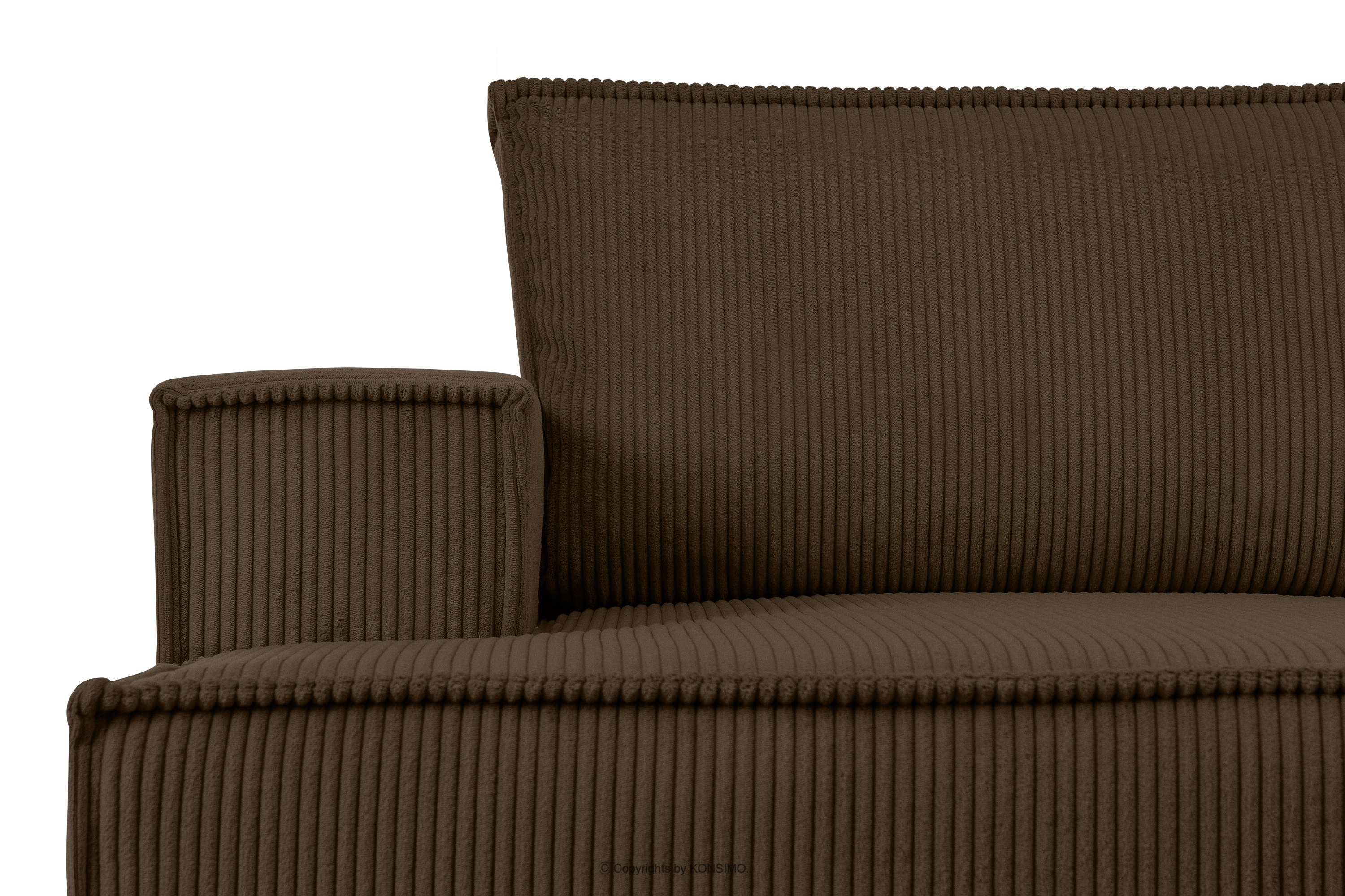 Rozkladacia rohová sedacia súprava s posteľným boxom tmavohnedý manšestrík vpravo upúta pozornosť, vďaka čomu vynikne medzi ostatným nábytkom. Celé čalúnenie tohto jedinečného kusu nábytku je vyrobené z jemnej manšestrovej látky, ktorá zaručuje nielen príjemný komfort na dotyk, ale aj dlhotrvajúcu dokonalú estetiku. Vďaka tejto látke bude váš roh NAPI vždy vyzerať dokonale bez ohľadu na čas alebo podmienky používania.