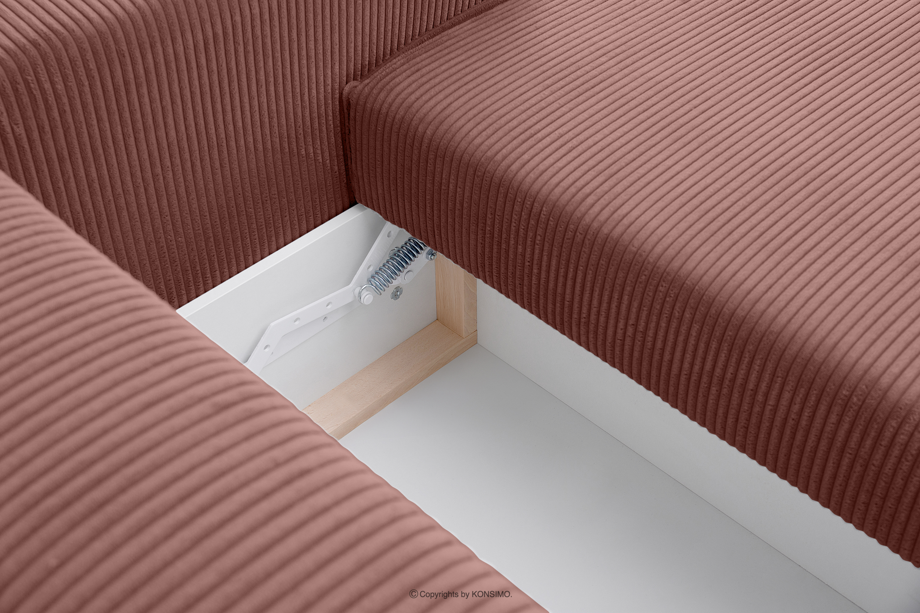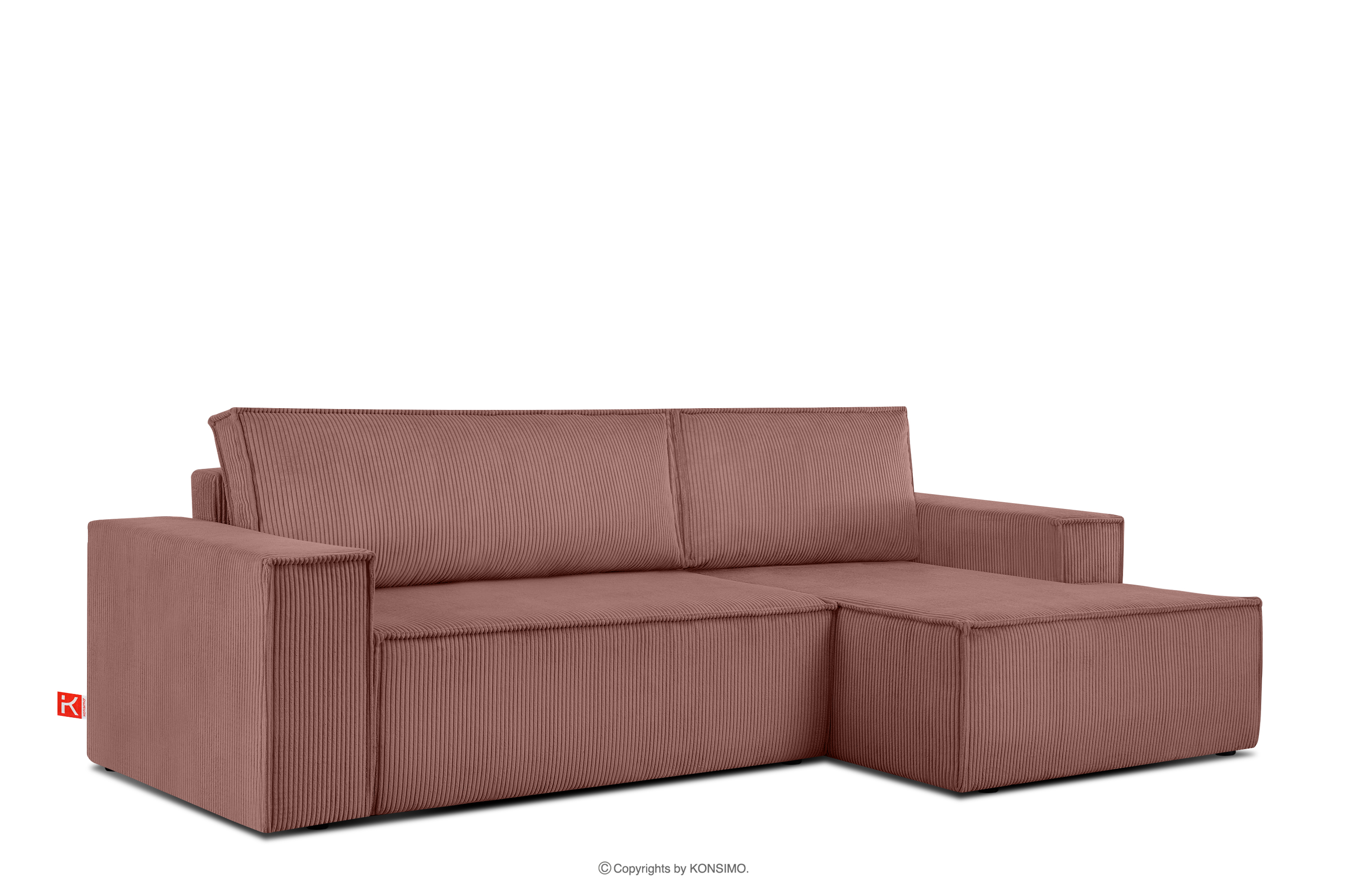 NAPI Objav celú kolekciu Rozkladacia rohová pohovka s komodou na posteľnú bielizeň ružový manšestr pravý- farba ružová