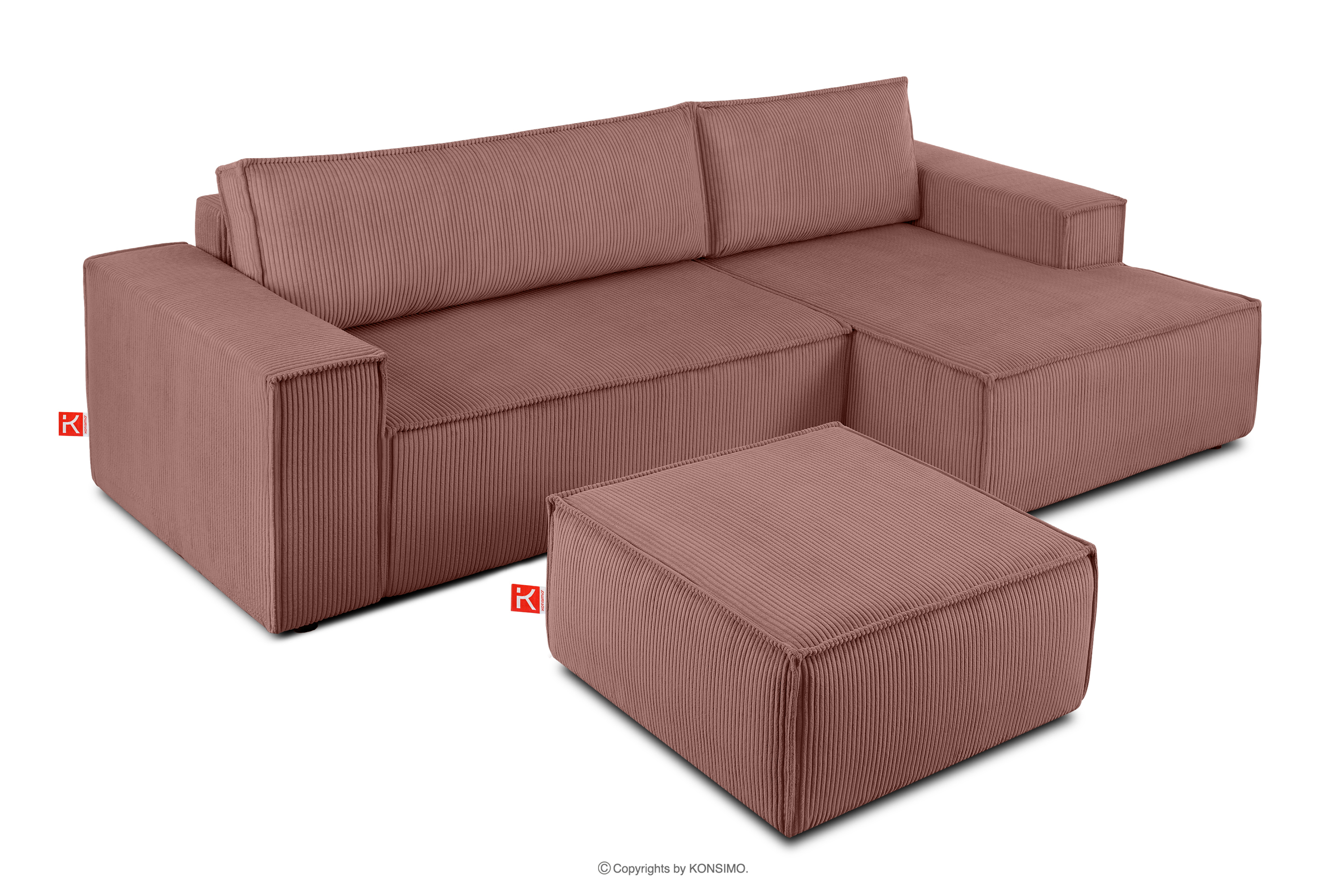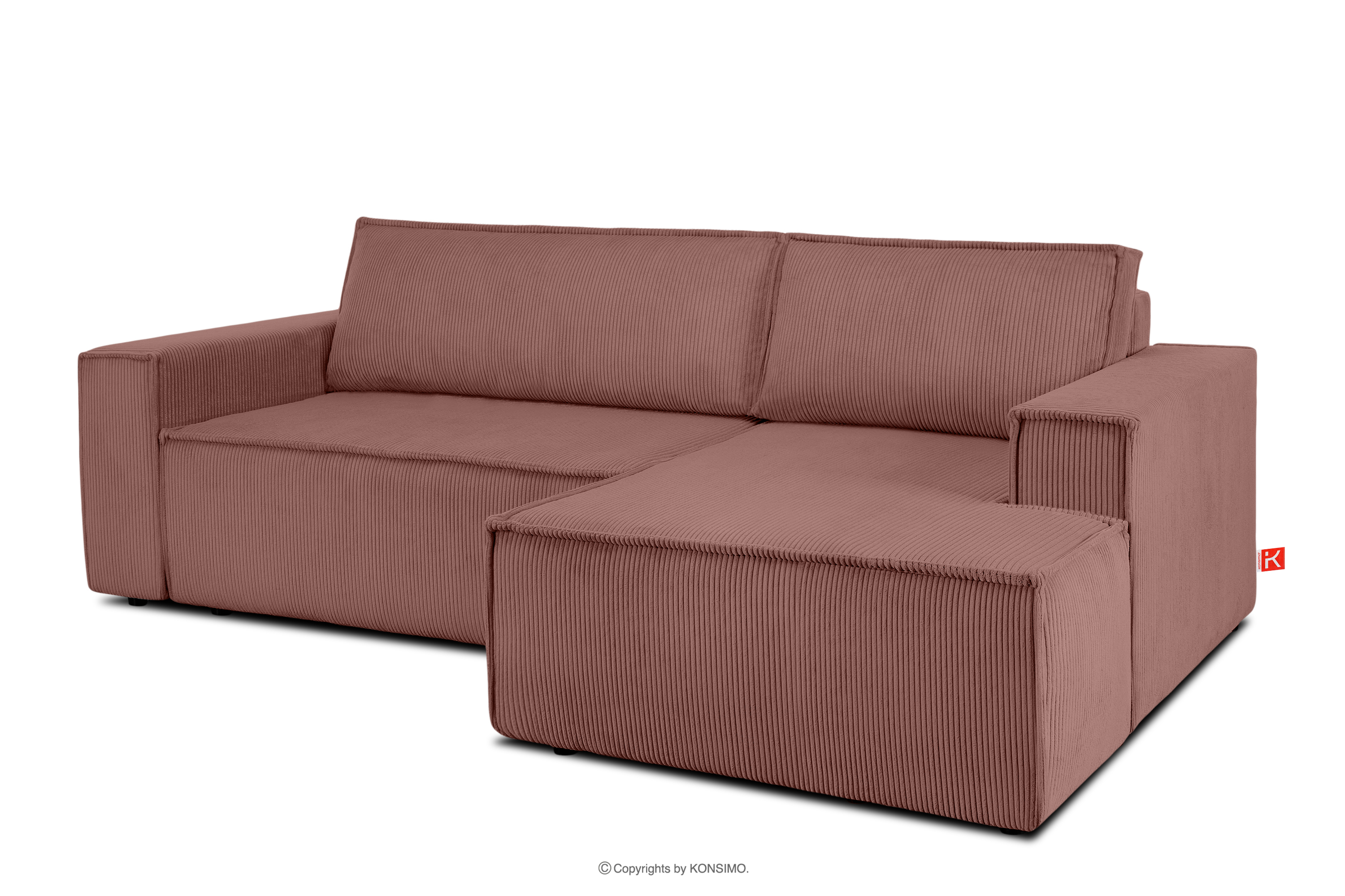Rozkladacia rohová sedacia súprava s posteľným boxom ružový manšestrík vpravo upúta pozornosť, vďaka čomu vynikne medzi ostatným nábytkom. Celé čalúnenie tohto jedinečného kusu nábytku je vyrobené z jemnej manšestrovej látky, ktorá zaručuje nielen príjemný komfort na dotyk, ale aj dlhotrvajúcu dokonalú estetiku. Vďaka tejto látke bude váš roh NAPI vždy vyzerať dokonale bez ohľadu na čas alebo podmienky používania.