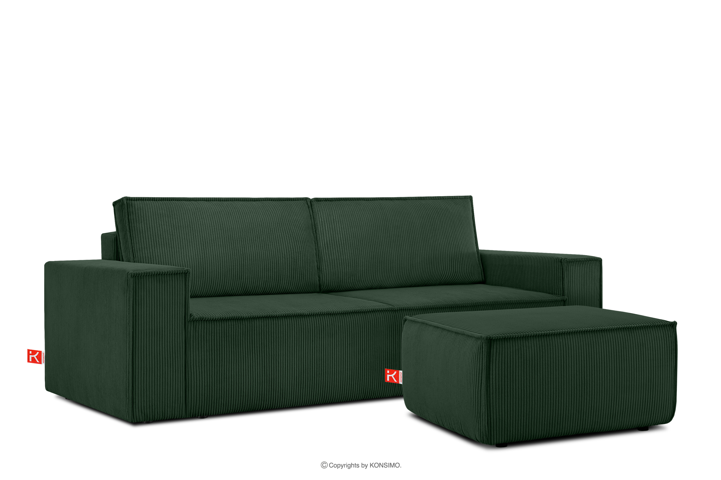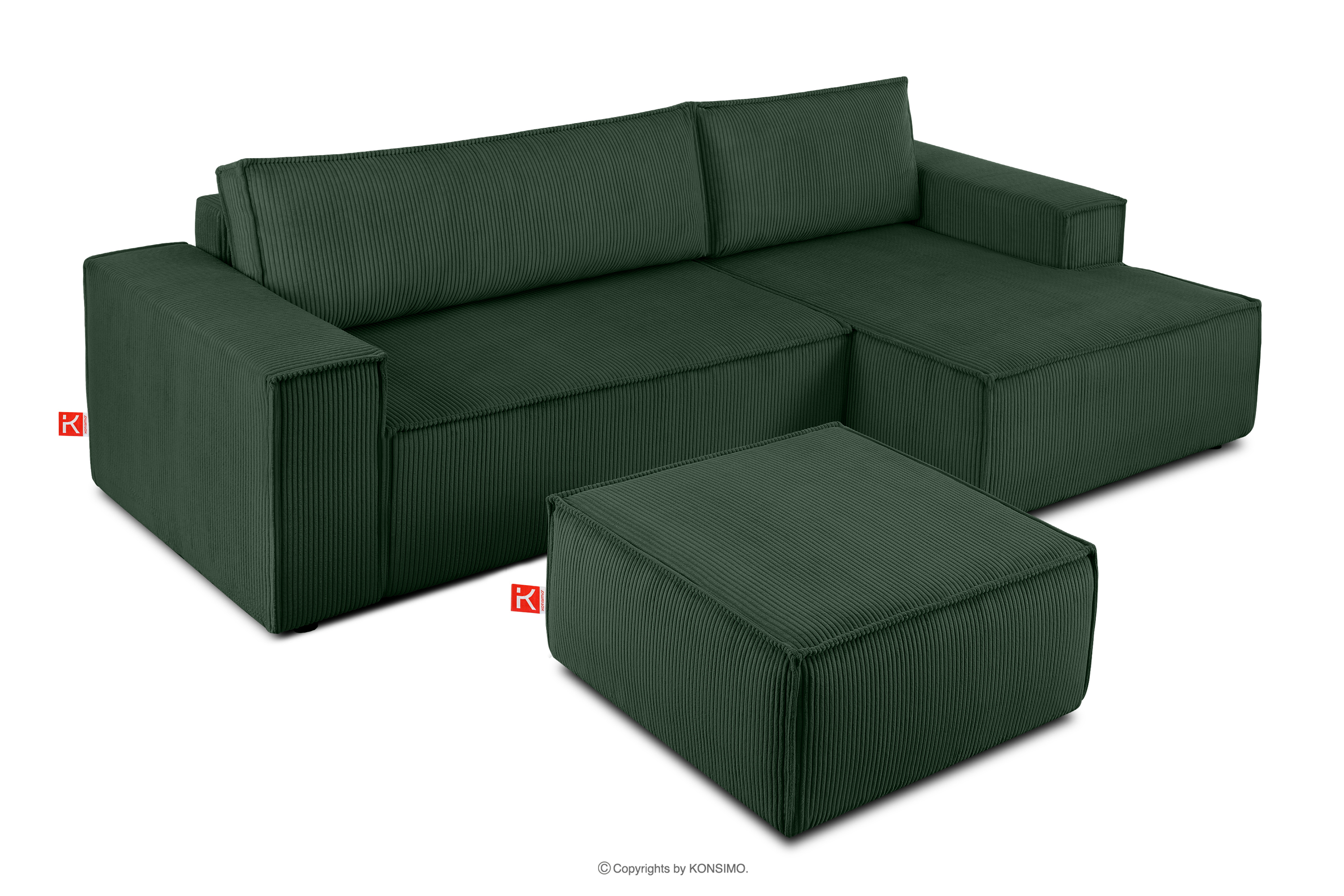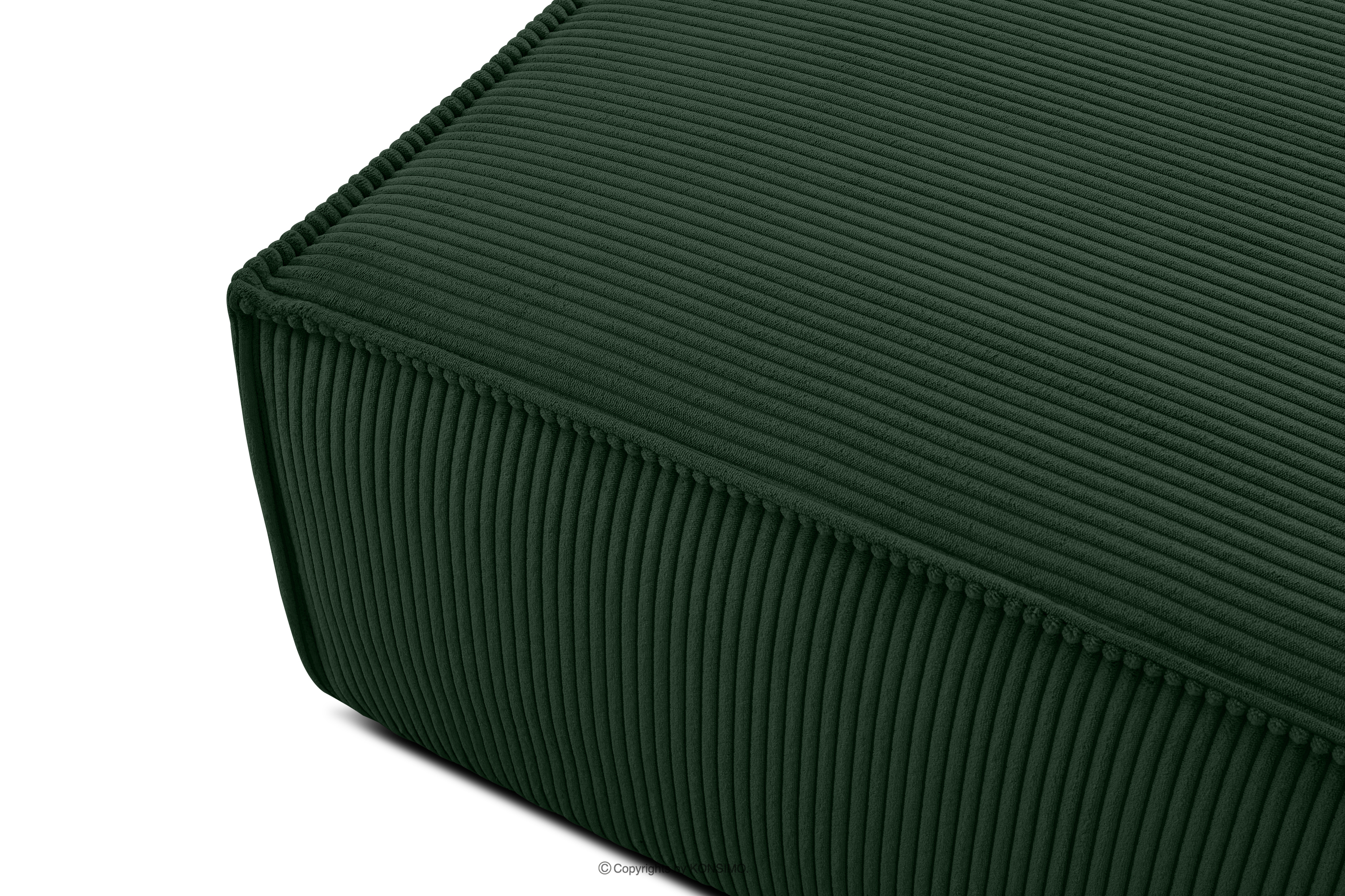 Veľký puf v manšestrovej látke tmavozelenej farby je kus nábytku v modernistickom štýle. Je dokonalým doplnkom k rohovým sedacím súpravám a pohovkám z rovnakej kolekcie a bude vyzerať dobre aj samostatne. Je umiestnený na pevných čiernych nožičkách, ktoré zabraňujú zašpineniu látky. Čalúnenie pufu je zárukou, že váš puf NAPI bude vždy vyzerať dokonale.