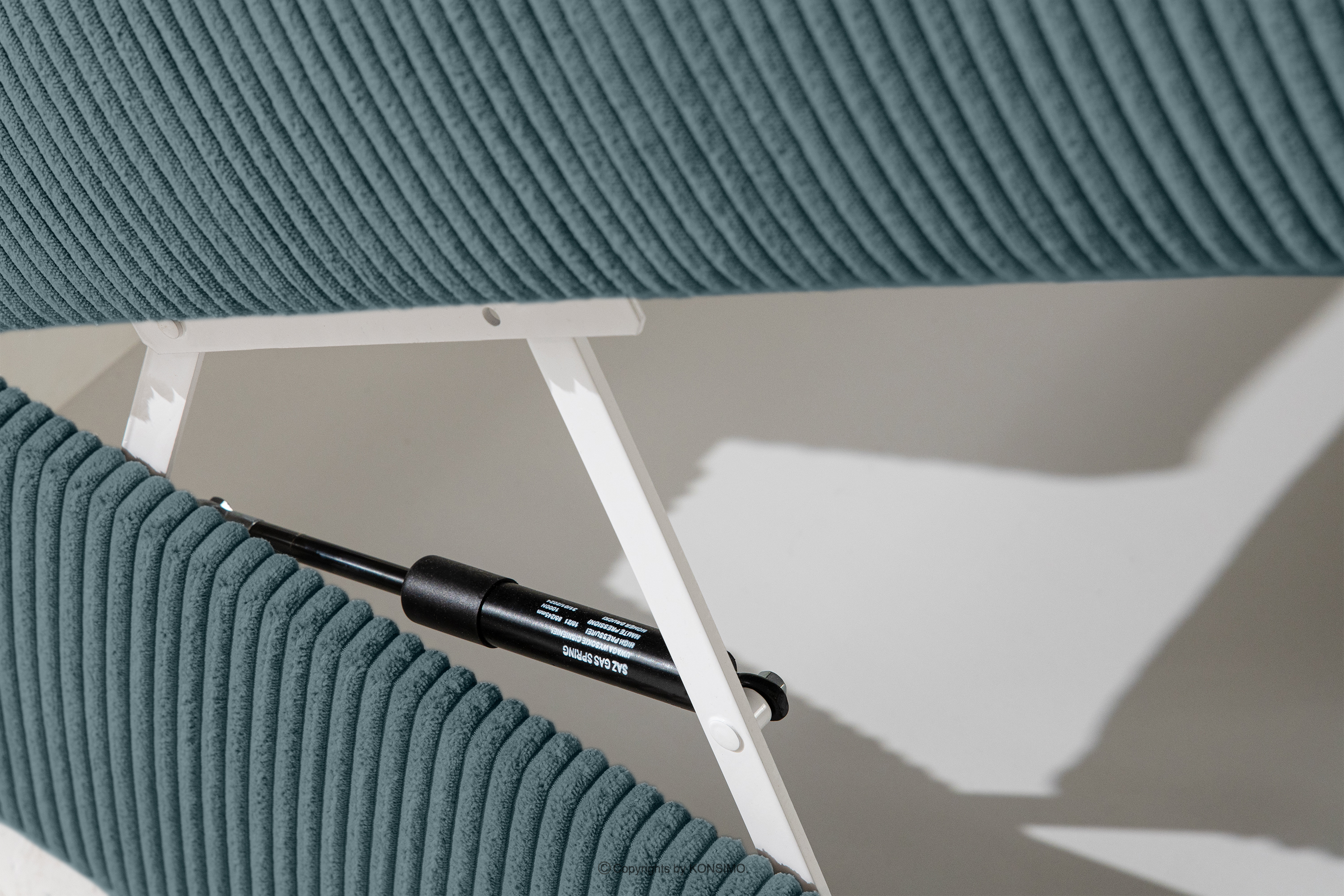 Manželská posteľ s priemerom 140 cm v manšestrovej modrej látke je dokonalou kombináciou funkčnosti, pohodlia a moderného dizajnu, ktorý dokonale ladí so štýlom súčasných interiérov. Vyrobená s dôrazom na najmenšie detaily poskytuje nielen pohodlie pri spánku, ale aj estetický vzhľad, ktorý sa stane ozdobou každej spálne. Jeho pevná konštrukcia je založená na robustnom ráme, ktorý zaručuje stabilitu a dlhú životnosť.