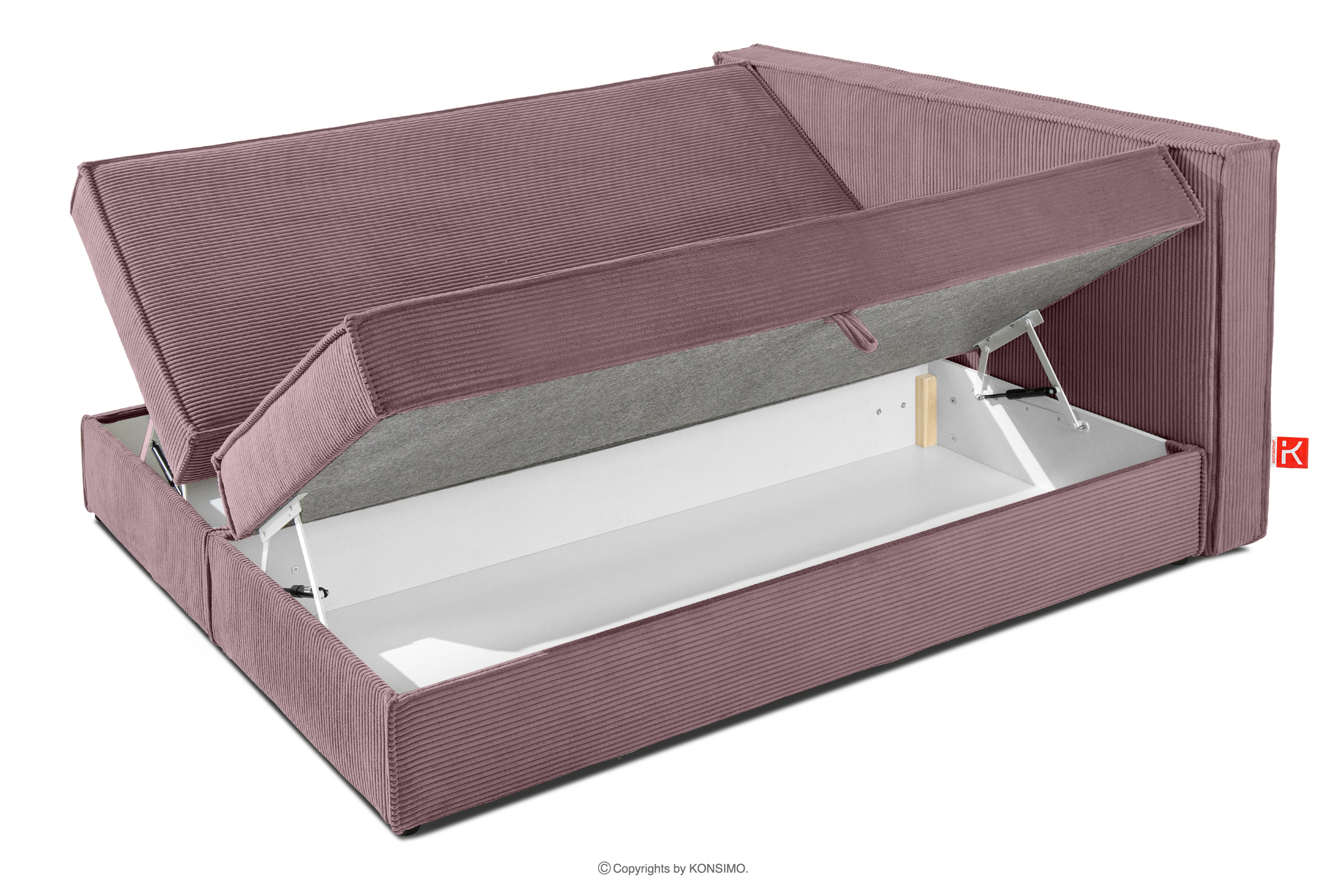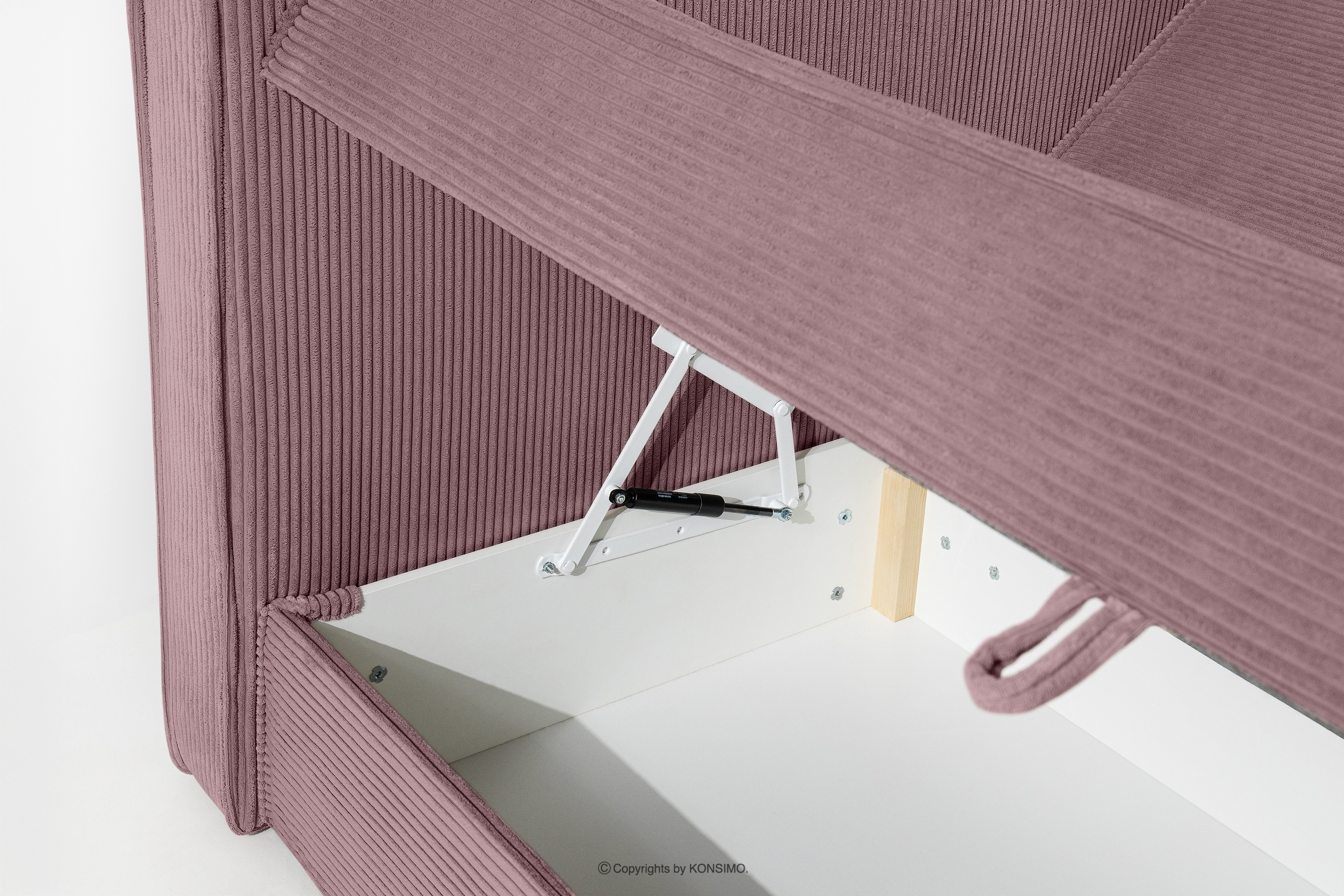 ROTI Posteľ 140 cm s truhlou na posteľnú bielizeň manšestrová látka svetlo fialová