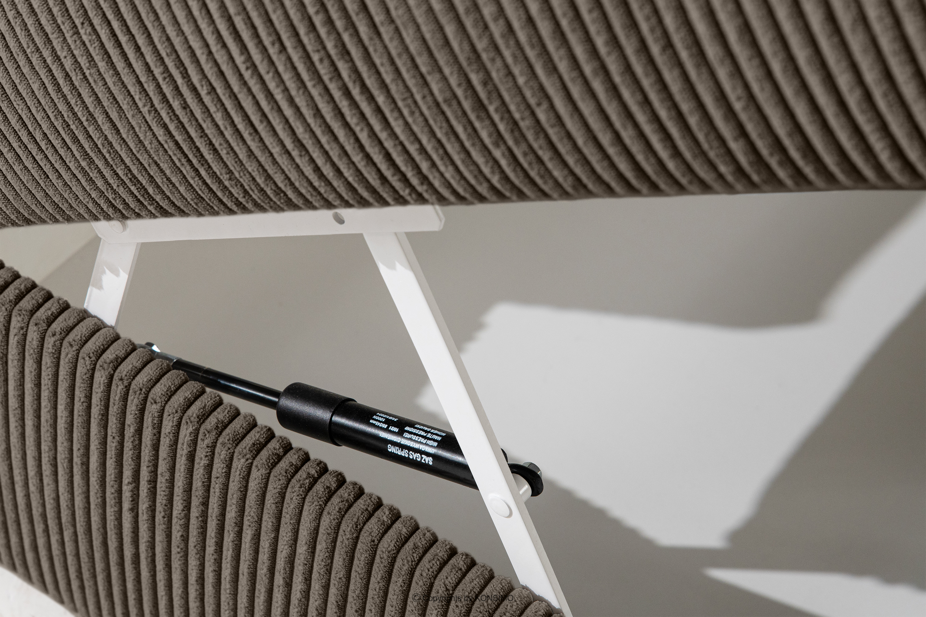 Kombinácia bonellových pružín a peny HR35 v sedáku vytvára ergonomickú a odolnú plochu na spanie, ktorá je odolná voči deformácii a poskytuje pohodlie po mnoho rokov. V sedadle je použitý aj ovat a plsť, ktoré spevňujú celú konštrukciu a zvyšujú pohodlie. Výrazným prvkom je priestranný box na lôžkoviny, ktorý je mimoriadne funkčným doplnkom tohto modelu. Umožňuje uložiť posteľnú bielizeň, prikrývky alebo vankúše, čím šetrí miesto v šatníkoch a komodách.