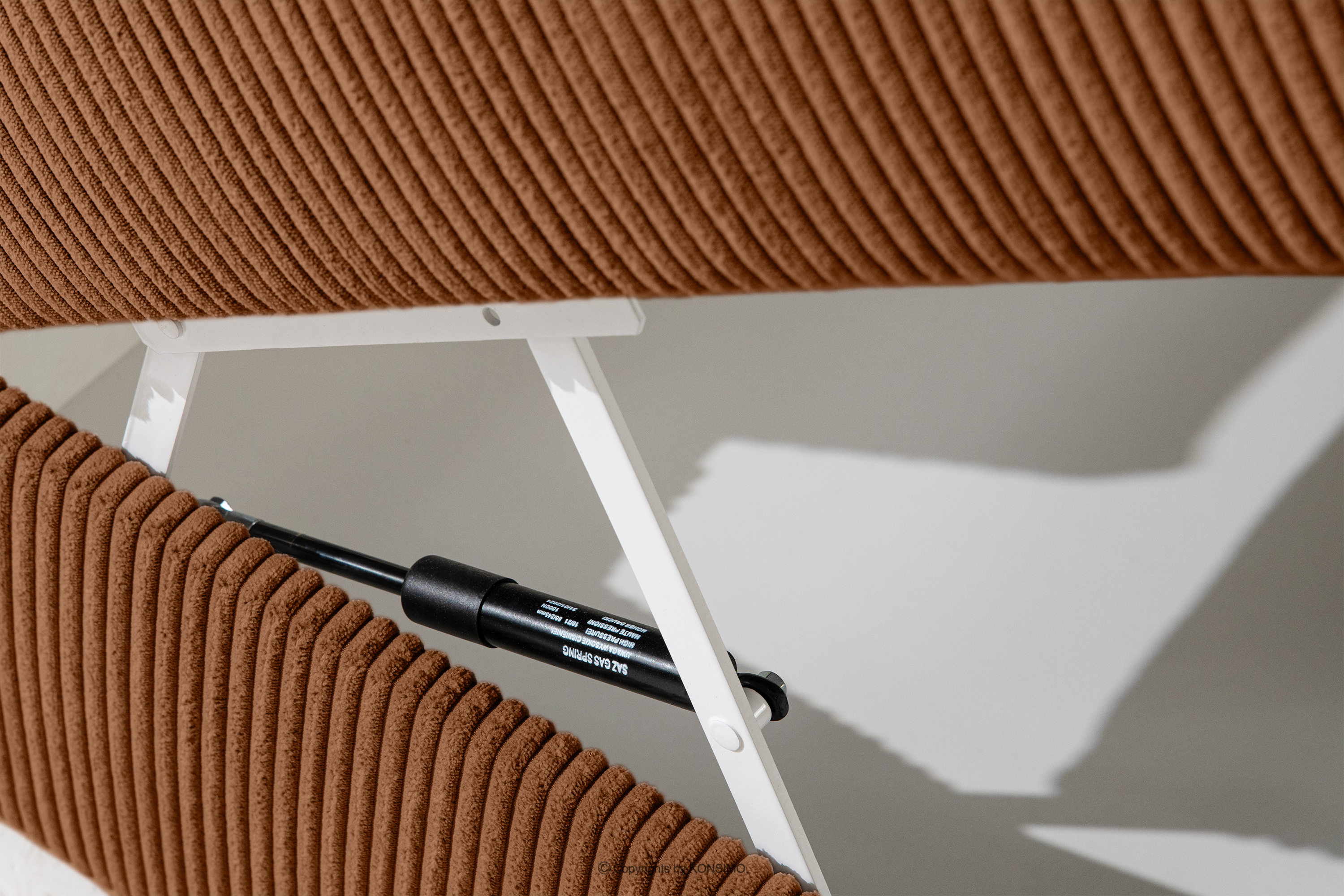 Posteľ s priemerom 160 cm s posteľnou skriňou v manšestrovej červenej látke je dokonalou kombináciou funkčnosti, pohodlia a moderného dizajnu, ktorý dokonale ladí so štýlom súčasných interiérov. Vyrobená s dôrazom na najmenšie detaily poskytuje nielen pohodlie pri spánku, ale aj estetický vzhľad, ktorý sa stane ozdobou každej spálne. Jeho pevná konštrukcia je založená na robustnom ráme, ktorý zaručuje stabilitu a dlhú životnosť.