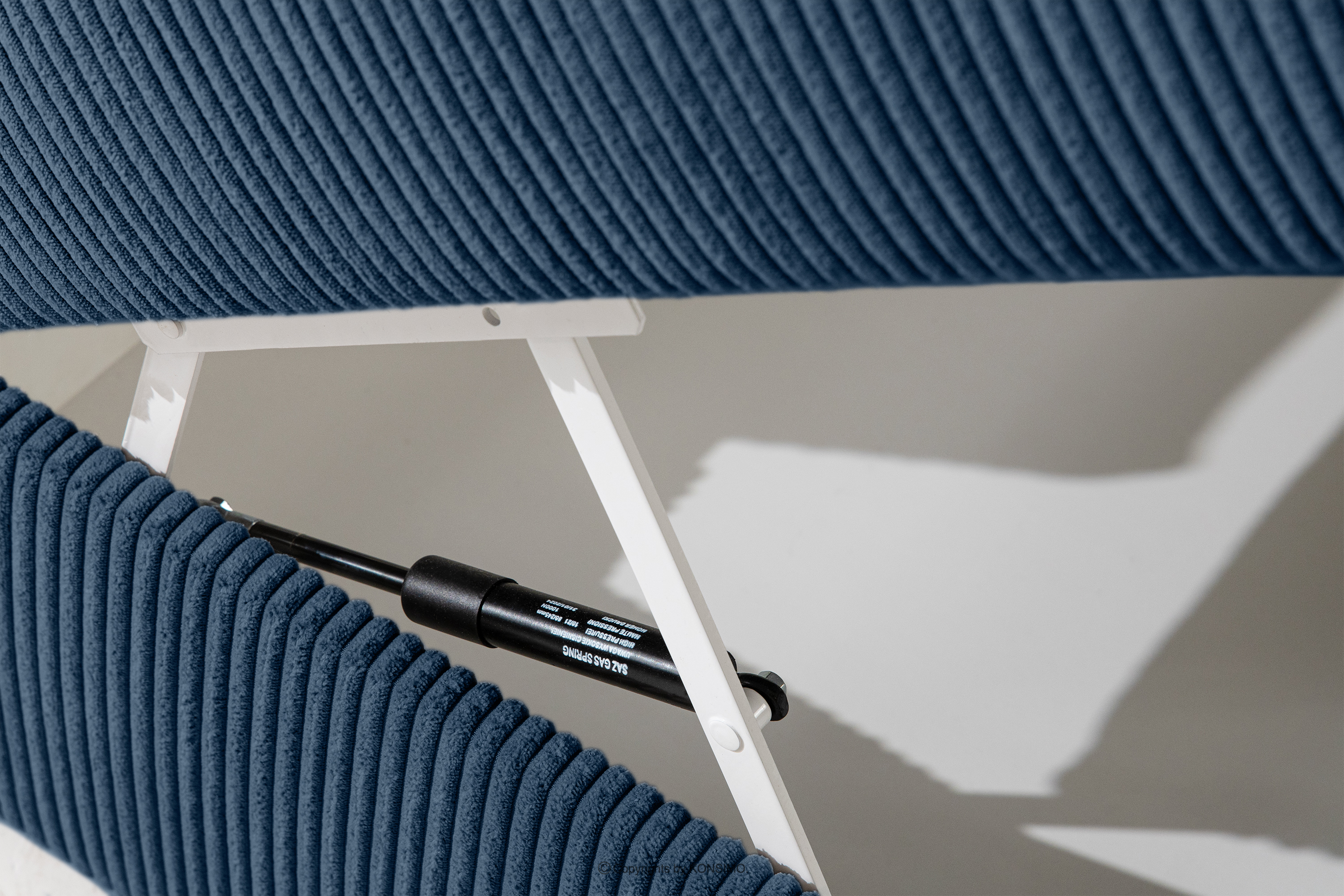 ROTI Objav celú kolekciu Posteľ 180 cm s truhlou na posteľnú bielizeň manšestrová látka tmavomodrá- farba tmavomodrá