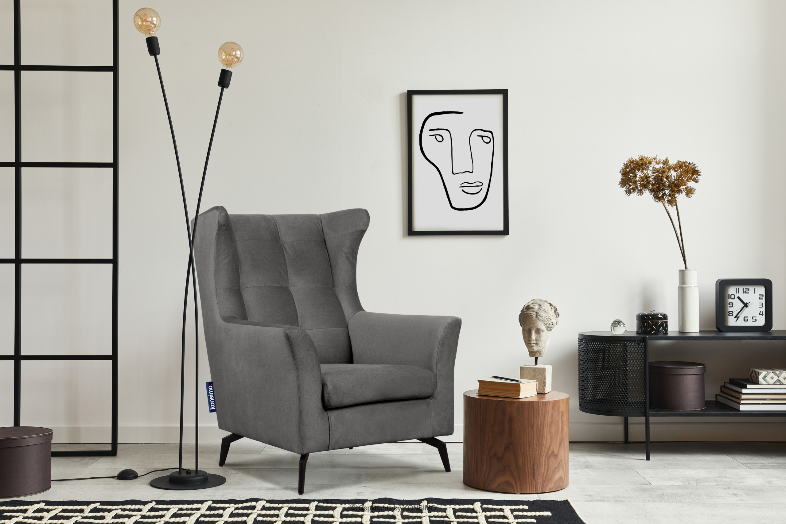 SALIS Objav celú kolekciu Pohodlné šedé kreslo ušiak na nôžkach- farba šedá