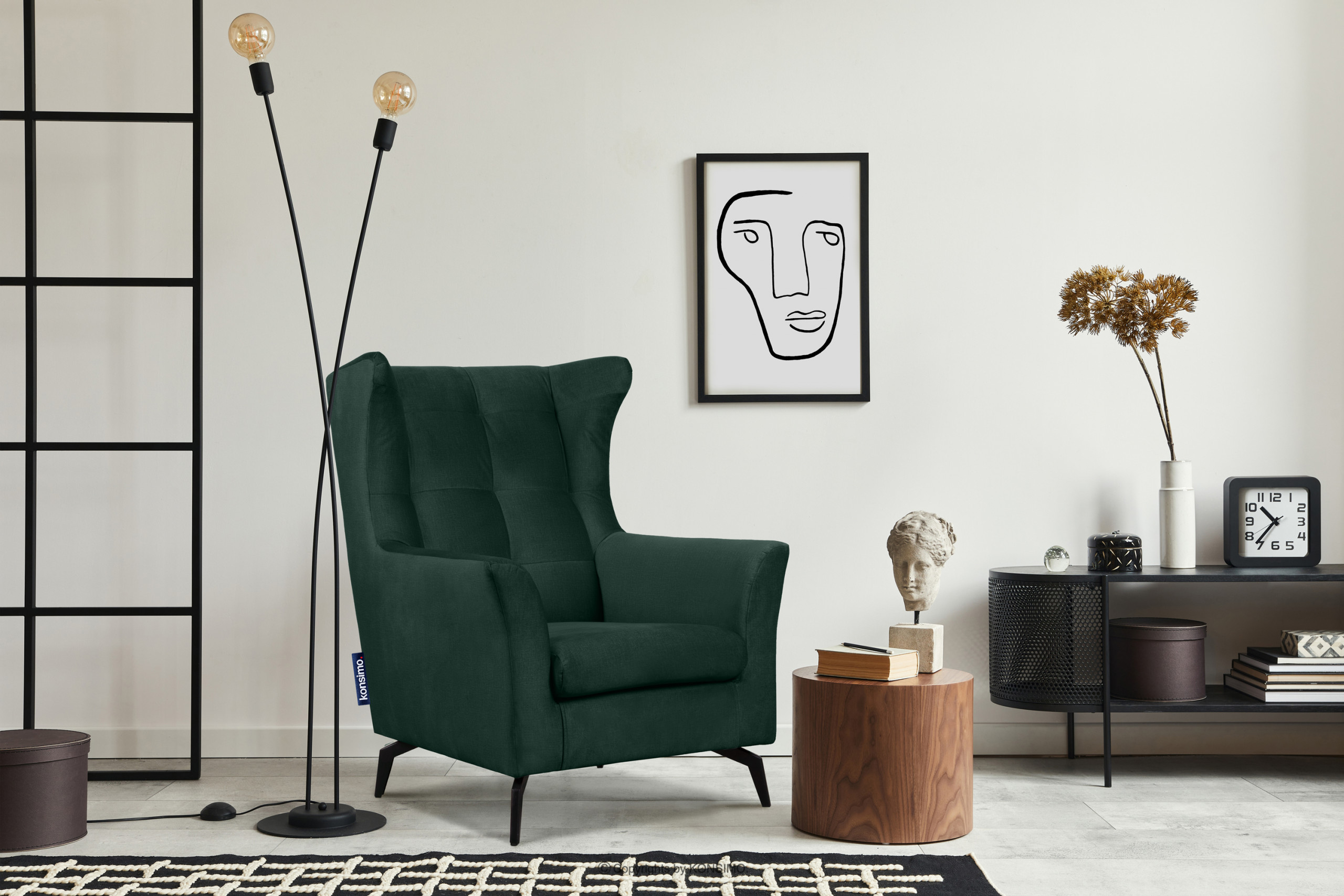 SALIS Objav celú kolekciu Pohodlné tmavo zelené kreslo ušiak na nôžkach- farba tmavozelený