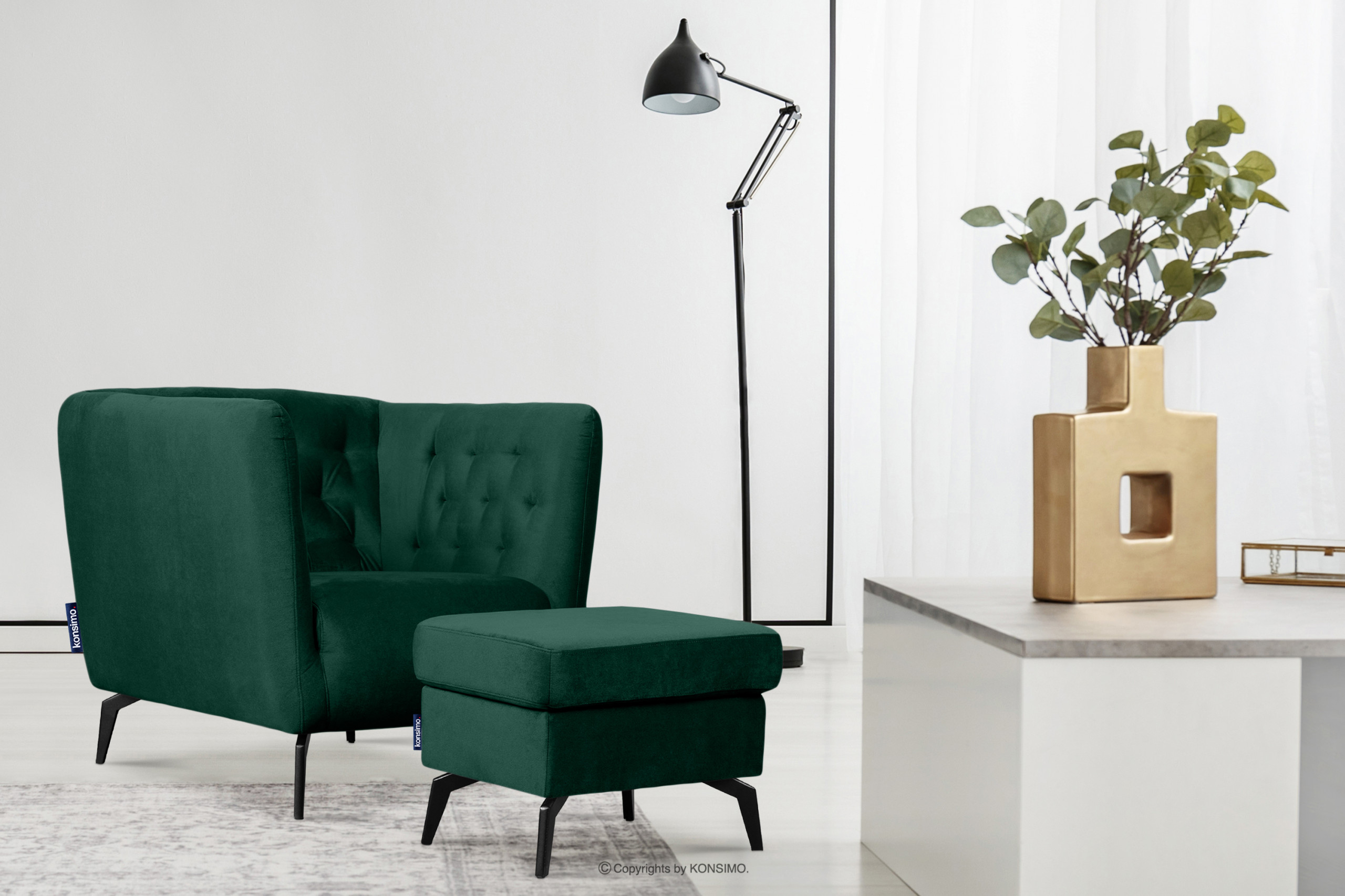CORDI Objav celú kolekciu Elegantný tmavo zelený puf na nožičkách- farba tmavozelený
