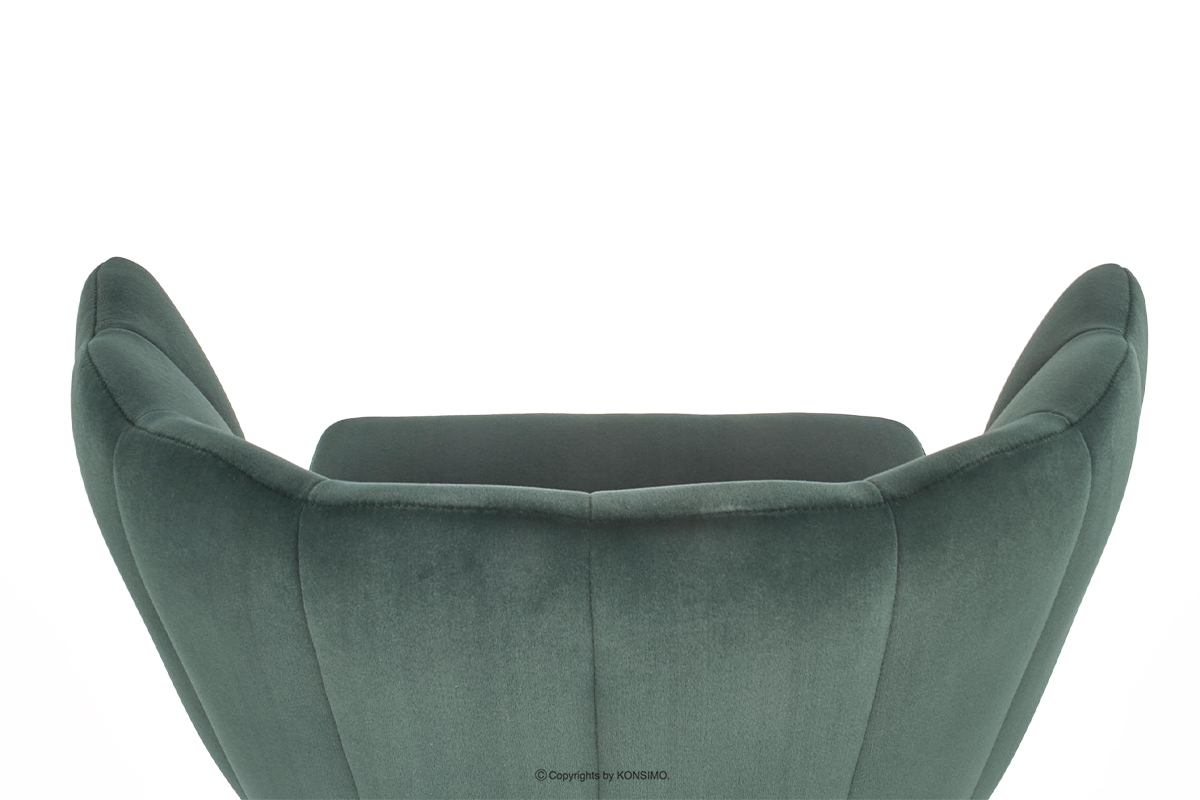 ARUM Objav celú kolekciu Čalúnená stolička v tvare mušle fľaškovo zelená- farba tmavozelený