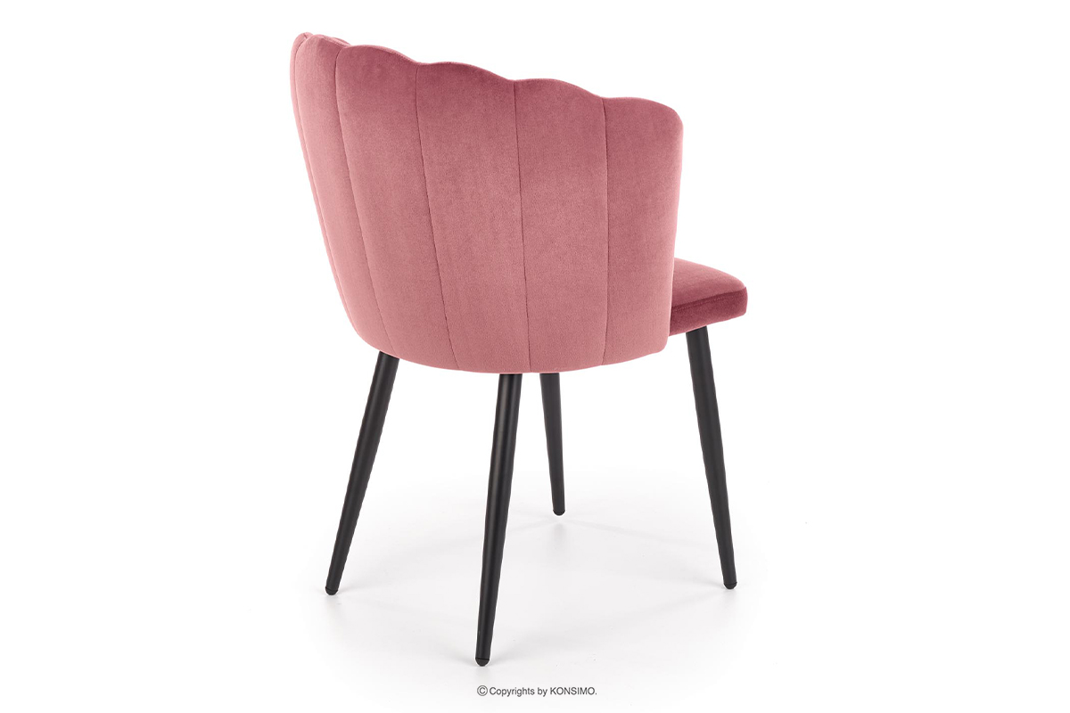 Jedinečné čalúnené kreslo s originálnym tvarom pripomínajúcim mušľu, ktoré okamžite upúta pozornosť. Moderná konštrukcia založená na tenkom kovovom ráme s práškovou povrchovou úpravou zaručuje stabilitu aj ľahký dizajnový vzhľad. Velúrové čalúnenie je mimoriadne príjemné na dotyk a ľahko sa čistí Starostlivé prešívanie nielen zdôrazňuje jedinečný tvar sedadla, ale zároveň dodáva nábytku exkluzívny charakter.
