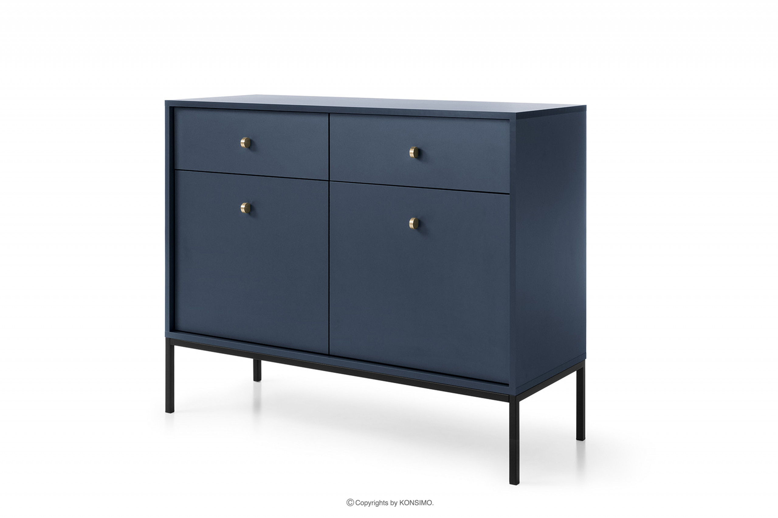 Modrá komoda do obývačky z kolekcie GEMMA je elegantný kus nábytku, ktorý dotvorí vašu izbu! Či už ju umiestnite do obývačky alebo do spálne. Jednoduchý tvar v zaujímavej farbe oživí váš interiér. Svoje miesto si nájde v glamour, moderných alebo aj vintage aranžmánoch. Komoda GEMMA má dve zásuvky a dve police, ktoré pojmú všetko, čo by ste chceli ukryť.