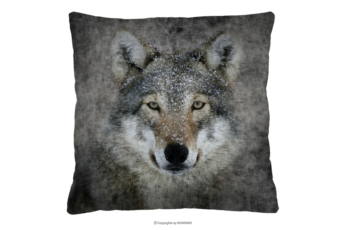AMPE Objav celú kolekciu Dekoratívny vankúš s vlkom- farba šedá