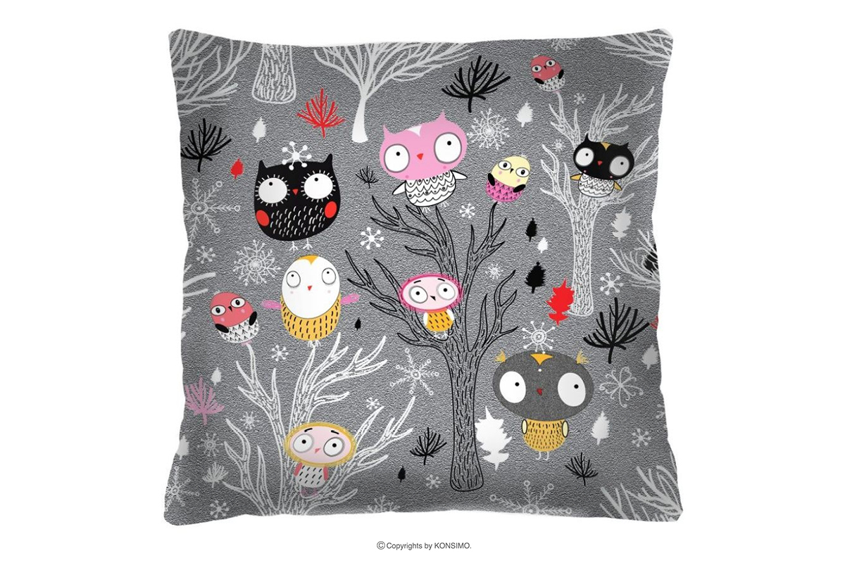 PAFIA Objav celú kolekciu Vankúš s motívom sovy 40x40- farba šedá/růžová/černá