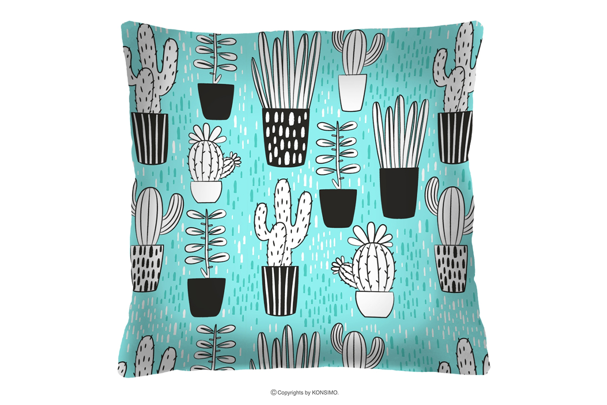 HIRTI Objav celú kolekciu Modrý vankúš s kaktusmi- farba mátová/černá/bílá