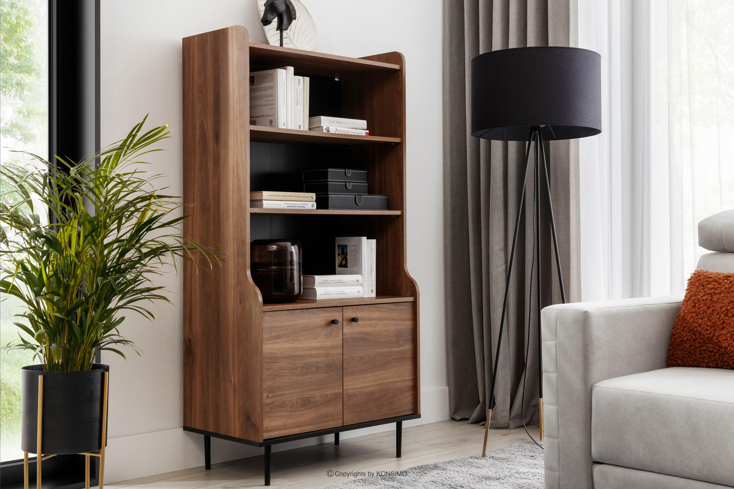 CHRISTO Objav celú kolekciu Knižnica na čiernych nohách loft- farba tmavý dub/černá