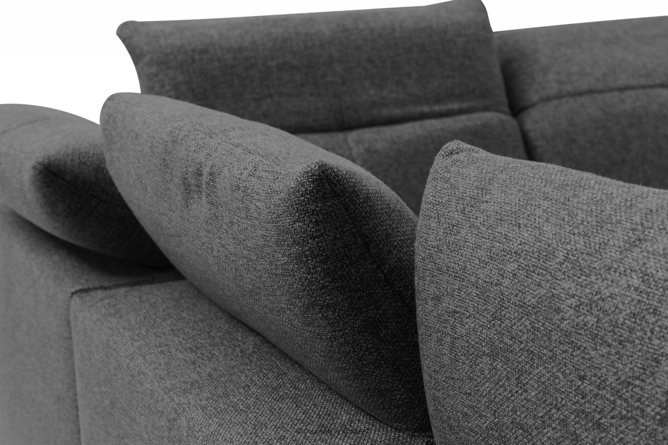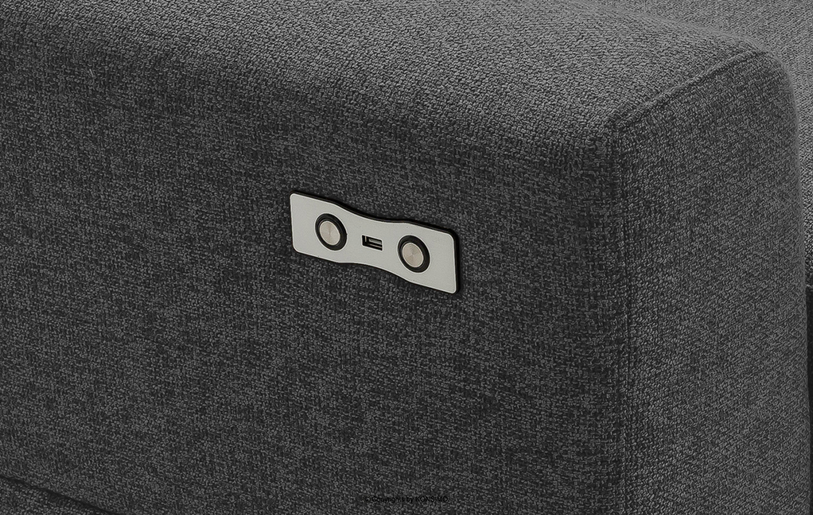 Tmavosivý pravý roh s elektrickým nastavením je ideálny do veľkých obývacích izieb. Je čalúnená kvalitnou tkanou látkou, ktorá sa vyznačuje jednoduchým čistením. Celok stojí na vysokých nožičkách v modernom štýle. Sú vyrobené z kovu a lakované čiernou farbou. Dokonale podčiarkujú modernosť rohovej sedacej súpravy. Okrem toho má funkciu relax, ktorá umožňuje elektrické nastavenie opierky hlavy v piatich rovinách a sedadla.