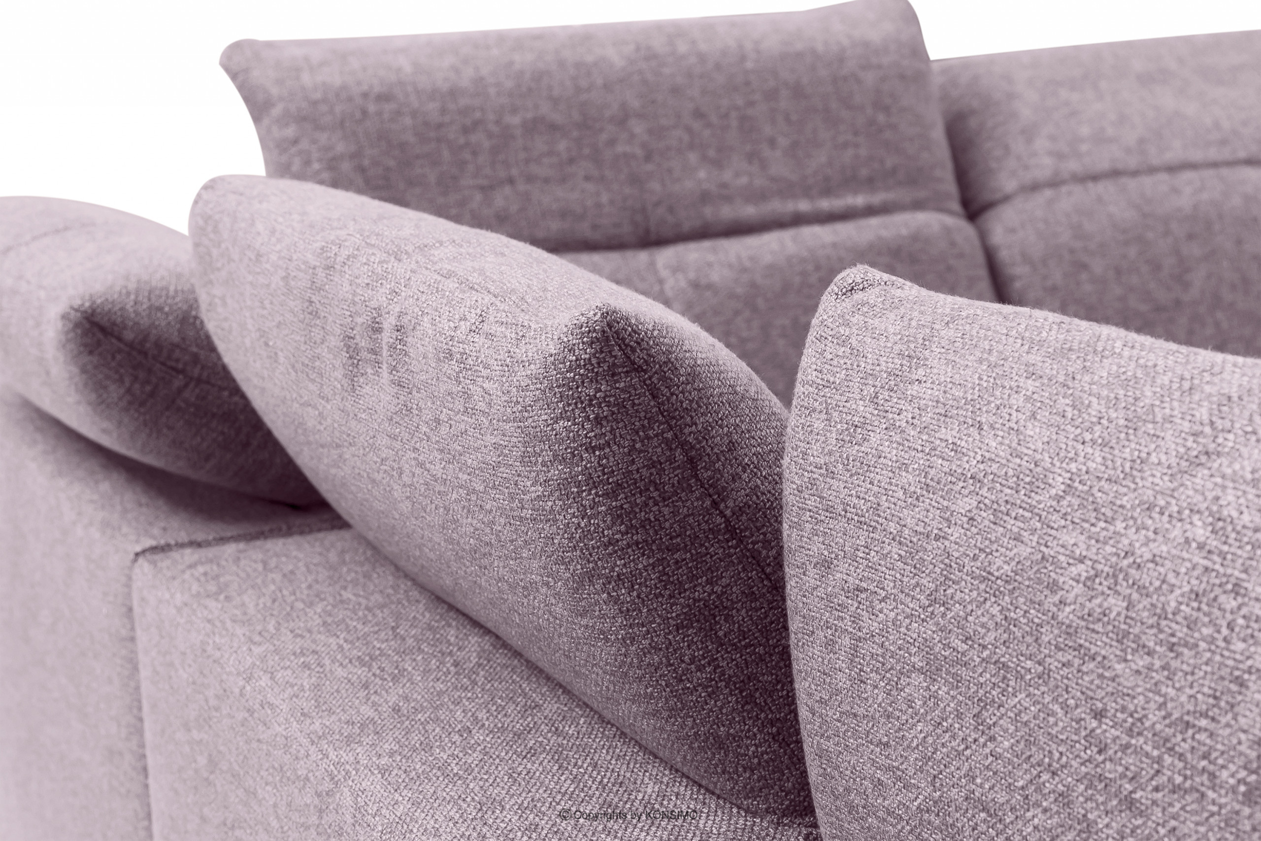 Rohová sedačka s elektrickým nastavením ružová pravá je ideálna do veľkých obývacích izieb. Je čalúnená kvalitnou tkanou látkou, ktorá sa vyznačuje jednoduchým čistením. Celá je umiestnená na vysokých nožičkách v modernom štýle. Sú vyrobené z kovu a lakované čiernou farbou. Dokonale podčiarkujú modernosť rohovej sedačky. Okrem toho má funkciu relax, ktorá umožňuje elektrické nastavenie opierky hlavy v piatich rovinách a sedadla.