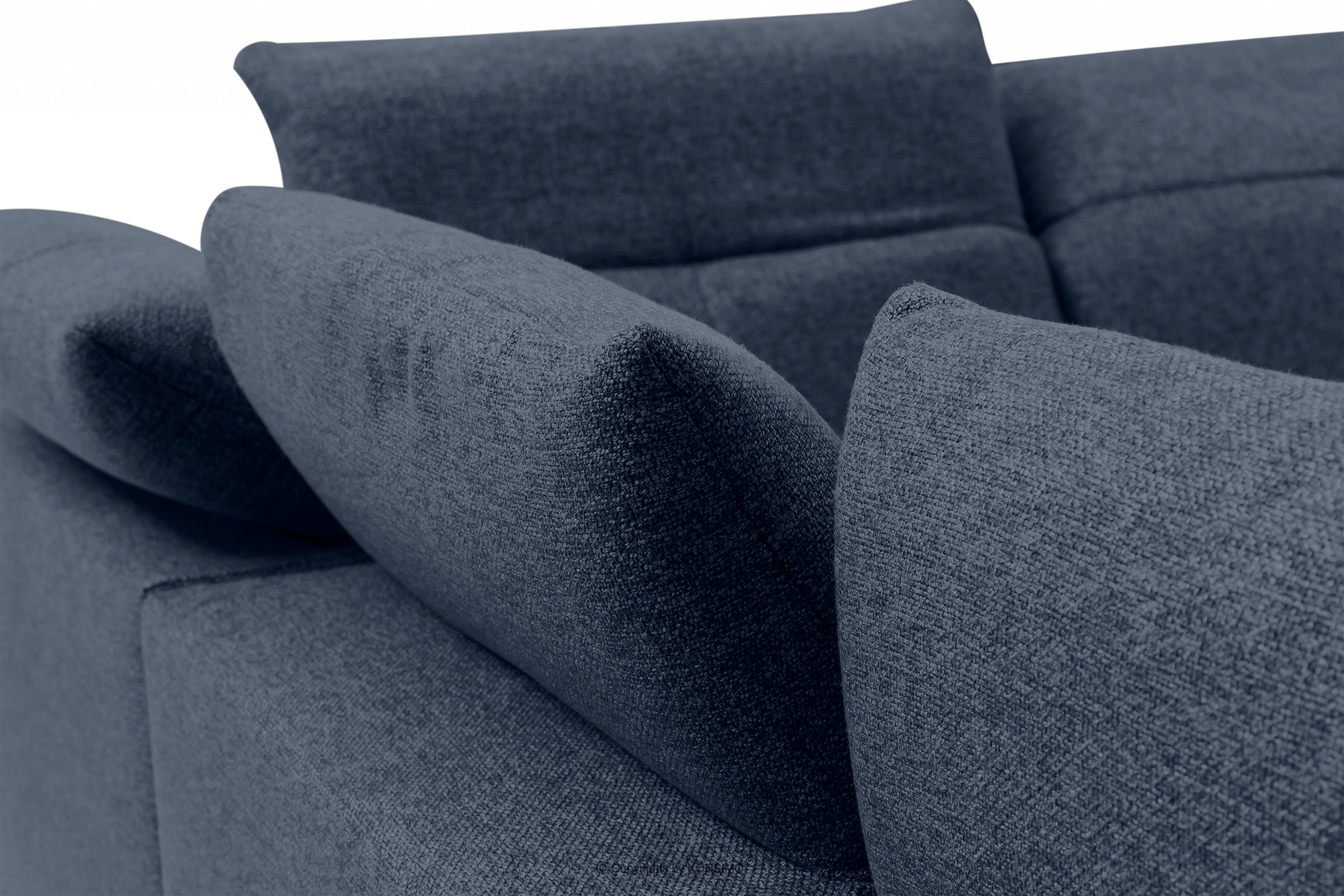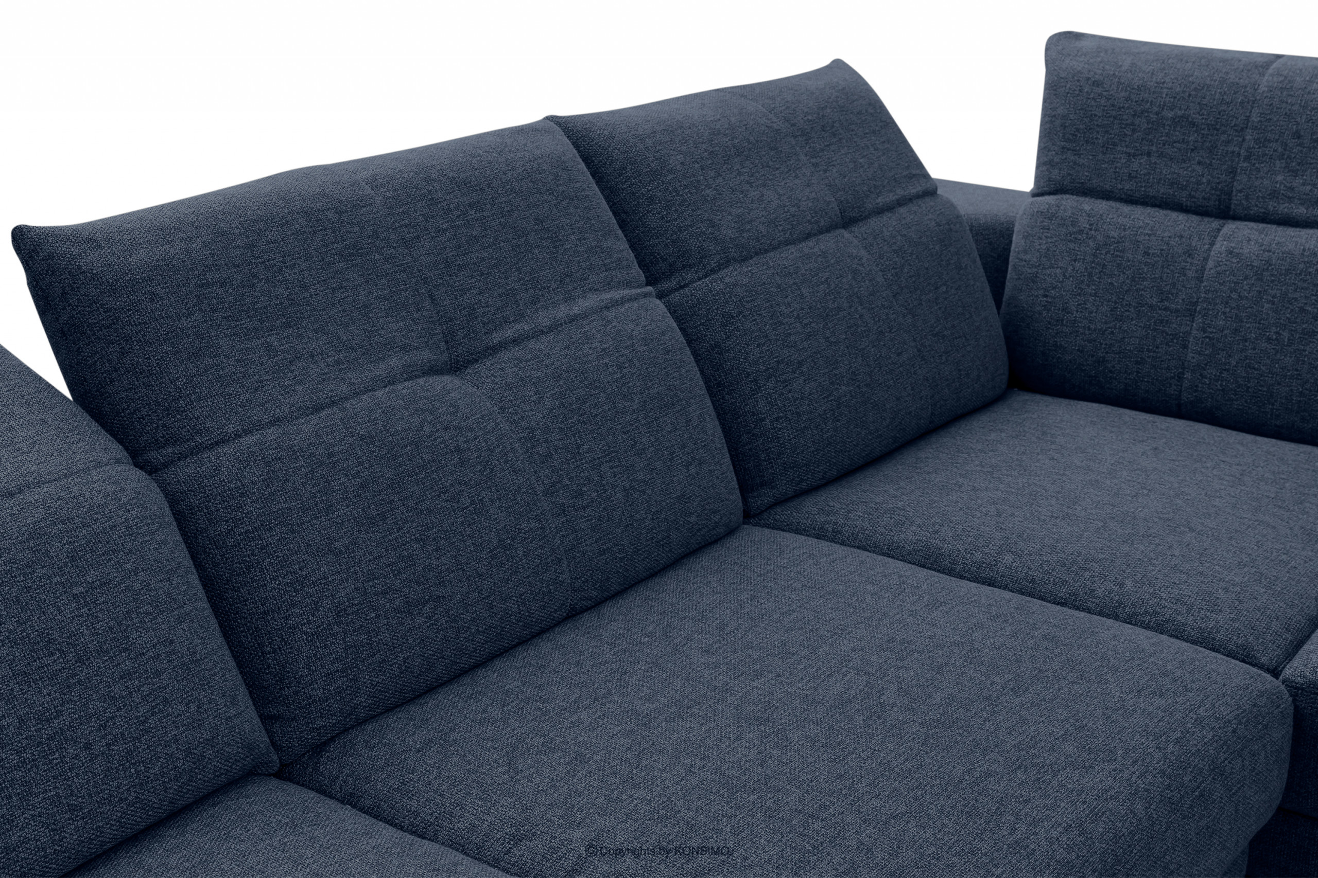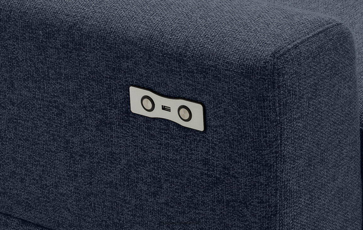Rohová sedacia súprava s elektrickým nastavením v tmavomodrej farbe vpravo je ideálna do veľkých obývacích izieb. Je čalúnená kvalitnou tkanou látkou, ktorá sa vyznačuje jednoduchým čistením. Celá je umiestnená na vysokých nožičkách v modernom štýle. Sú vyrobené z kovu a lakované čiernou farbou. Dokonale podčiarkujú modernosť rohovej sedačky. Okrem toho má funkciu relax, ktorá umožňuje elektrické nastavenie opierky hlavy v piatich rovinách a sedadla.
