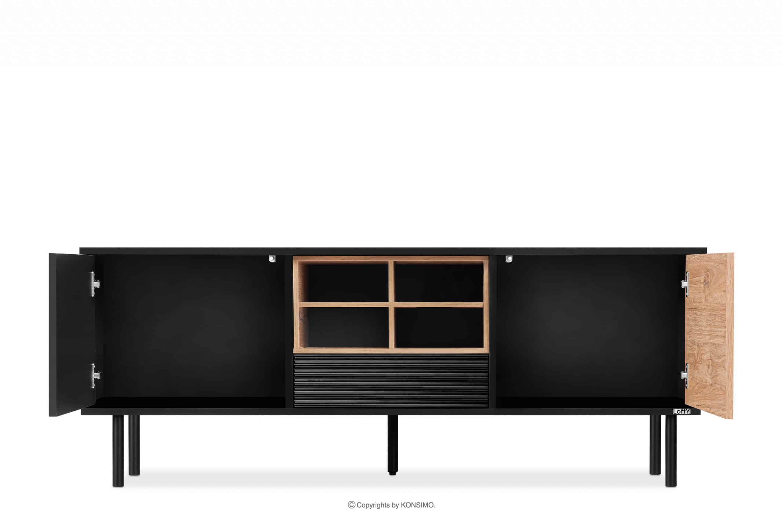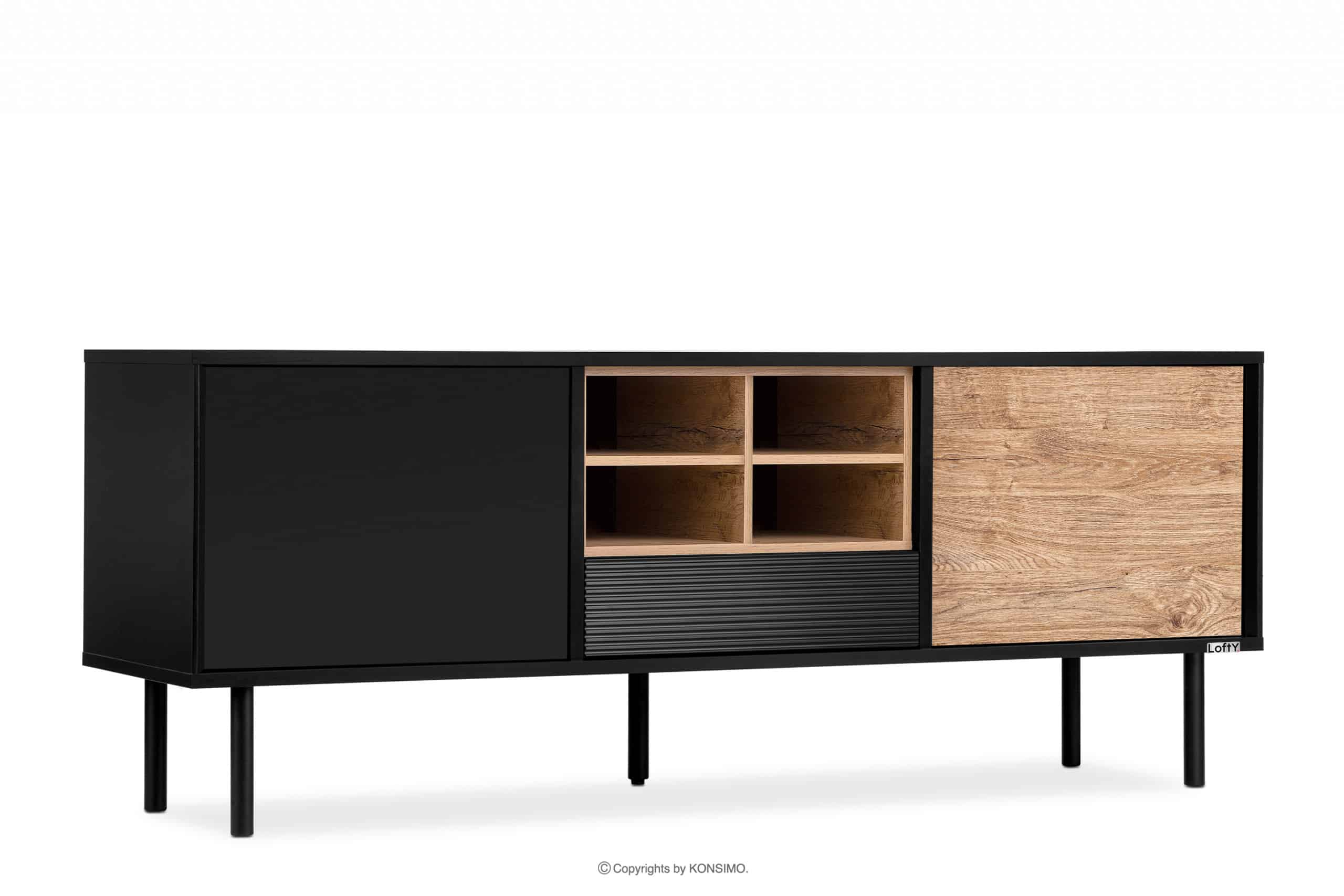 LOFTY Objav celú kolekciu Loft široká TV skrinka s poličkami- farba černý/přírodní dub