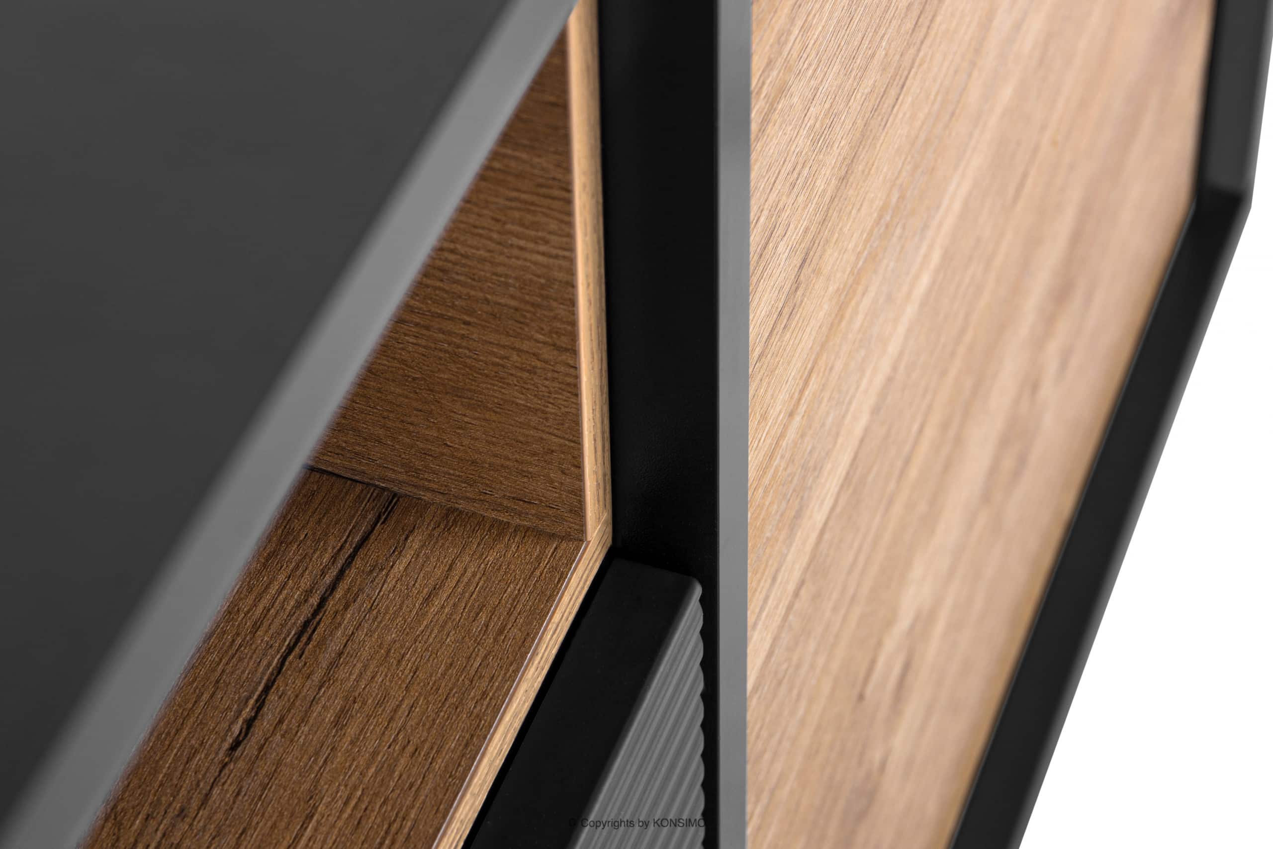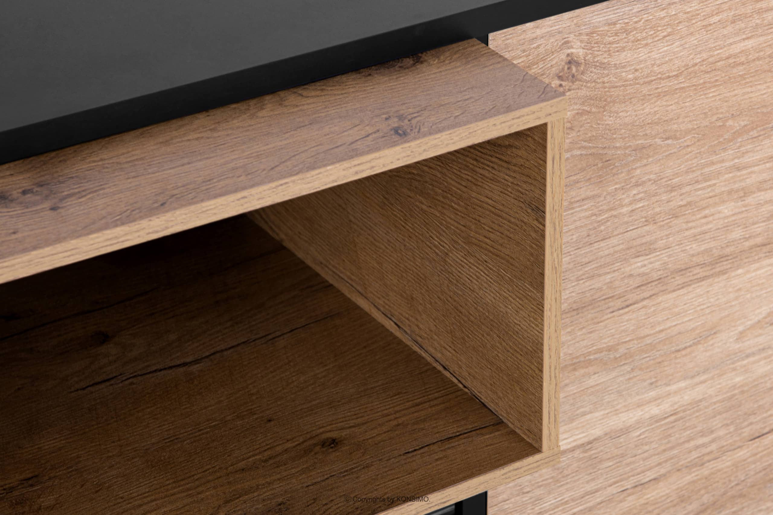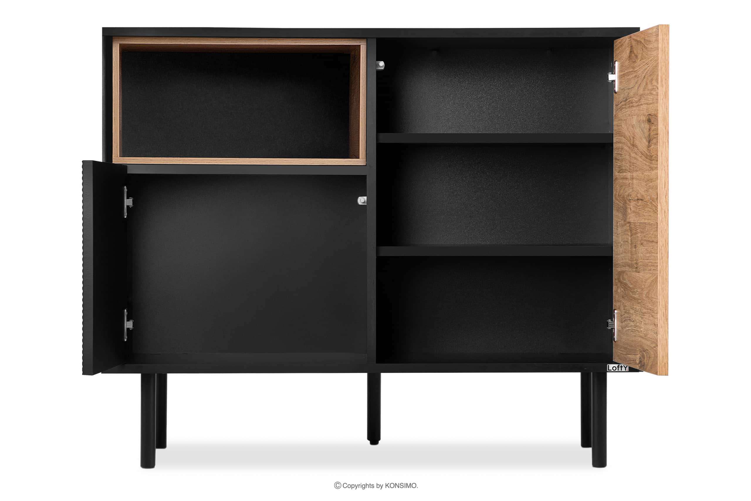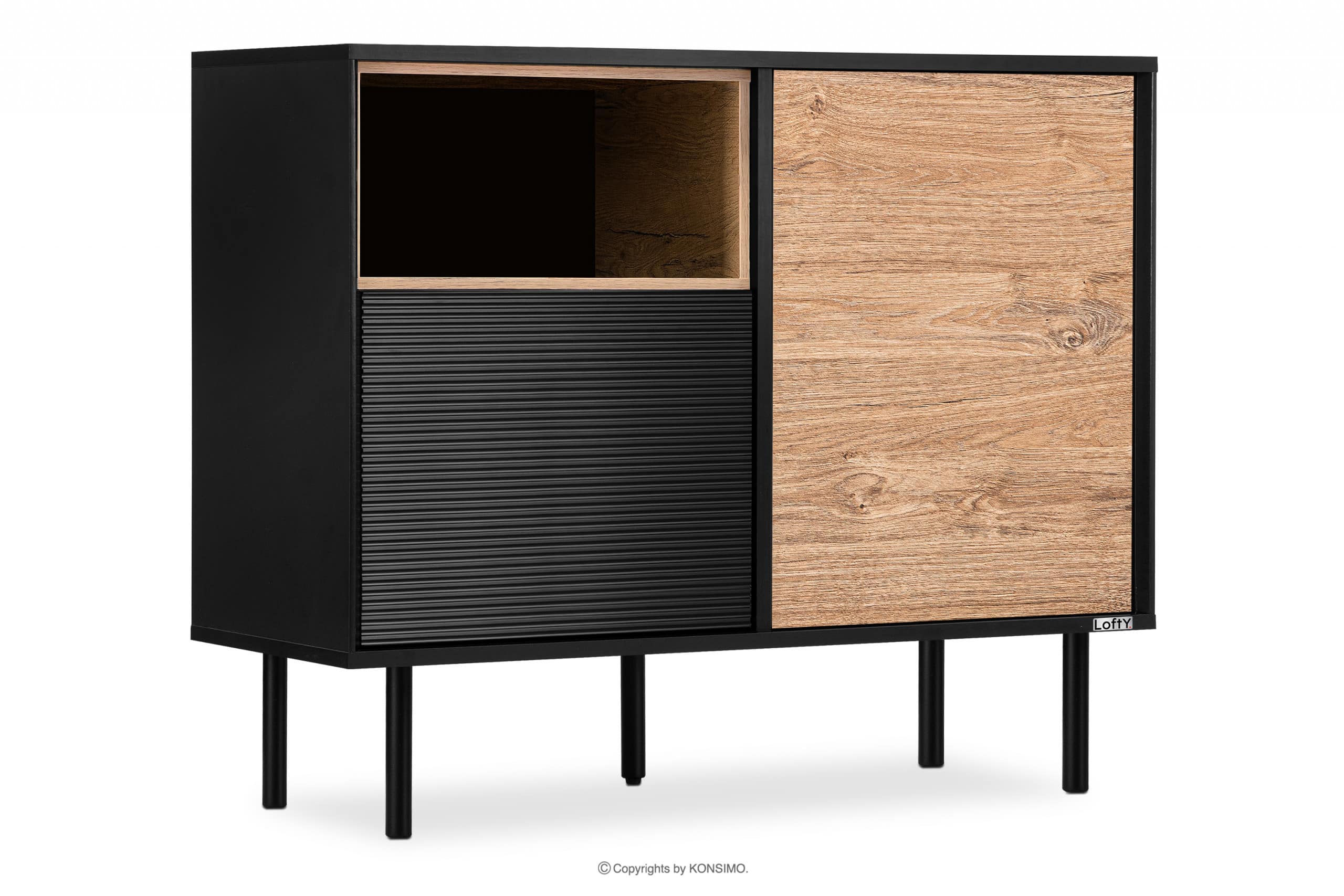 Loft komoda na vysokých drevených nožičkách LOFTY - farba černý/přírodní dub
