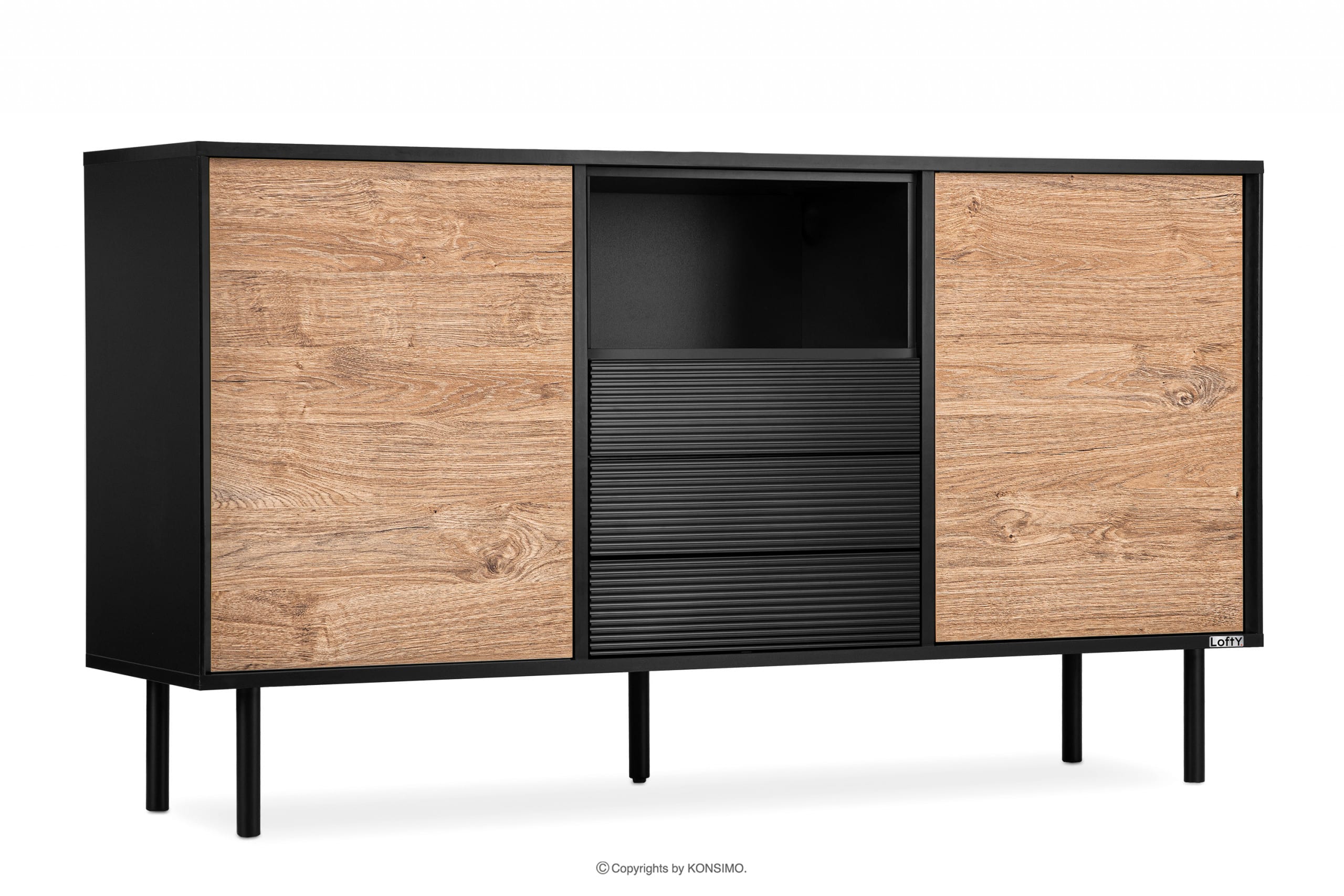 LOFTY Objav celú kolekciu Komoda so zásuvkami a skrinkami v štýle loft- farba černý/přírodní dub