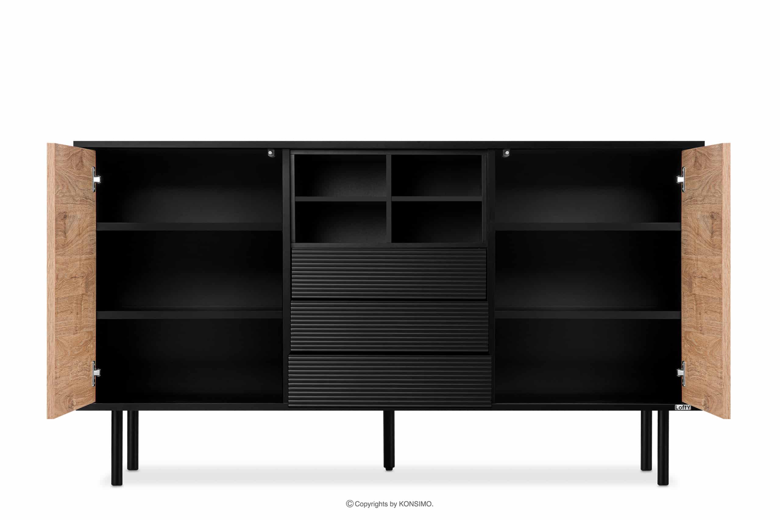 LOFTY Objav celú kolekciu Komoda čiernym drážkovaním prírodný dub- farba černý/přírodní dub