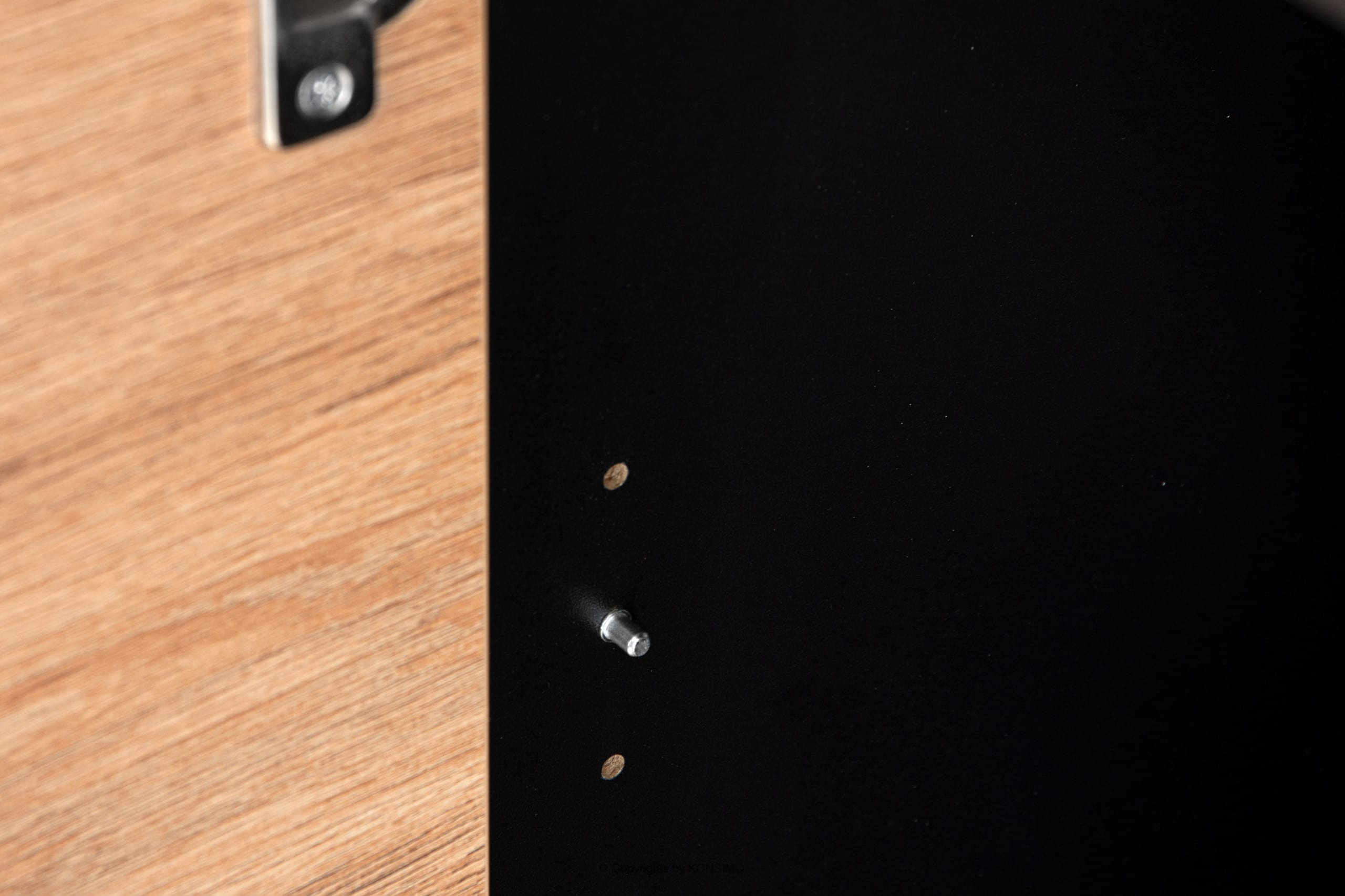 Prírodná dubová komoda s čiernymi drážkami bola vytvorená pre používateľov, ktorí ocenia detaily a vysokú kvalitu spracovania. Zmestí sa do nej množstvo praktických predmetov, ako sú dokumenty, oblečenie alebo knihy. Má dve veľké skrinky, tri zásuvky a police. Systém otvárania dvierok je push-open, vďaka čomu si komoda zachováva elegantný vzhľad bez zbytočných ozdôb.