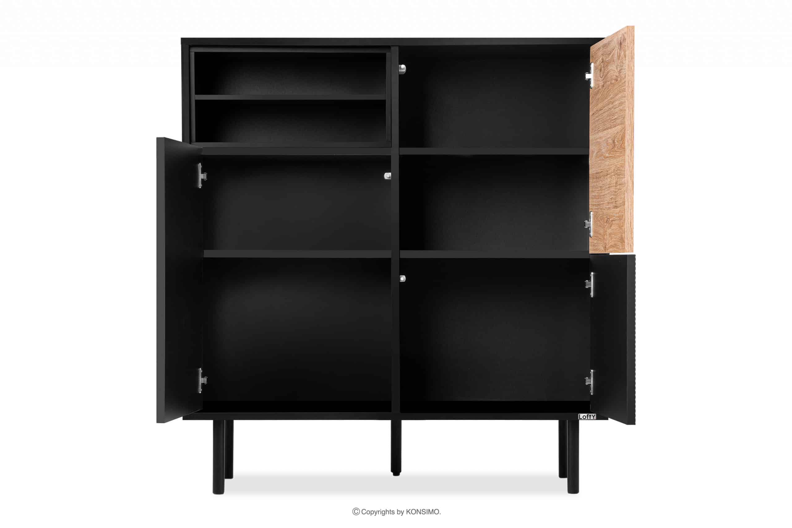 LOFTY Objav celú kolekciu Komoda v štýle loft na vysokých nožičkách- farba černý/přírodní dub