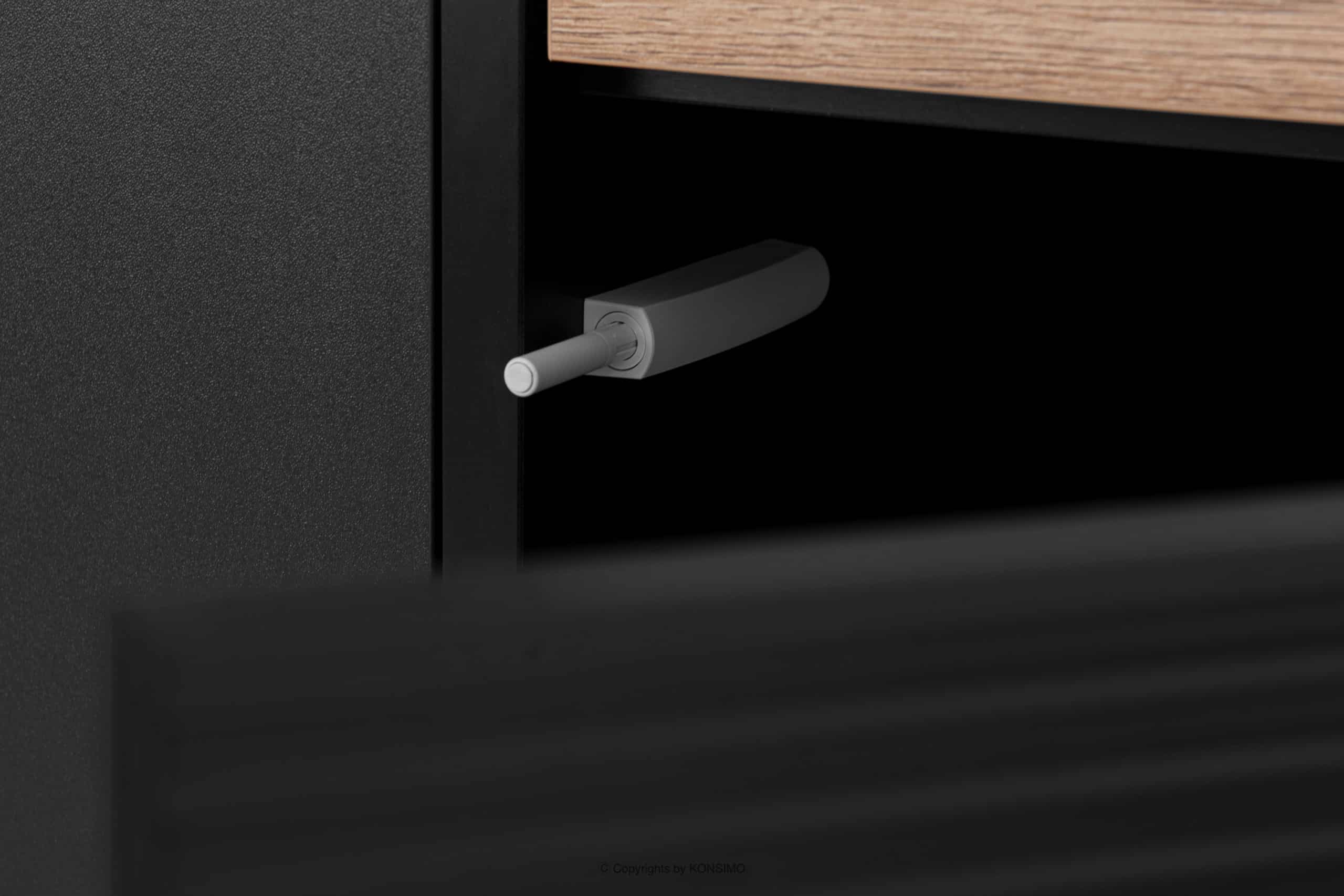 Komoda v loftovom štýle na vysokých nohách bola navrhnutá s veľkou starostlivosťou a dôrazom na detail. Vďaka svojmu dizajnu pojme mnoho predmetov každodennej potreby, ako je oblečenie, dokumenty alebo knihy. Má tri veľké skrinky a police. Vďaka systému otvárania dvierok push-to-open si komoda zachováva elegantný vzhľad bez toho, aby bola príliš zdobená.