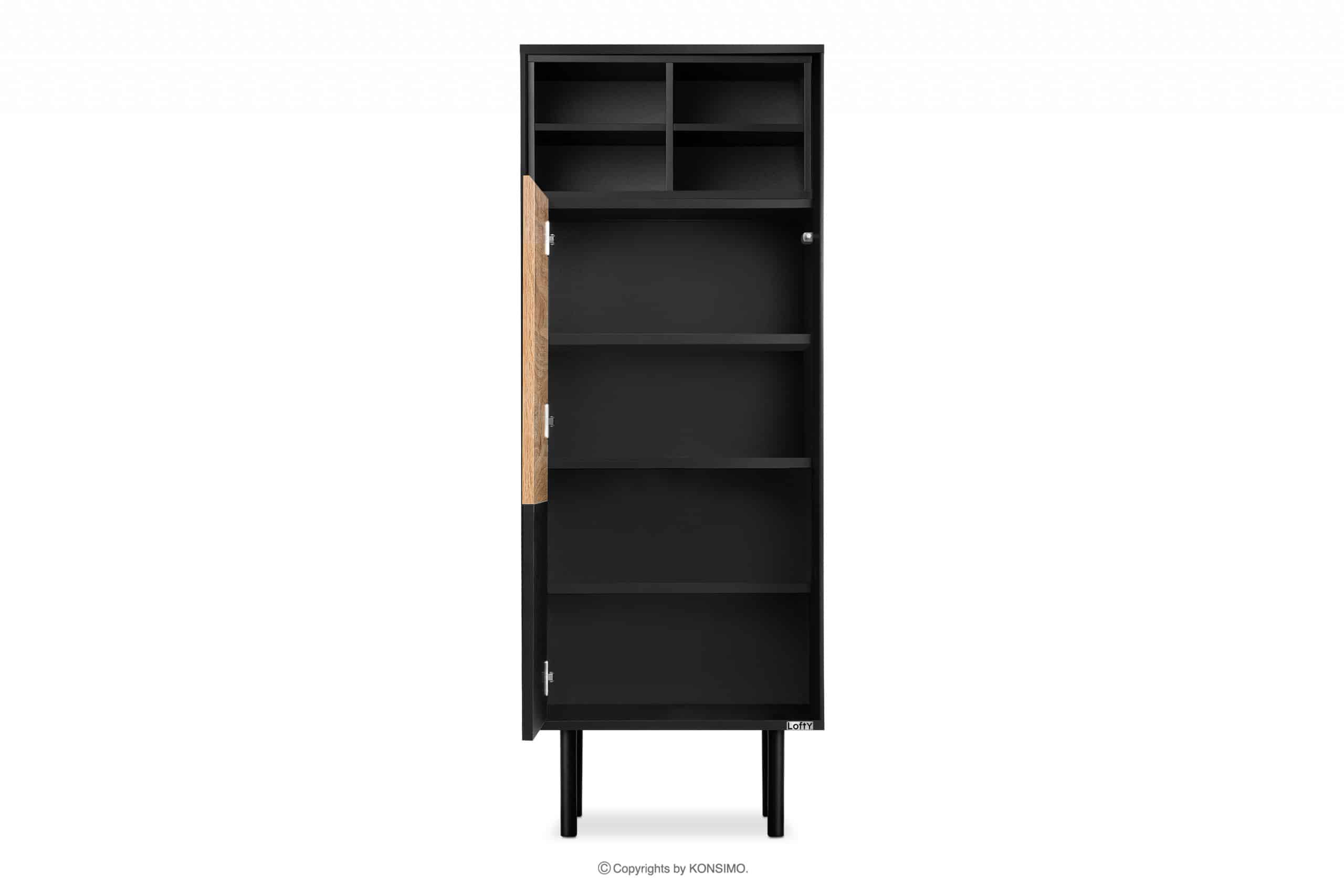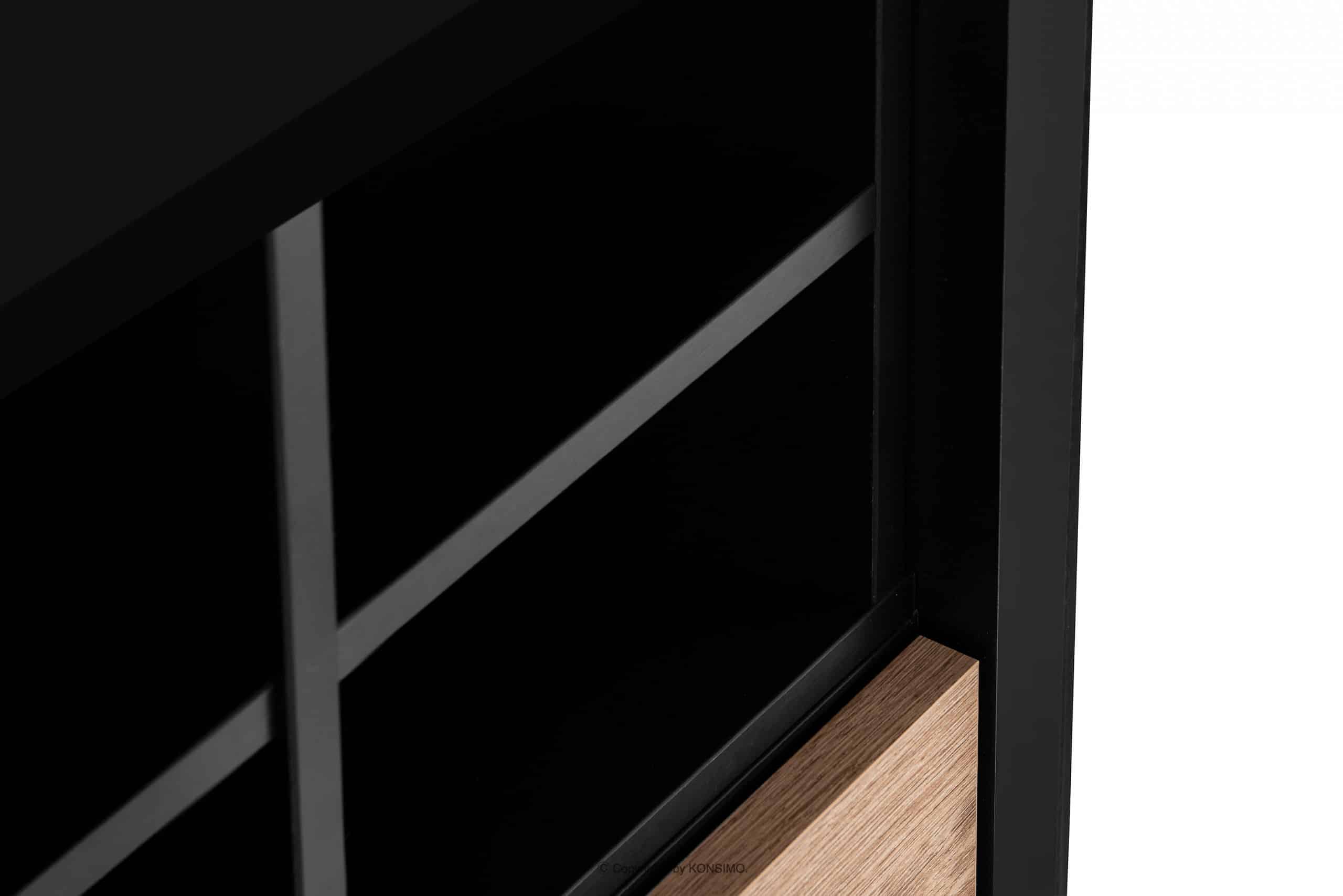 Knižnica v štýle loftu s policami bola vyrobená tak, aby bola zaručená vysoká kvalita a odolnosť na dlhé roky. Má veľa políc za dvierkami na odkladanie predmetov dennej potreby. Nábytok je vhodný do moderných interiérov pripomínajúcich loftový štýl a vďaka neutrálnym farbám sa hodí k mnohým farbám stien a podláh. Dvierka majú systém otvárania push-to-open pre jednoduché používanie a hladký vzhľad nábytku.