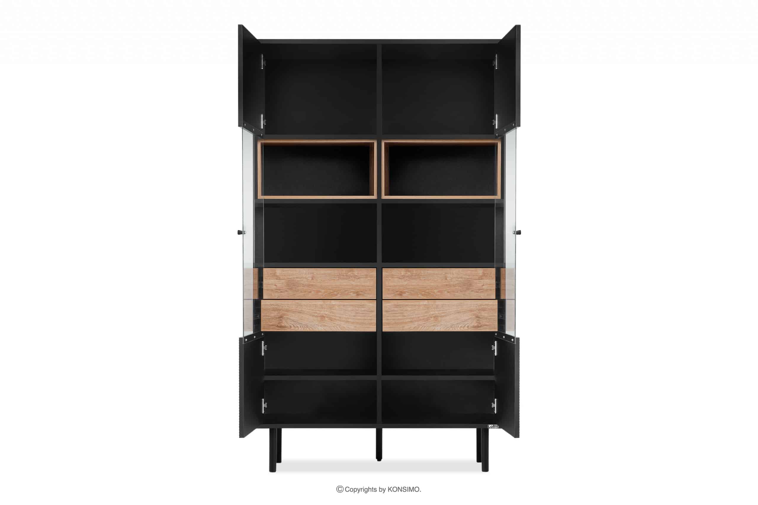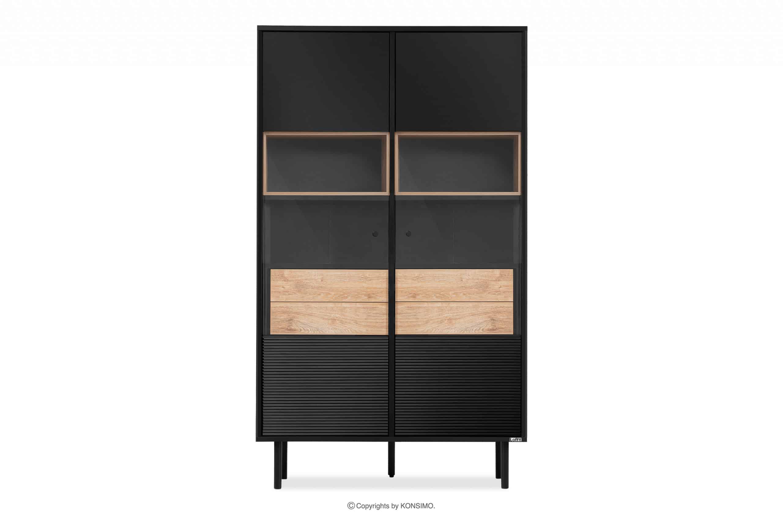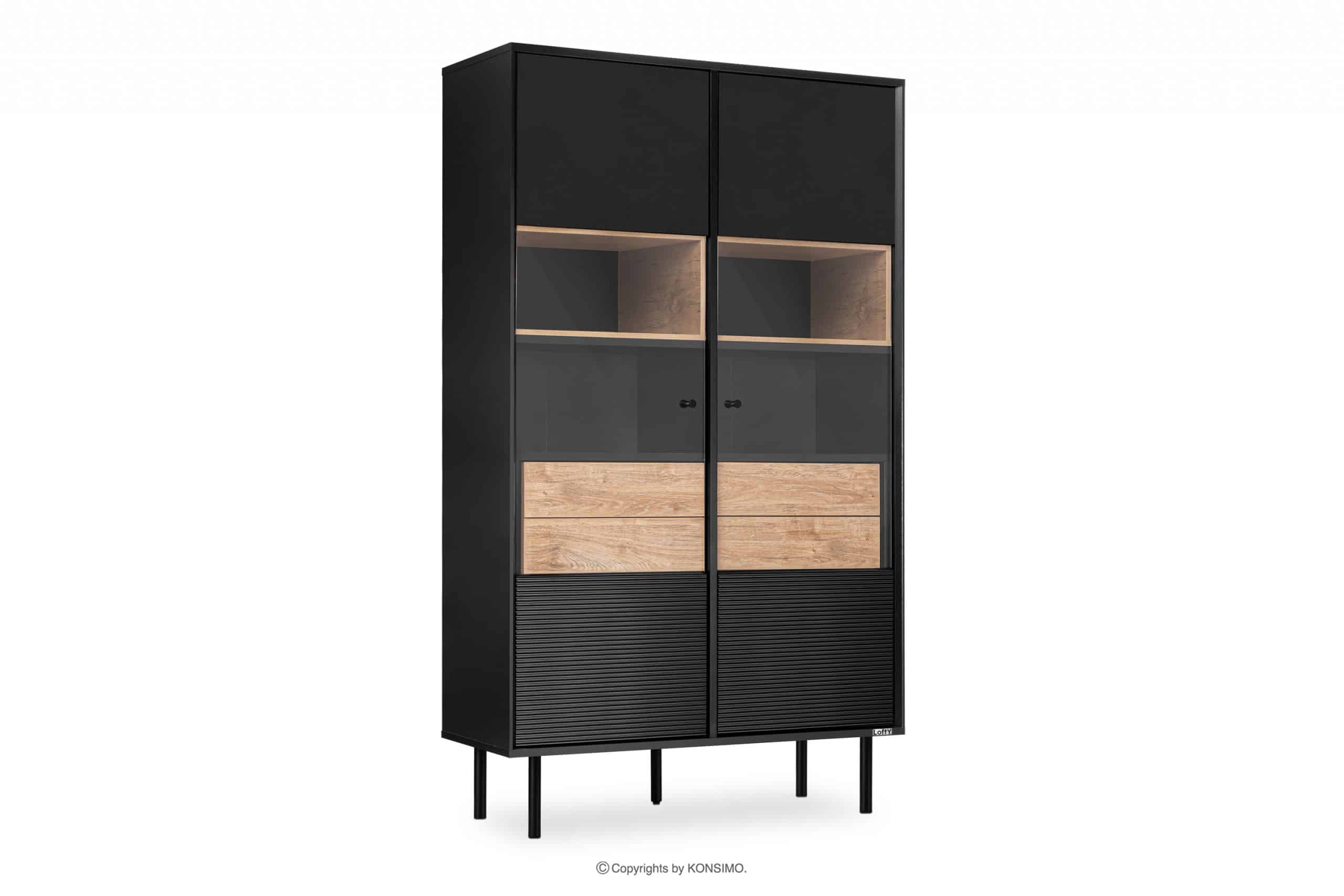 LOFTY Objav celú kolekciu Dvojdverová vitrína v loftovom štýle na vysokých nohách- farba černý/přírodní dub