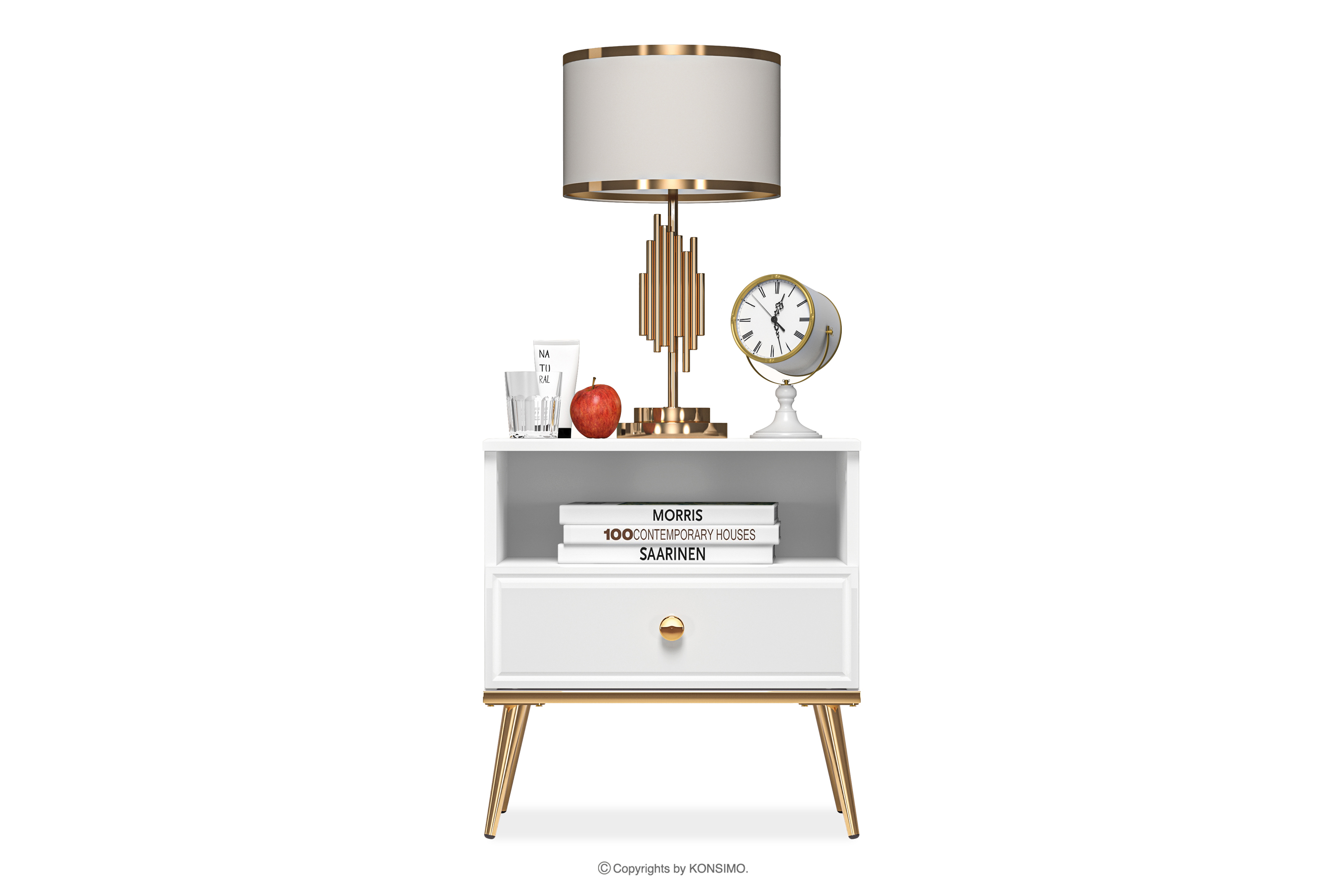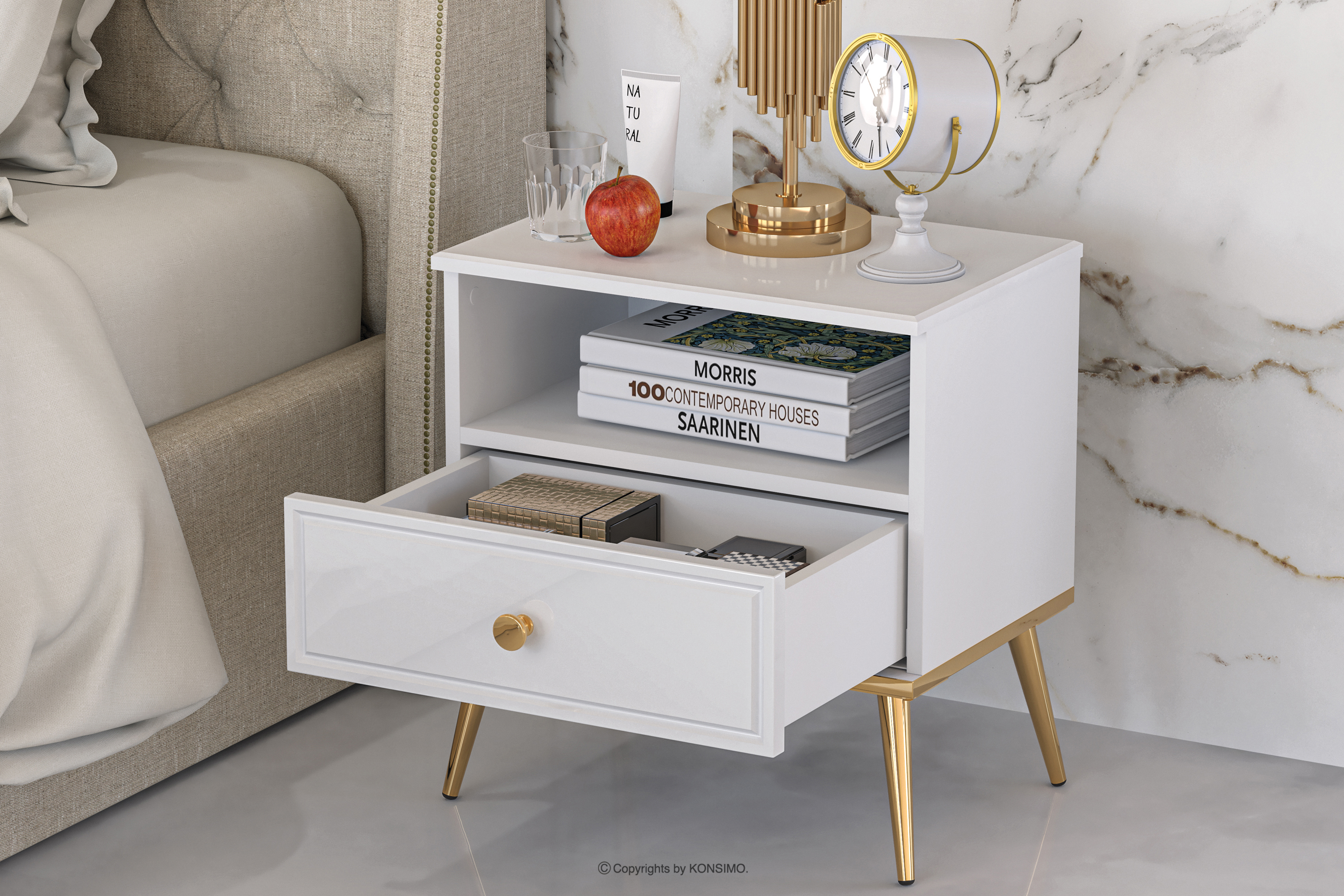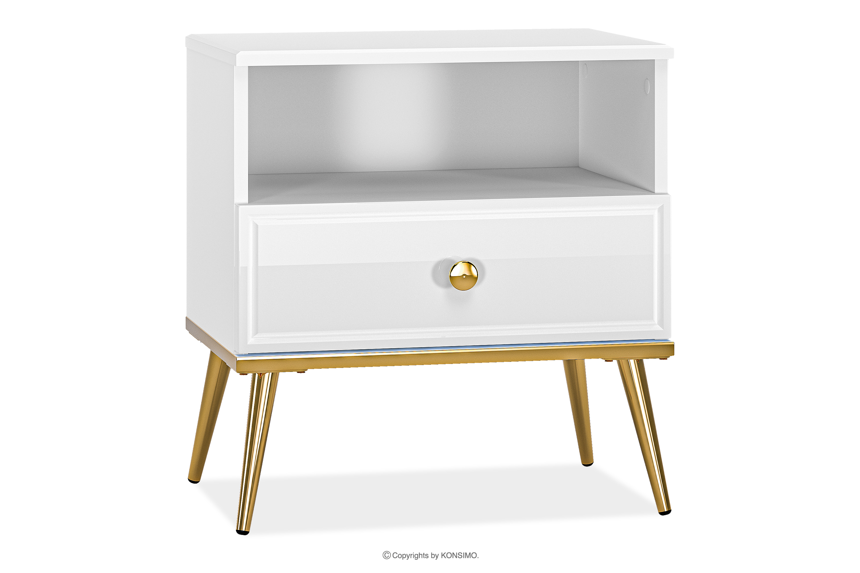 Elegantný lesklý nočný stolík na vysokých nohách ISORIA - farba biely lesk