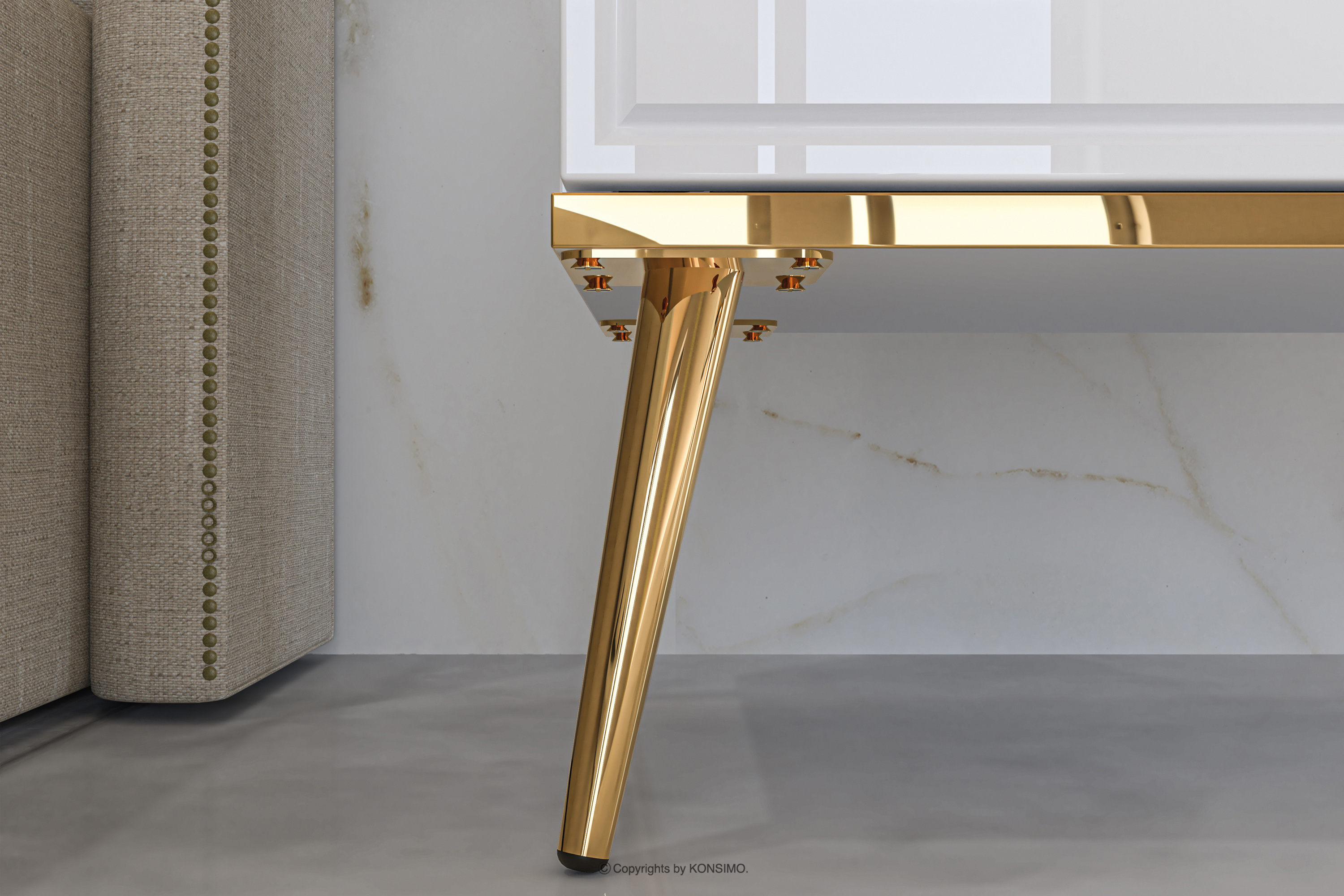 Váš domov. Vytvorený pre tých, ktorí si cenia nielen štýl, ale aj pevnosť, korpus z laminovanej dosky/MDF je istým základom pre každý interiér. Vysoký lesk dodáva neprehliadnuteľný lesk a zlaté kónické nožičky a úchyty sú ako bodka nad "i". To však nie je všetko! Hrana ABS je vysoko odolná voči poškodeniu a vlhkosti, vďaka čomu je veľmi trvanlivá a navyše sa ľahko udržiava v čistote.