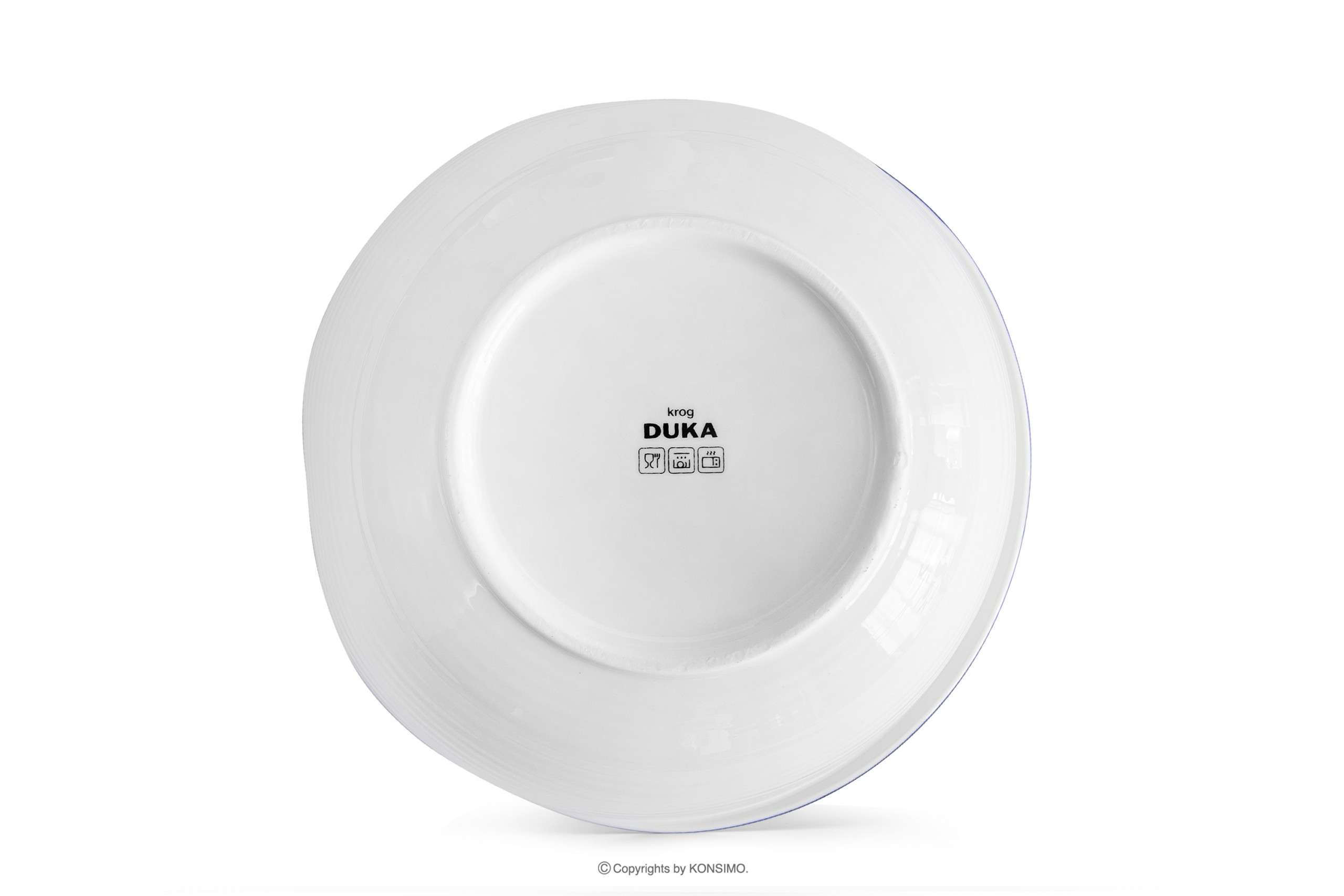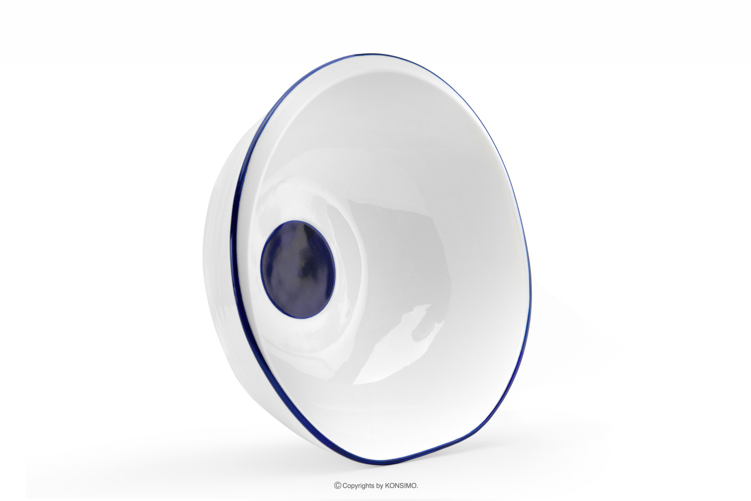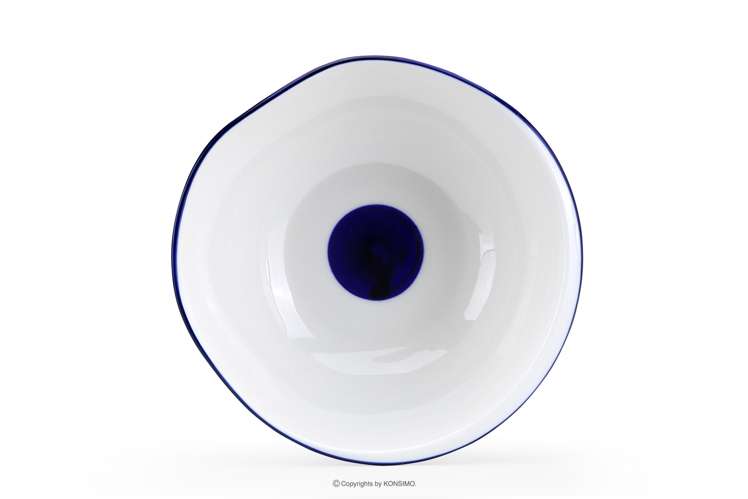 Vďaka odolnosti voči mechanickému poškodeniu a jednoduchému čisteniu je táto miska ideálna pre rodiny s deťmi a na stretnutia s priateľmi. Možno ju ľahko umývať v umývačke riadu a používať v mikrovlnnej rúre. Kontrastná námornícka modrá bodka na bielom pozadí dodáva celému riadu charakter a úroveň. Bez ohľadu na príležitosť bude KROG vyzerať krásne a poskytne jedinečnú atmosféru pri každom jedle. Misa sa vyznačuje nepravidelným tvarom, ktorý bol dosiahnutý ručnou výrobou. Asymetrické okraje vytvárajú jedinečný dizajn. Táto misa bude určite doplnkom, ktorý dodá šarm a štýl každej večeri alebo párty.