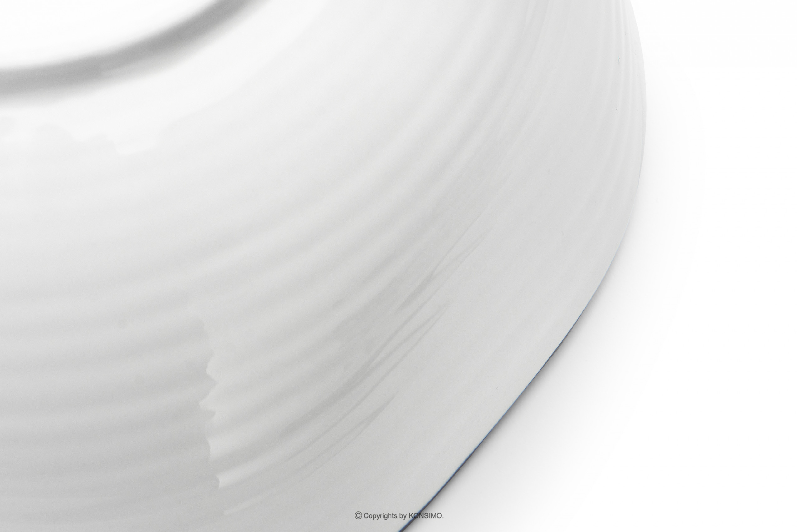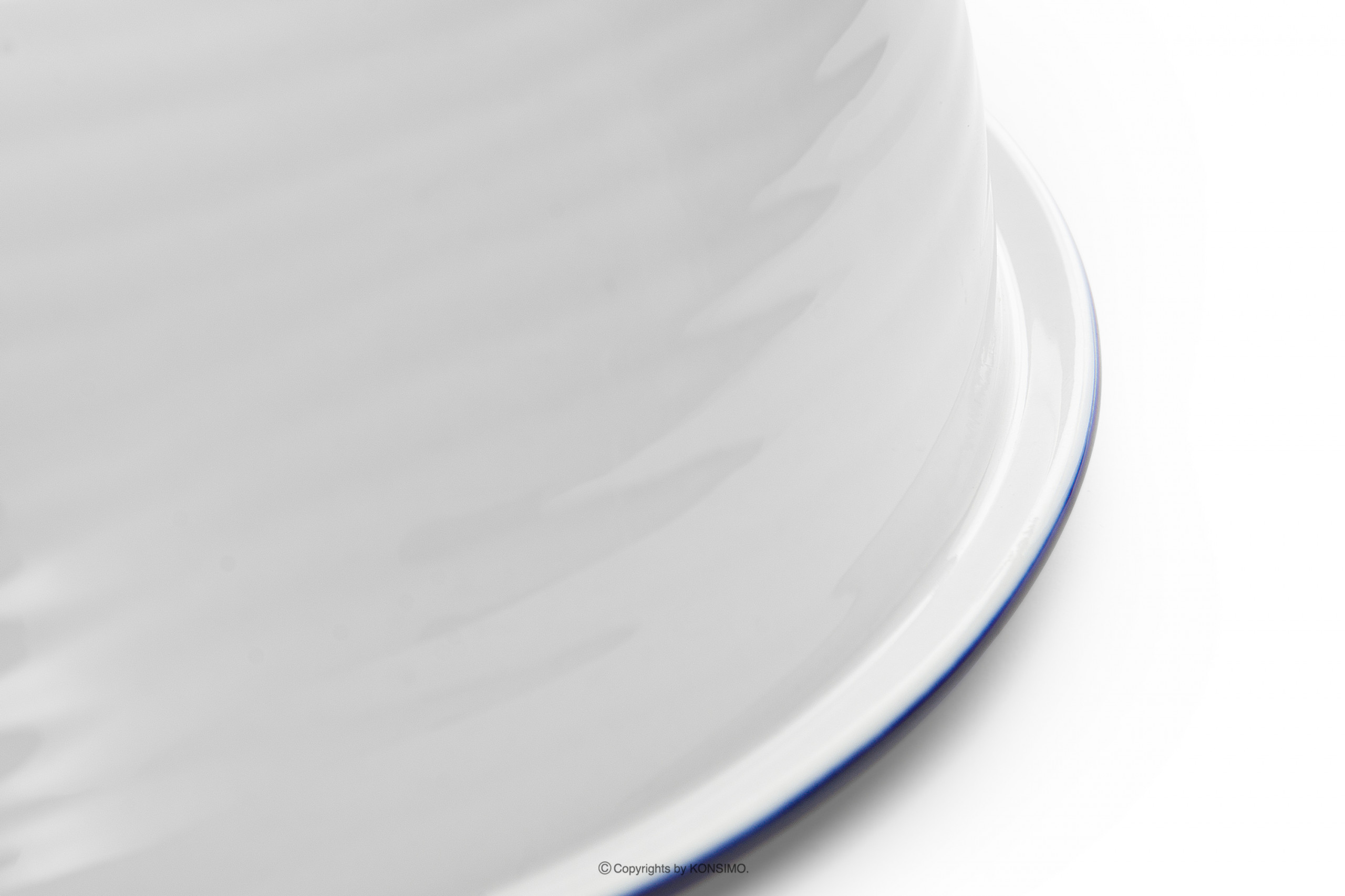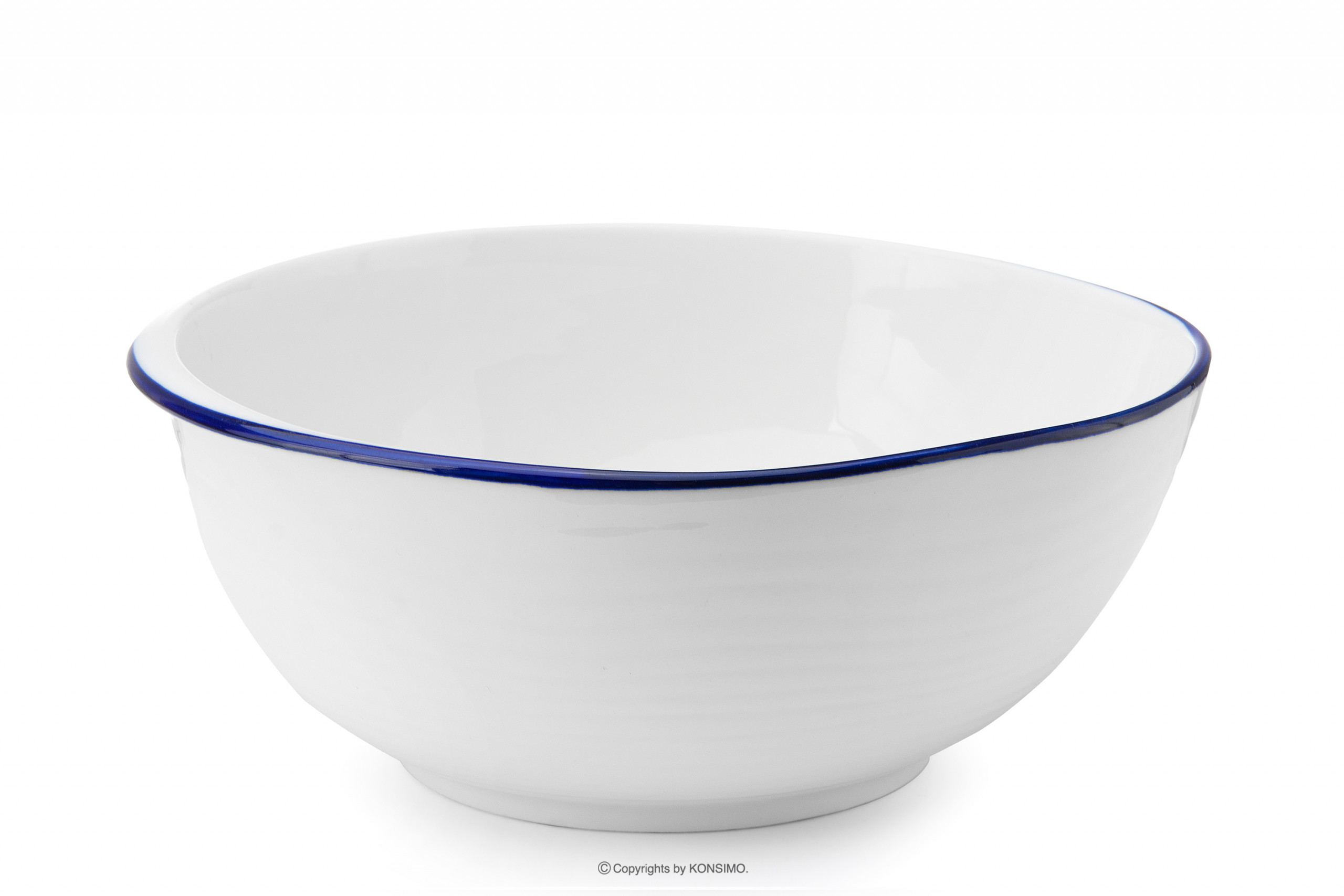 Vďaka odolnosti voči mechanickému poškodeniu a jednoduchému čisteniu je táto miska ideálna pre rodiny s deťmi a na stretnutia s priateľmi. Možno ju ľahko umývať v umývačke riadu a používať v mikrovlnnej rúre. Kontrastná námornícka modrá bodka na bielom pozadí dodáva celému riadu charakter a úroveň. Bez ohľadu na príležitosť bude KROG vyzerať krásne a poskytne jedinečnú atmosféru pri každom jedle. Misa sa vyznačuje nepravidelným tvarom, ktorý bol dosiahnutý ručnou výrobou. Asymetrické okraje vytvárajú jedinečný dizajn. Táto misa bude určite doplnkom, ktorý dodá šarm a štýl každej večeri alebo párty.