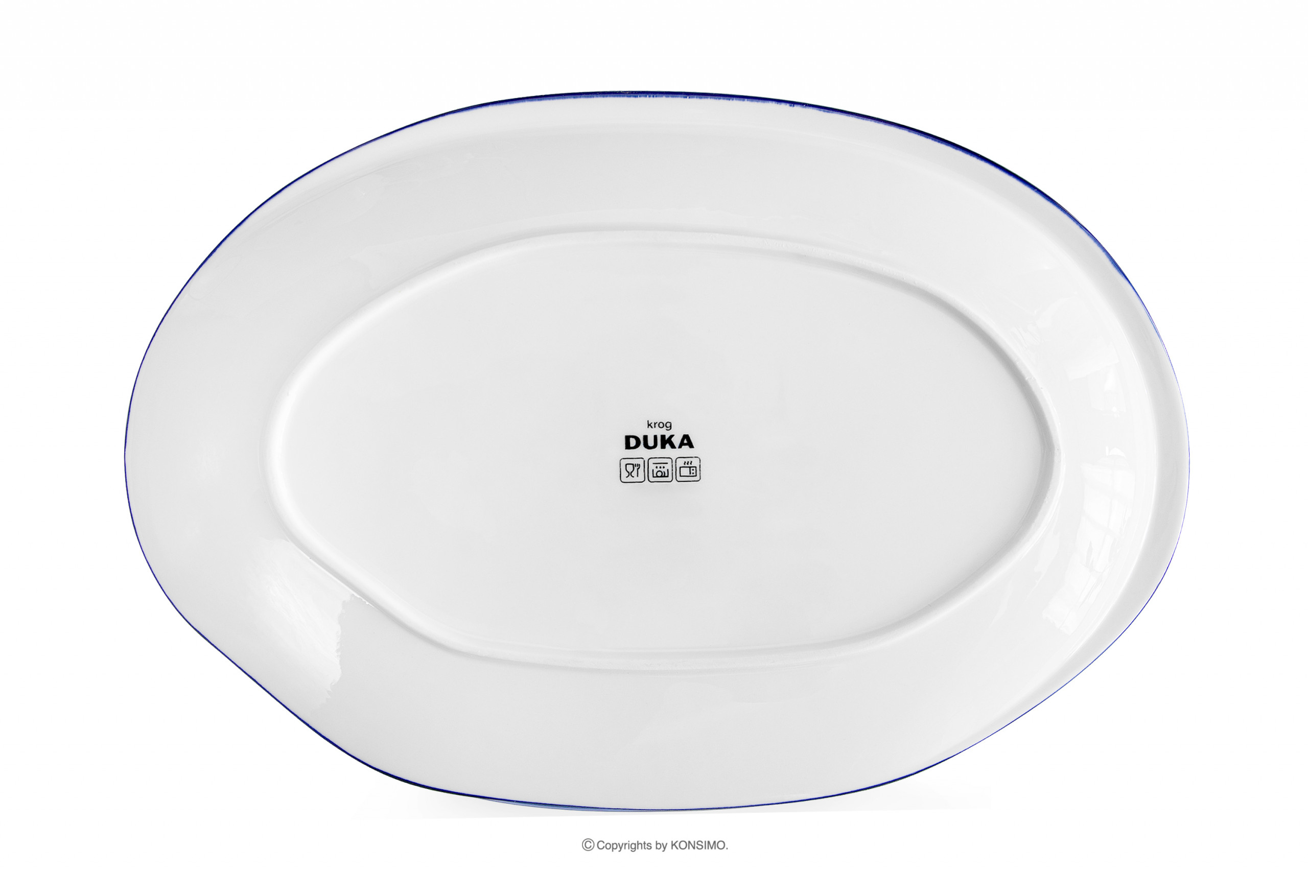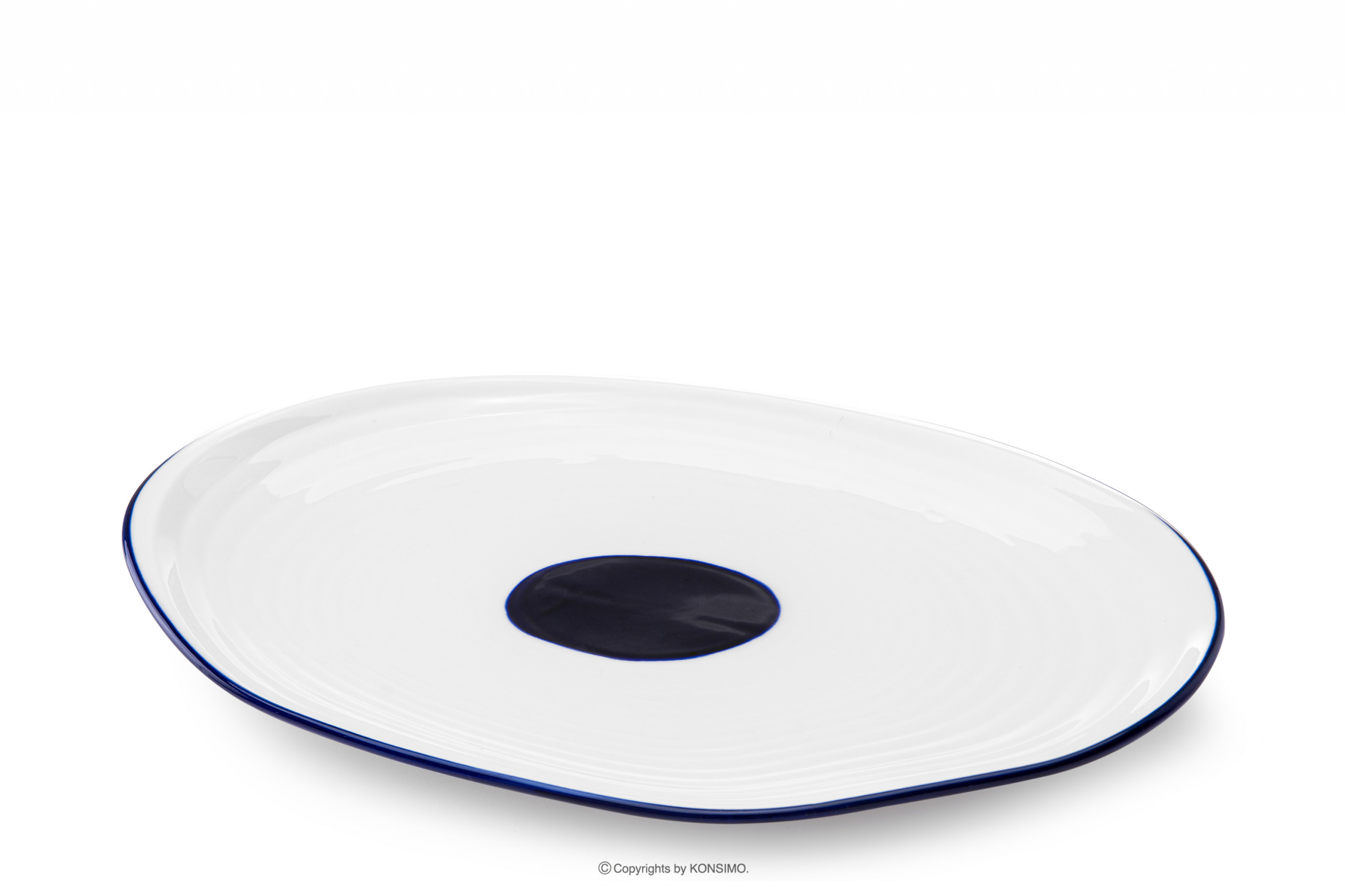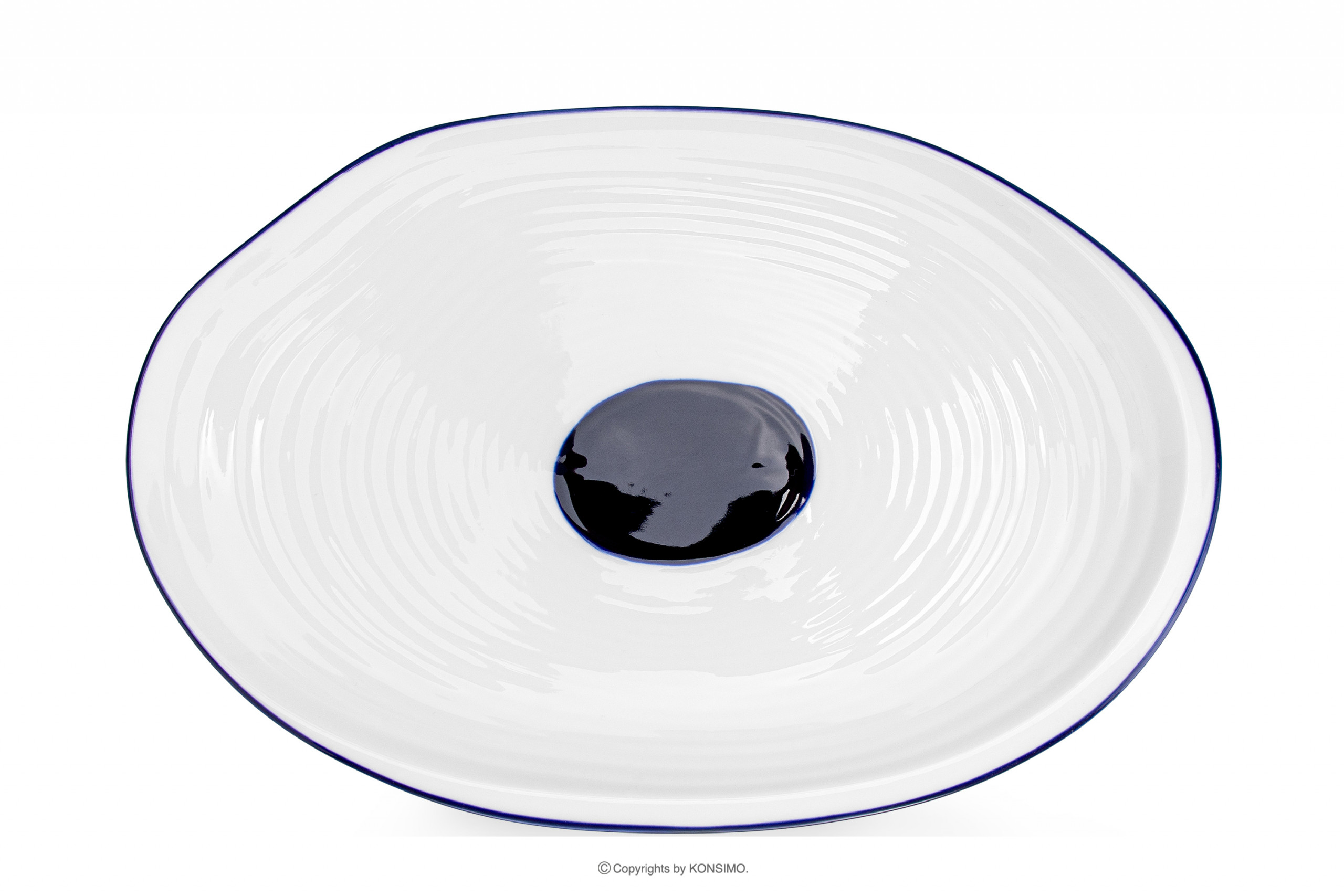 Vďaka odolnosti voči mechanickému poškodeniu a jednoduchému čisteniu je tento tanier ideálny pre rodiny s deťmi a na stretnutia s priateľmi. Možno ho ľahko umývať v umývačke riadu a používať v mikrovlnnej rúre. Kontrastná tmavomodrá bodka na bielom pozadí dodáva celému riadu charakter a úroveň. Bez ohľadu na príležitosť bude KROG vyzerať krásne a poskytne jedinečnú atmosféru pri každom jedle. Tanier sa vyznačuje nepravidelným tvarom, ktorý bol dosiahnutý ručnou výrobou. Asymetrické okraje vytvárajú jedinečný dizajn. Tento tanier bude určite doplnkom, ktorý dodá šarm a štýl každej večeri alebo párty.
