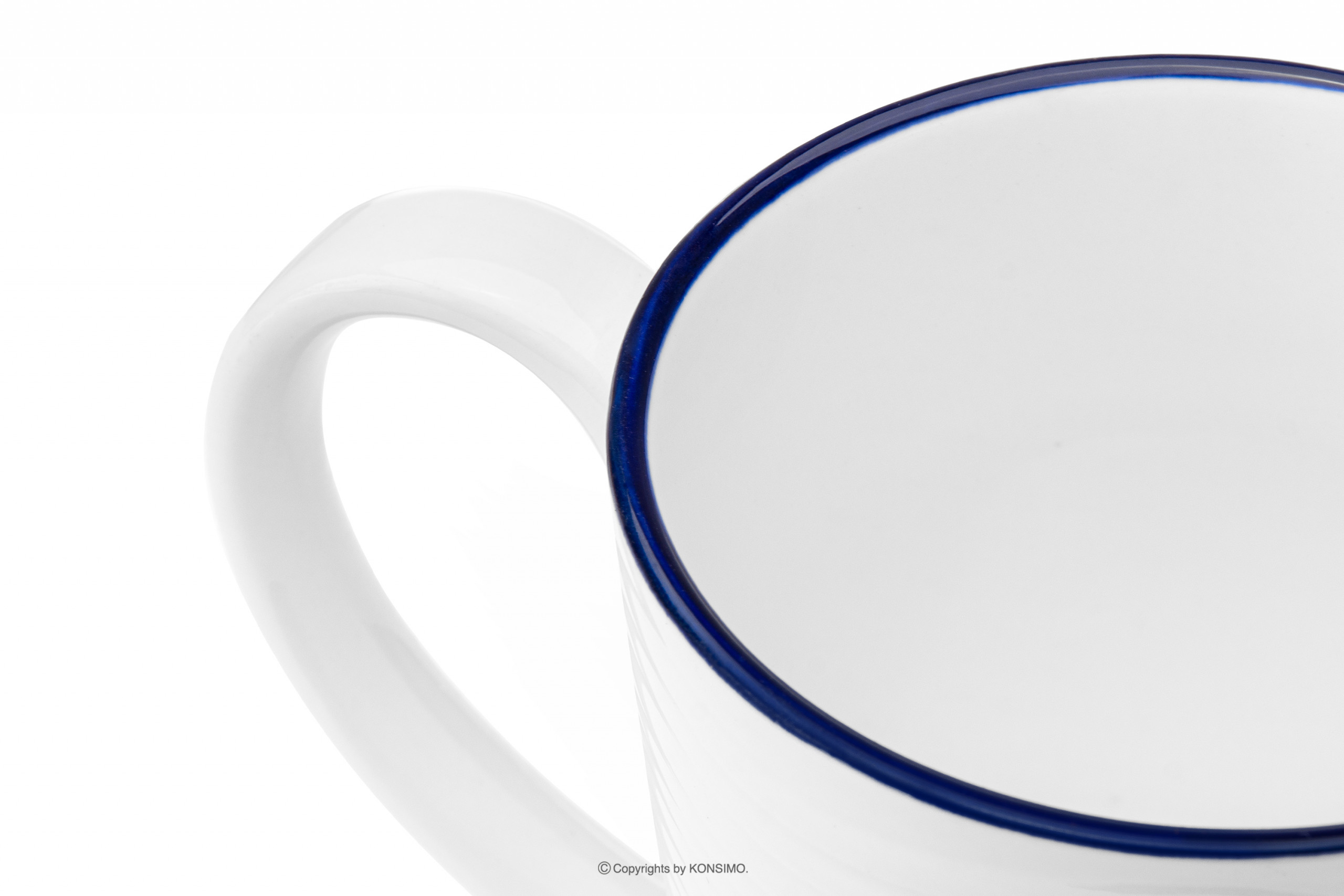 Výrobky z kolekcie KROG v bielej farbe s tmavomodrým dekorom na okraji sú dokonalou voľbou pre milovníkov moderného dizajnu a minimalistických interiérov. Tento hrnček z kolekcie KROG je nielen elegantným, ale aj praktickým doplnkom vášho stola. Je vyrobený z porcelánu a poskytuje odolnosť a štýlový vzhľad, ktorý sa bude hodiť ku každému interiéru stola.